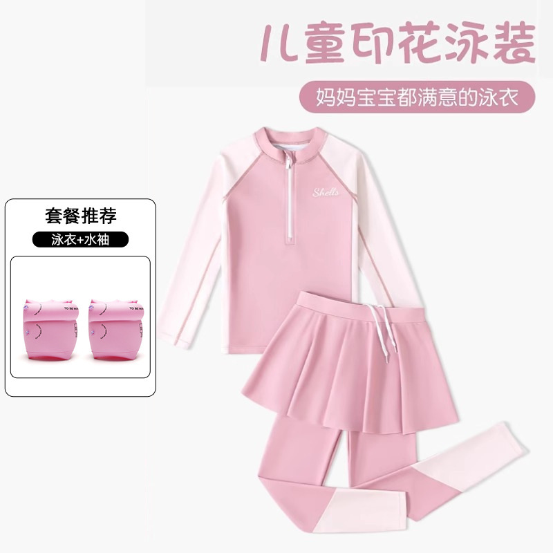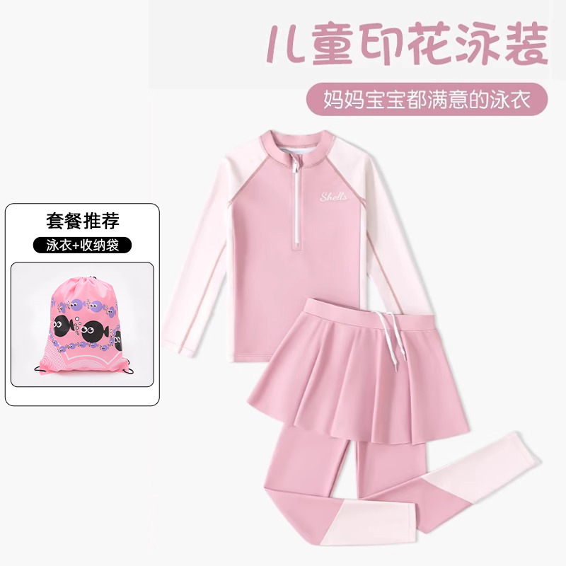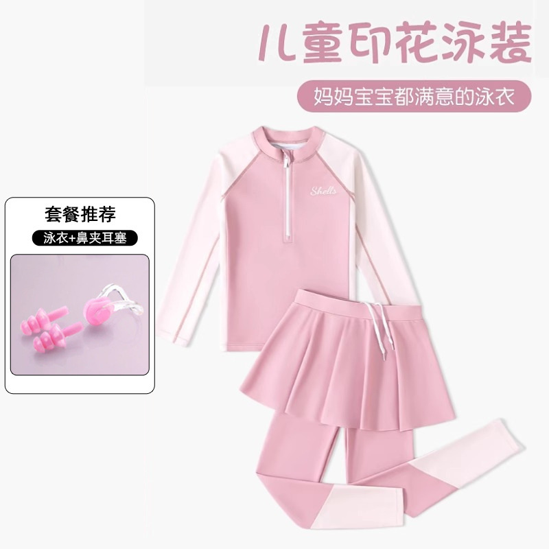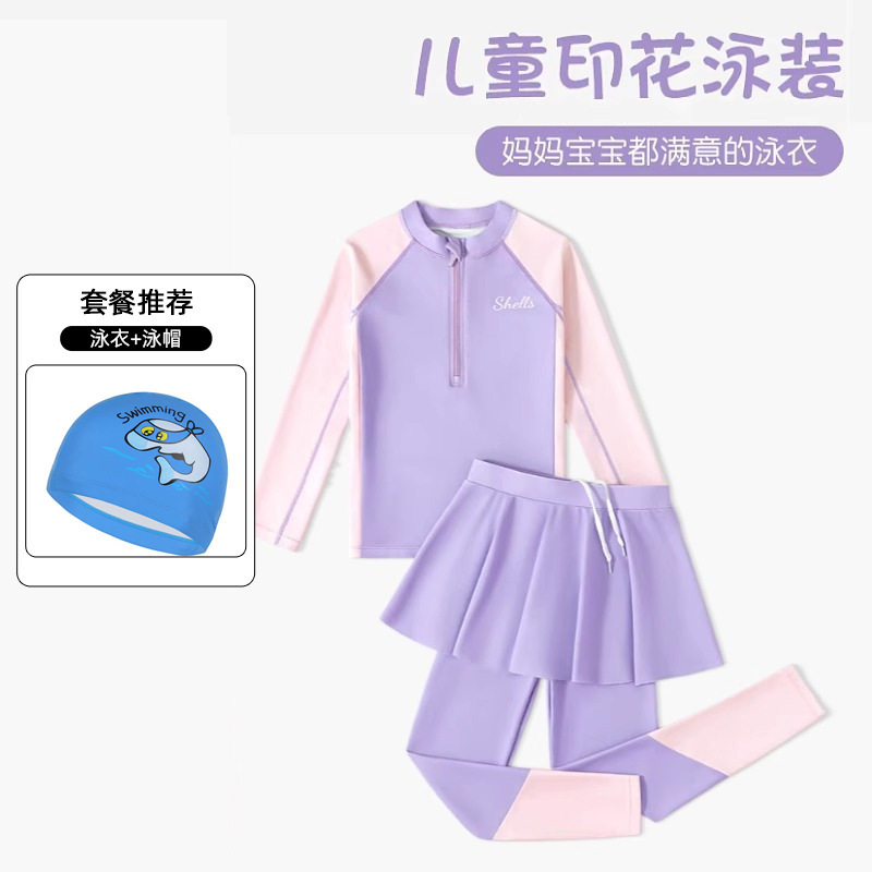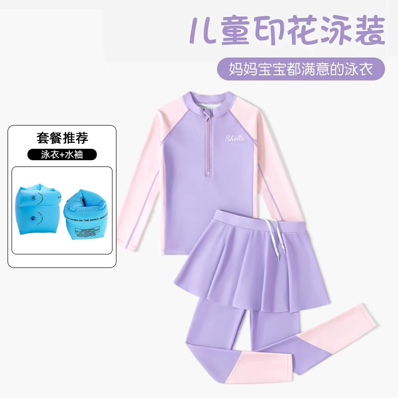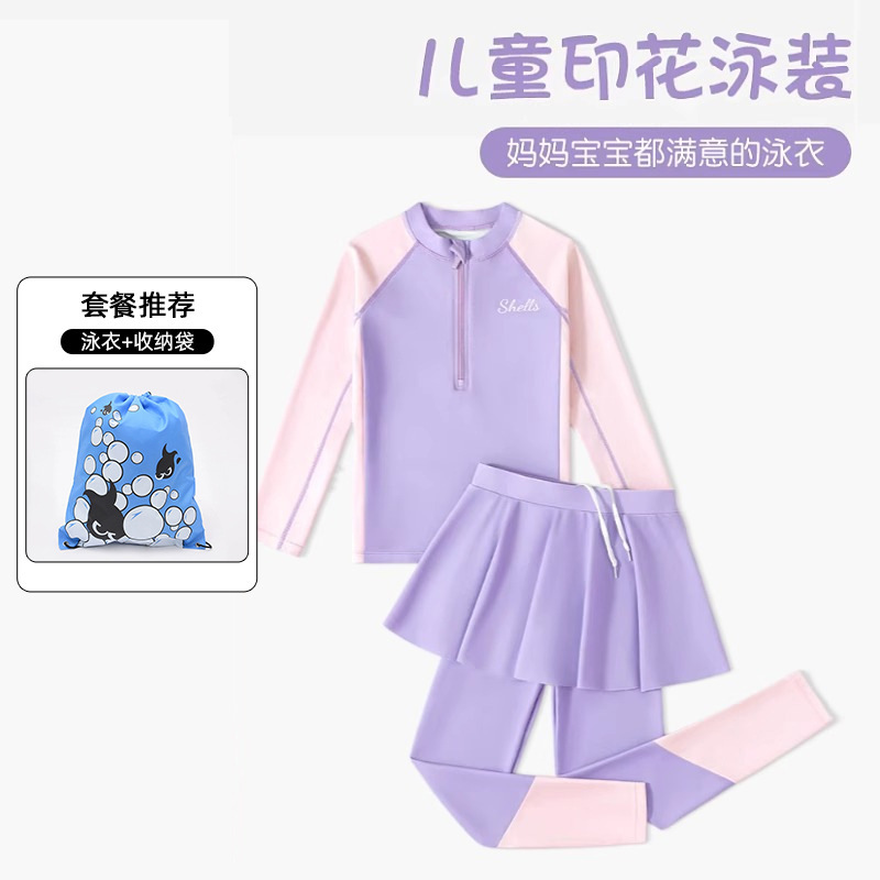 어린이 수영복 소녀 빅 키즈 2025 새로운 긴 소매 바지 분할 선 스크린 소녀 수영 세트