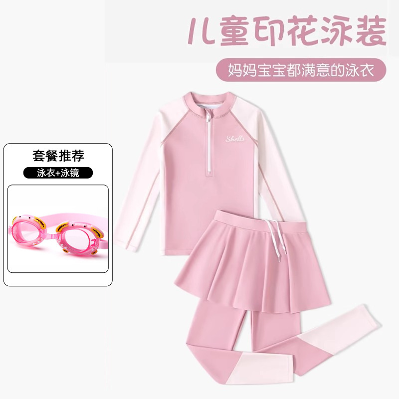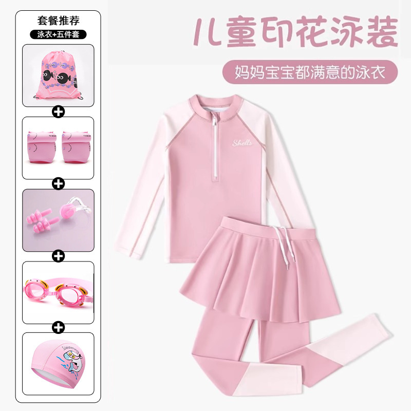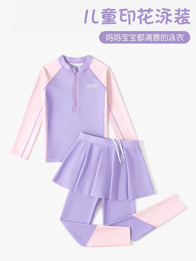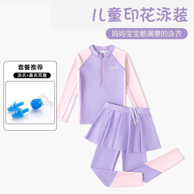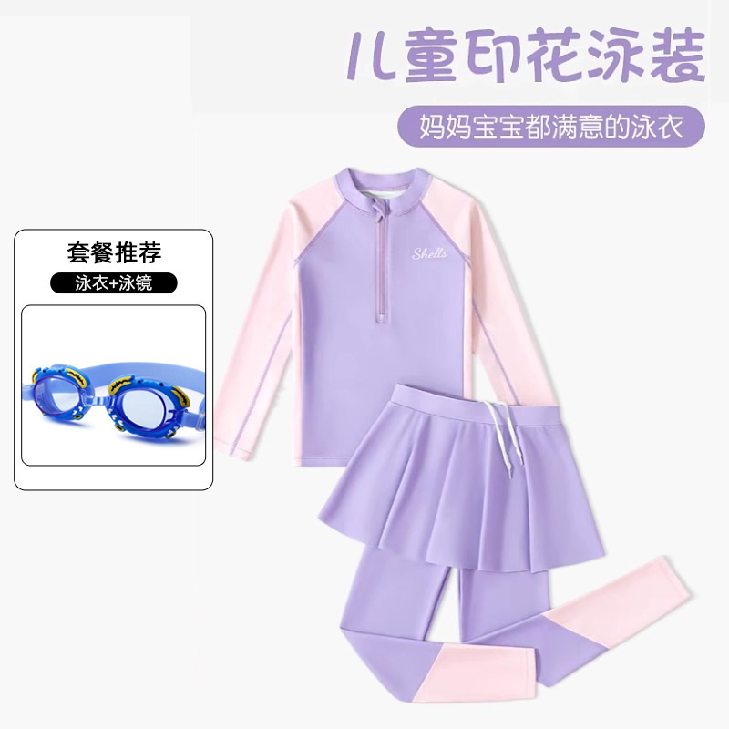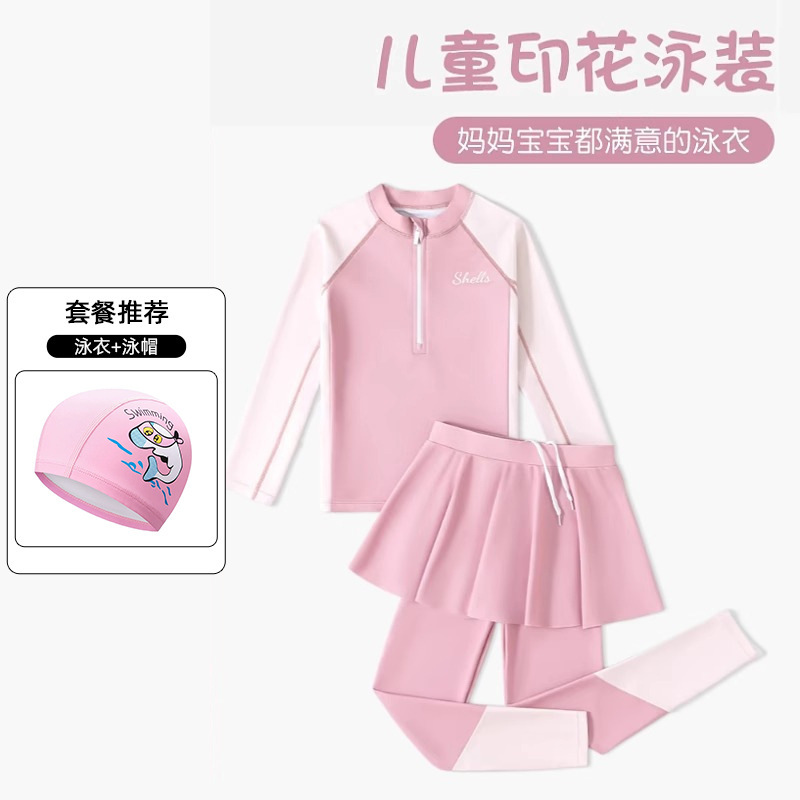 어린이 수영복 소녀 빅 키즈 2025 새로운 긴 소매 바지 분할 선 스크린 소녀 수영 세트