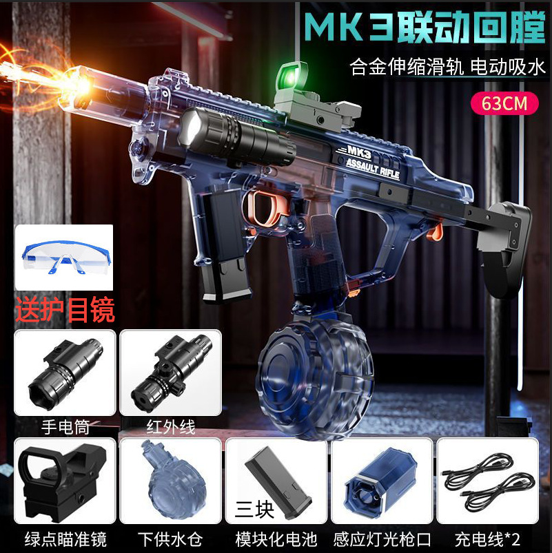 화재 댄스 MK3 물 싸움 화재 빛 투명한 전기 물 총 어린이 장난감 손 자체 통합 조명 연계 보어스토어 가기