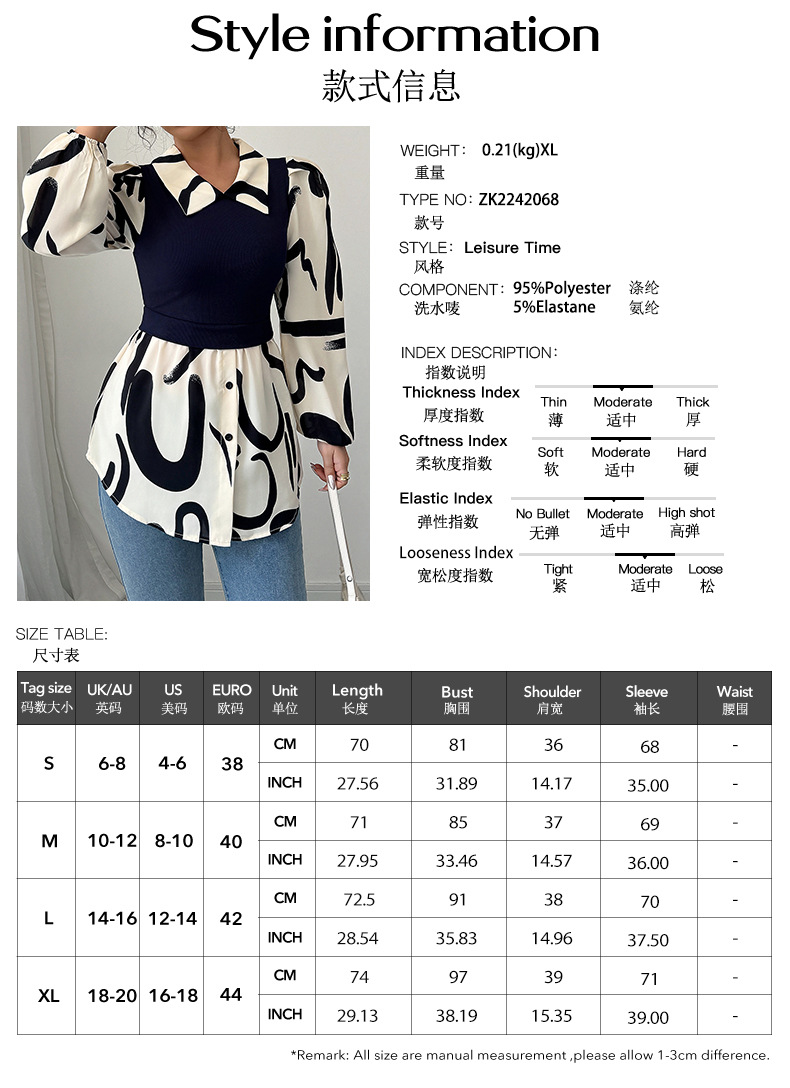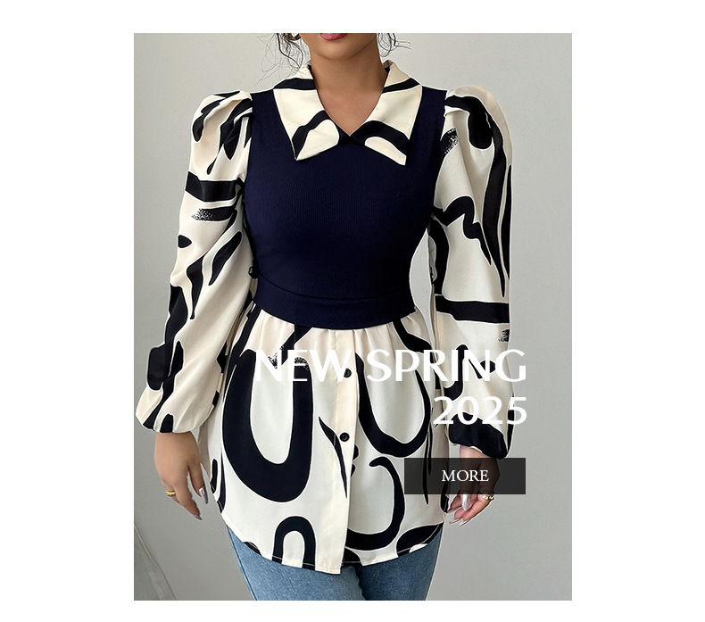 카이 쿠오 국경 유럽과 미국의 휴가 캐주얼 스타일 스티칭 프린트 긴 소매 셔츠 여성의 2025 여름 아마존 탑