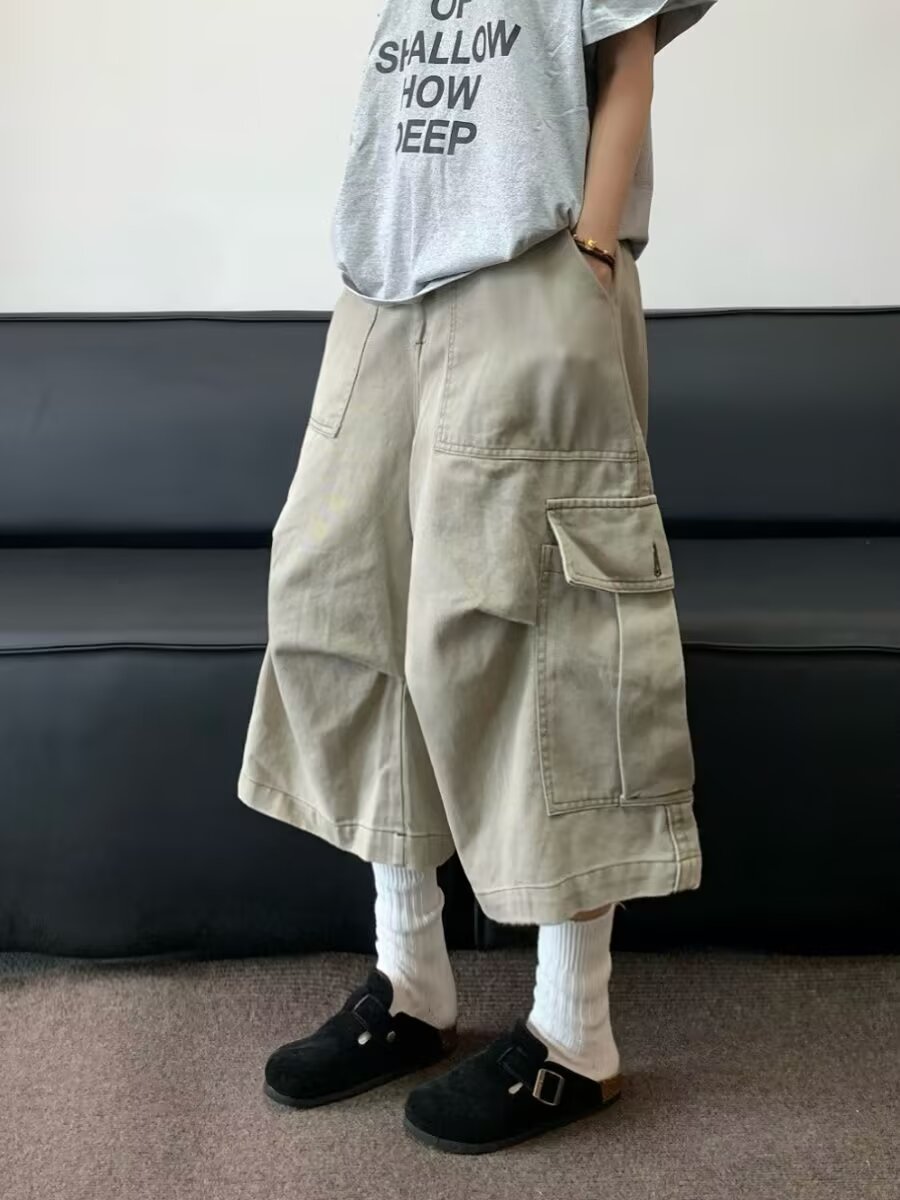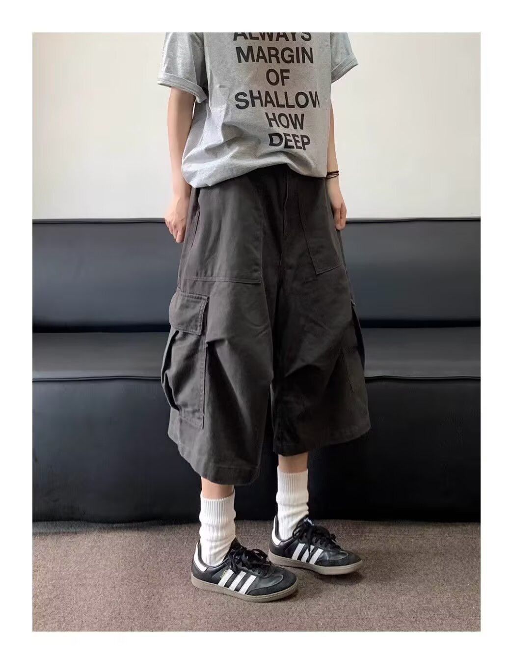 아메리칸 레트로 하이 스트리트 루즈한 새로운 트렌디한 작업복 크롭 팬츠 스트레이트 스포츠 캐주얼 심플 다용도 남성용 반바지스토어 가기
