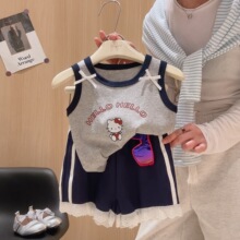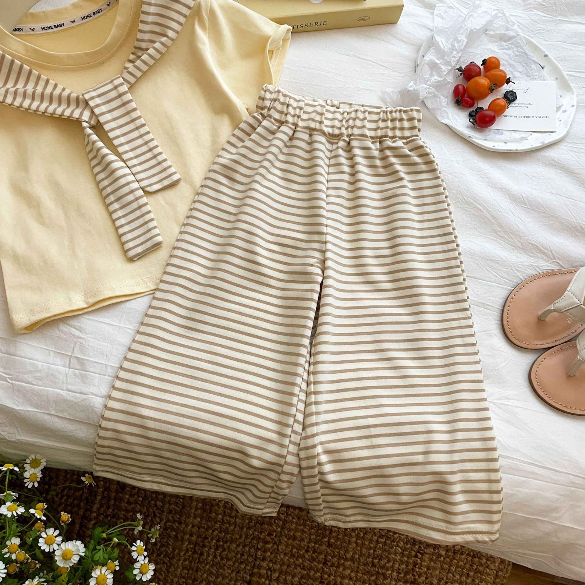 소녀 세트 여름 얇은 반팔 줄무늬 바지 순면 티셔츠 클래스 A 부모와 자녀를위한 옷 Huzhou Zhili 아동복스토어 가기