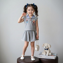 소녀 세트 여름 얇은 반팔 줄무늬 바지 순면 티셔츠 클래스 A 부모와 자녀를위한 옷 Huzhou Zhili 아동복