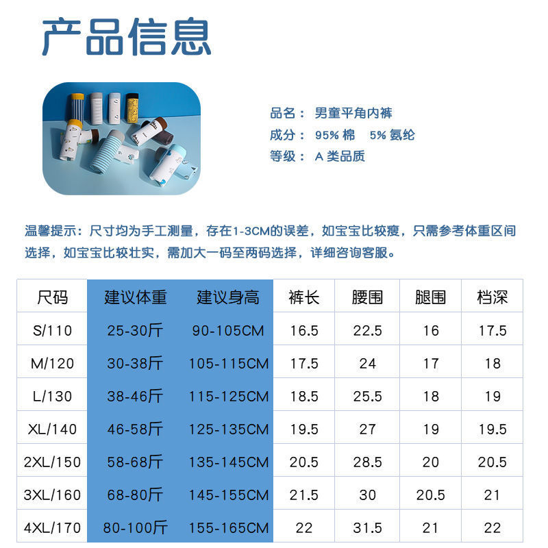 면 아동 속옷, 남아용 사각팬티, 중대형 아동용, 유아용, 초등학생용, 남아용 사각팬티