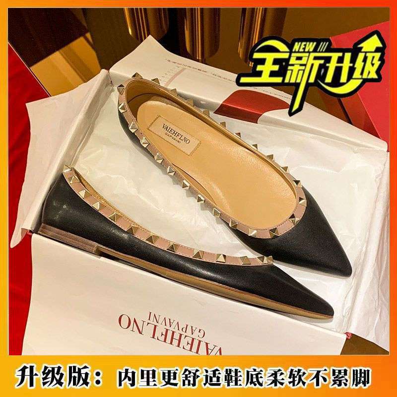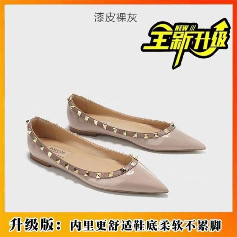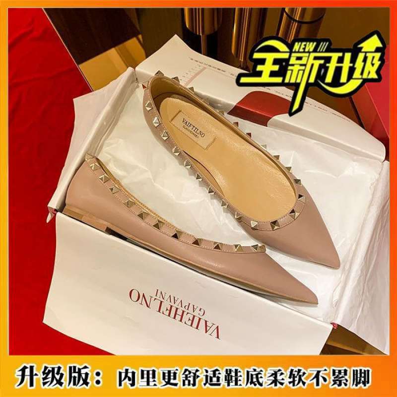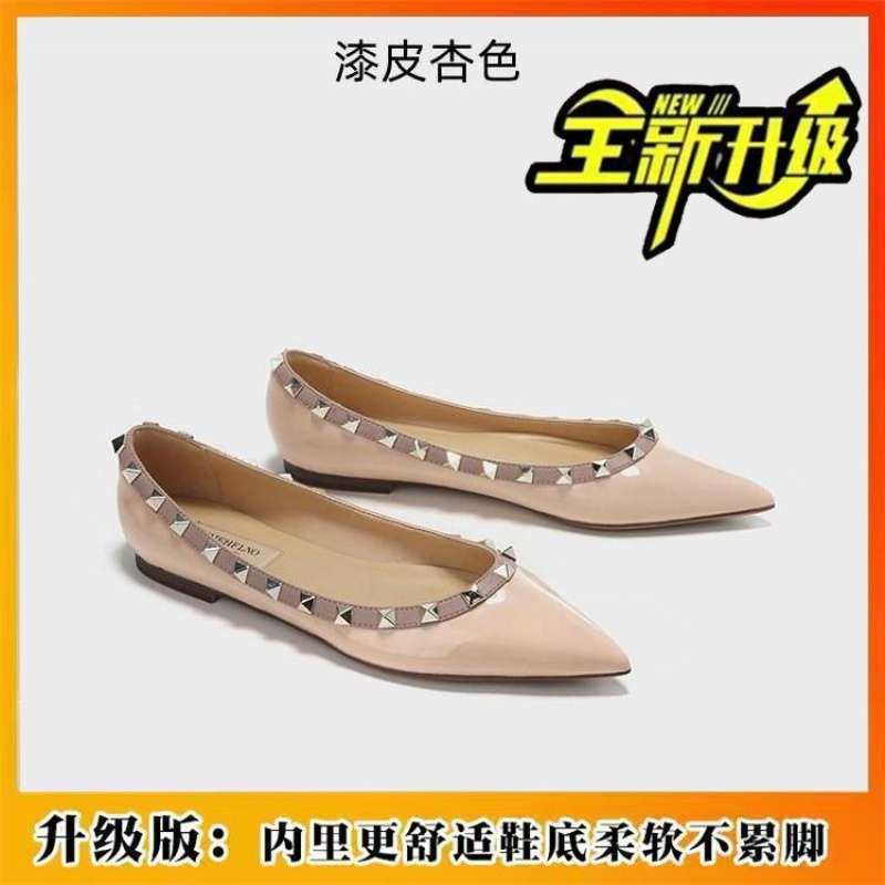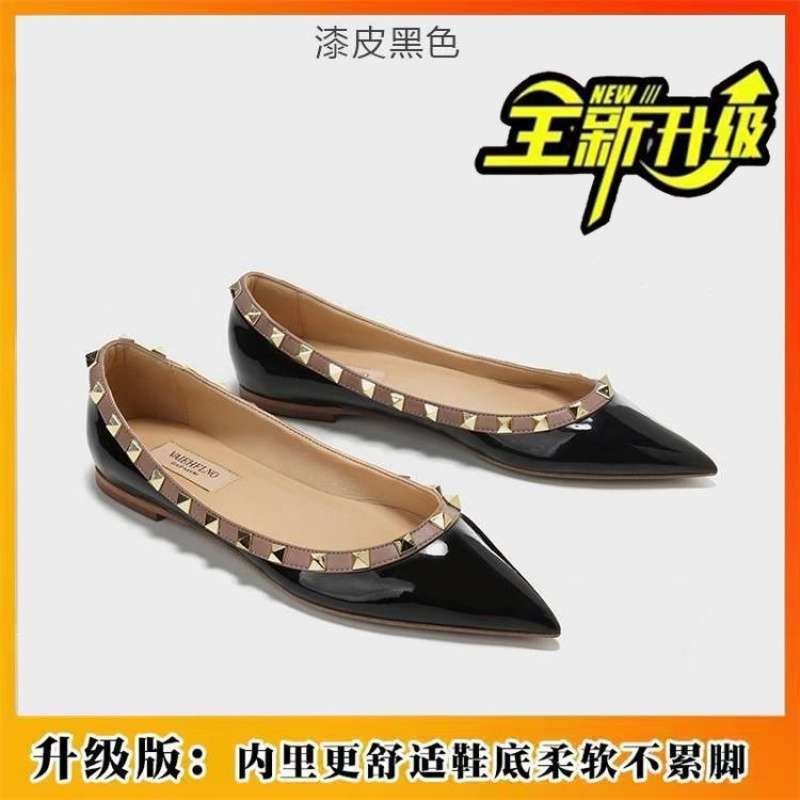 网红爆款软底不累脚船鞋2024新款日常百搭耐磨尖头铆钉尖头平底鞋