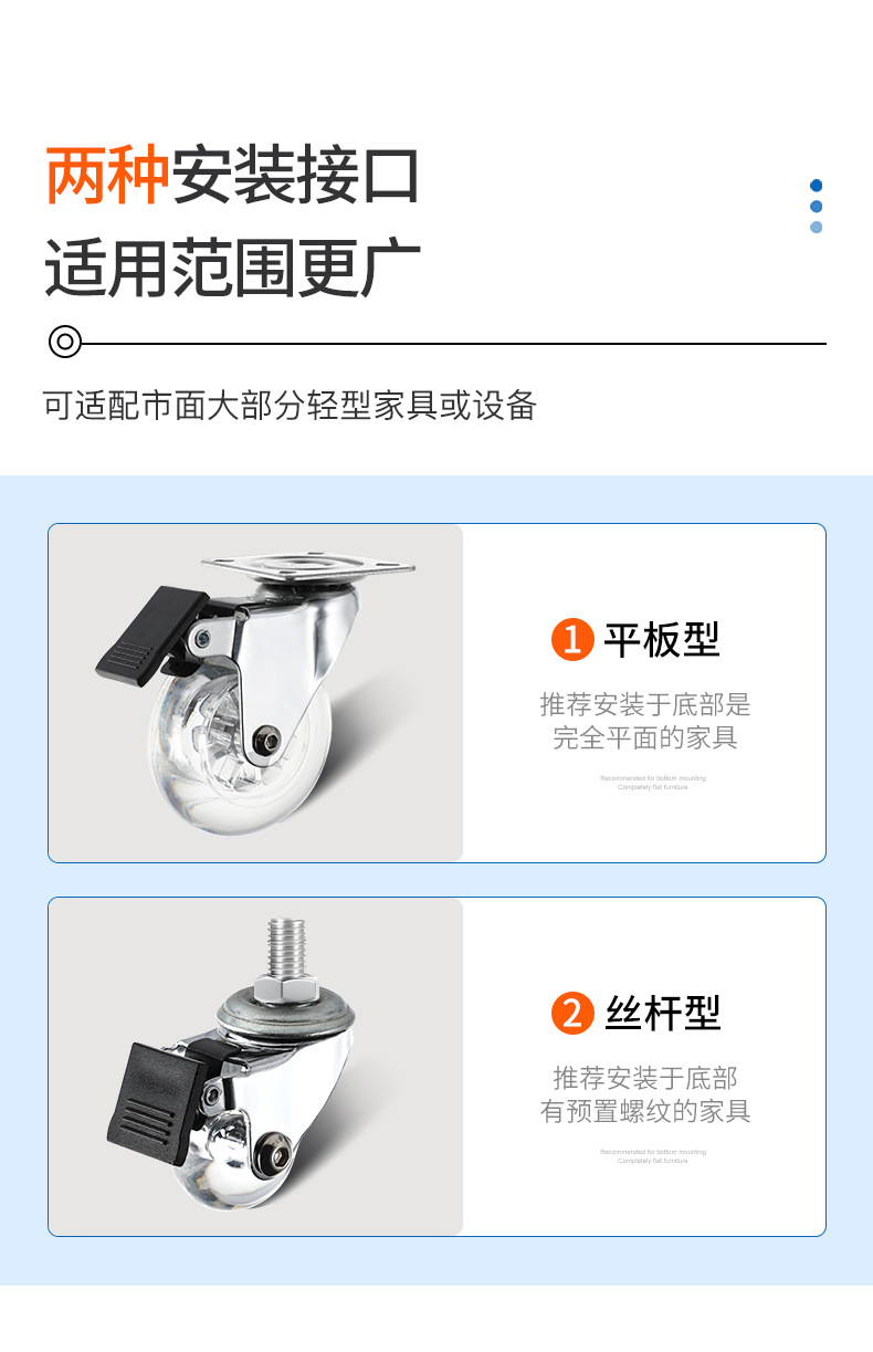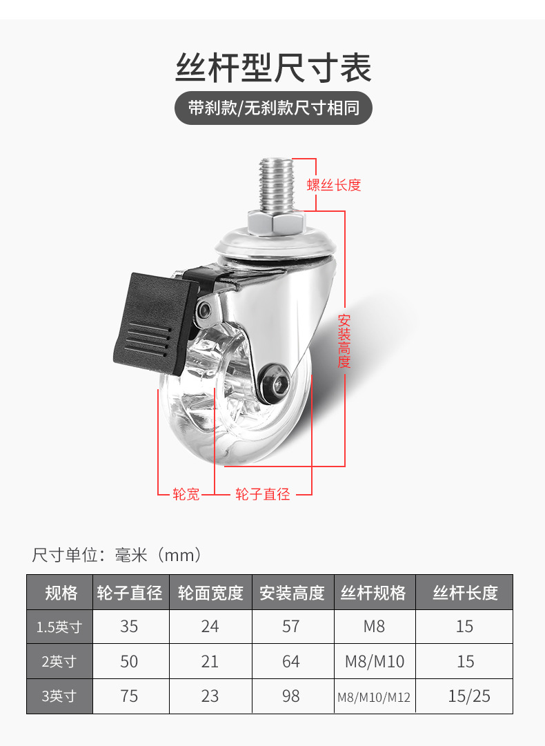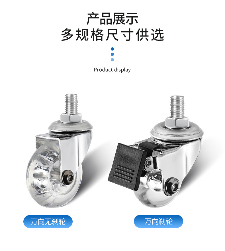 무거운 가구 이동식 테이블 캐비닛 폴리우레탄 범용 휠 자동 트롤리 휠 고무 나사 로드 회전 의자 캐스터스토어 가기
