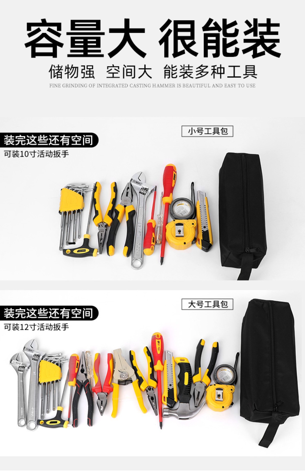• 검정색 도구 가방 [대형] 두꺼운 1680D 패브릭