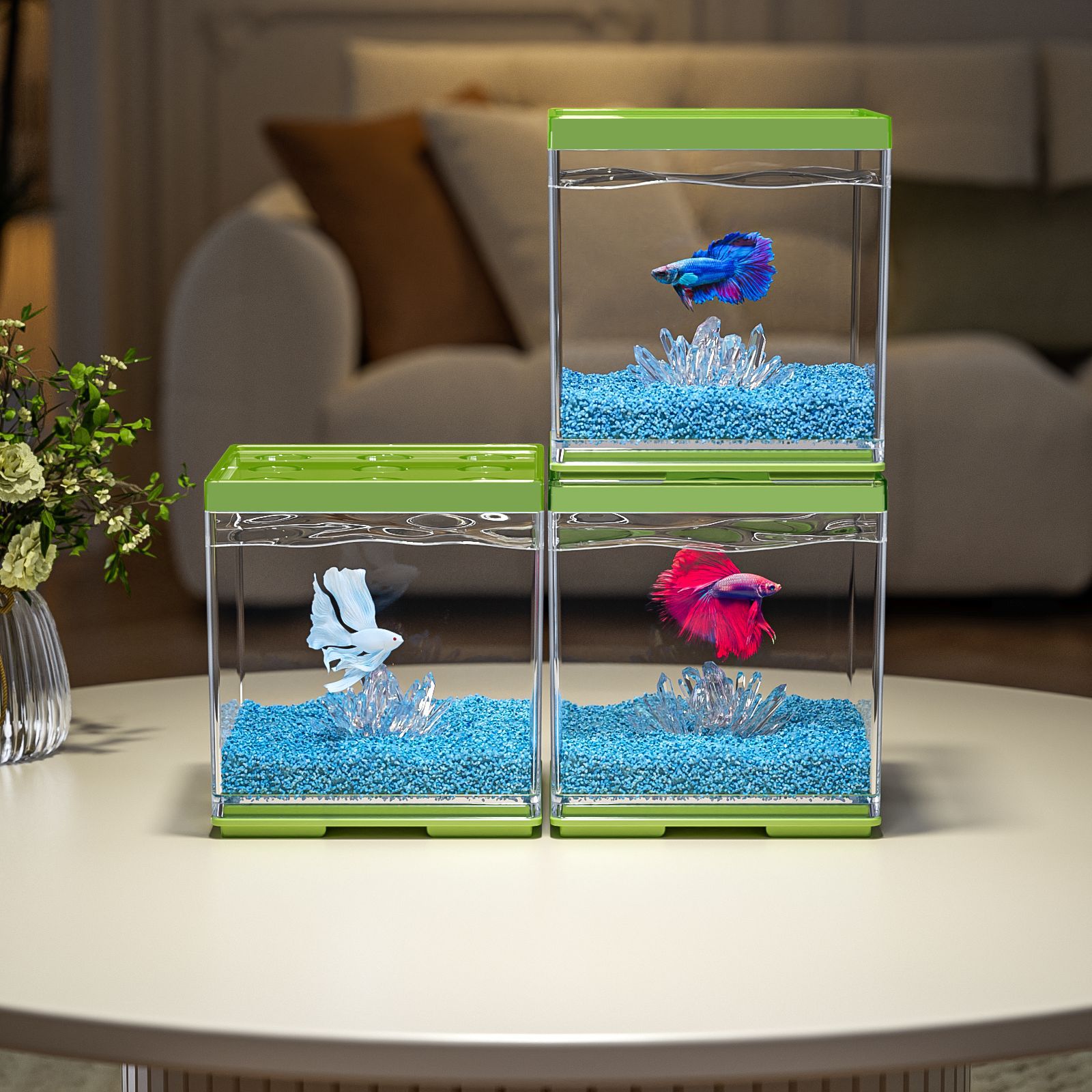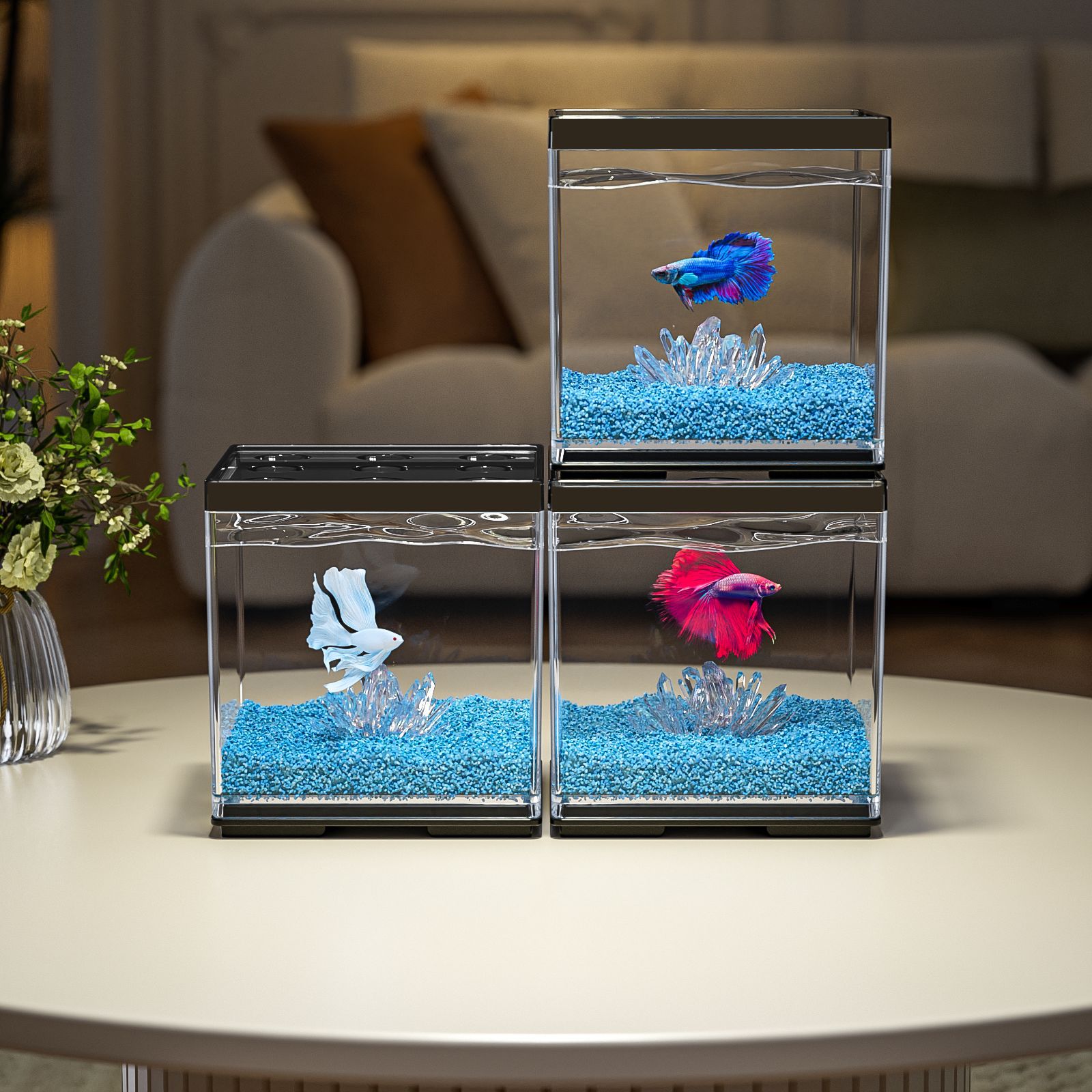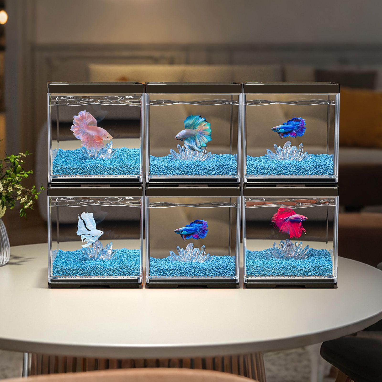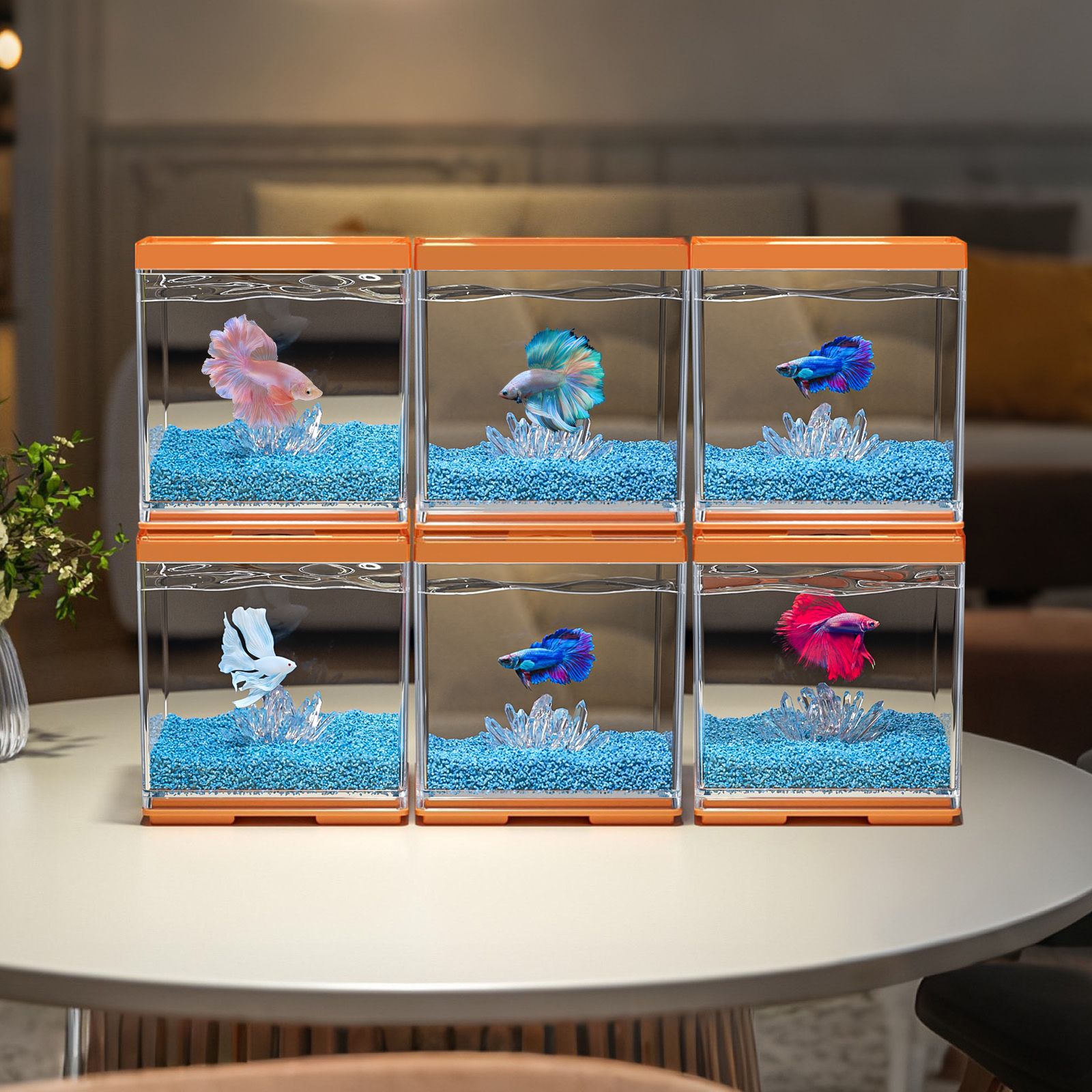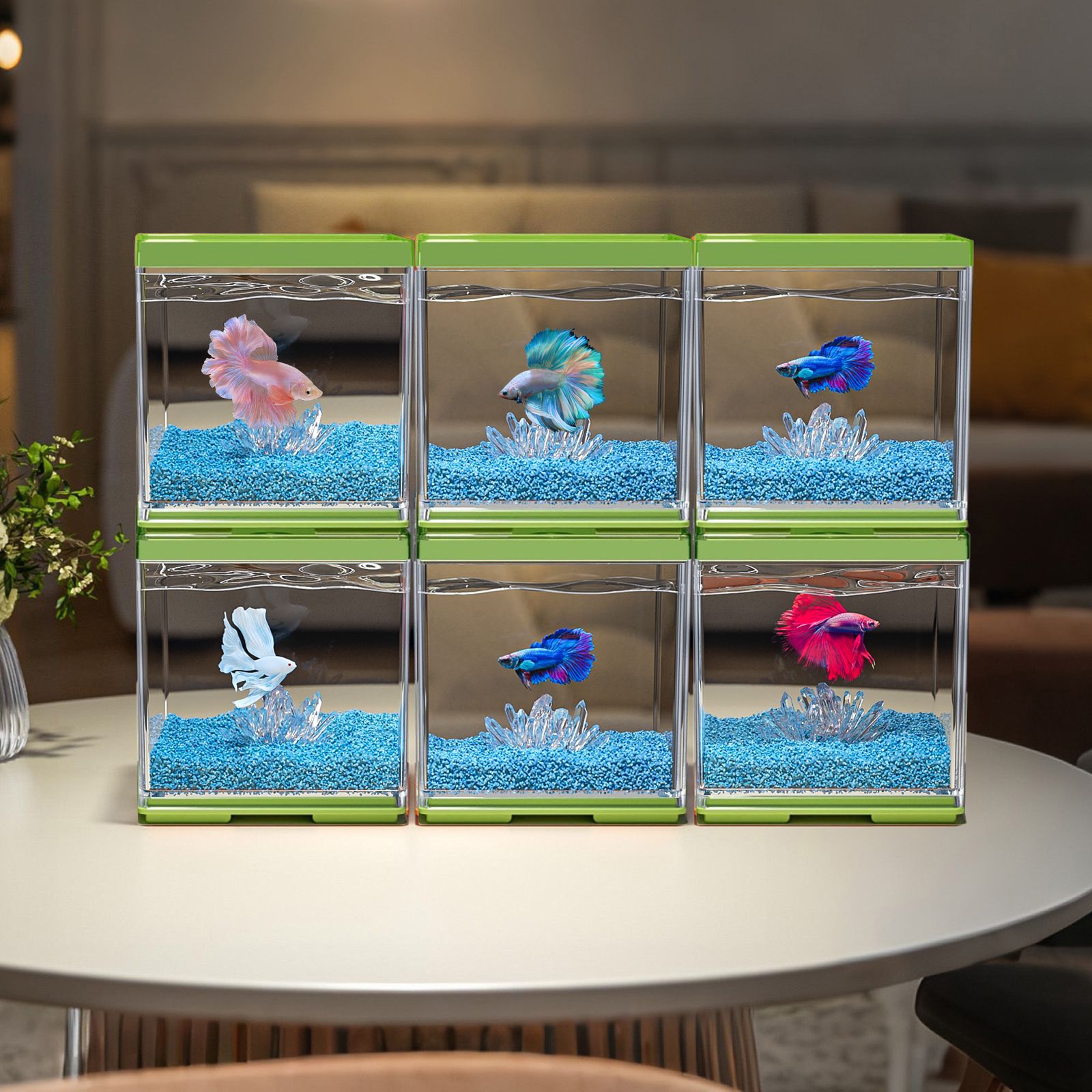 작은 데스크탑 betta 특수 수조 2025 새로운 조경 장식품 멀티 그리드 빌딩 블록 관상어 사무실 크리에이티브