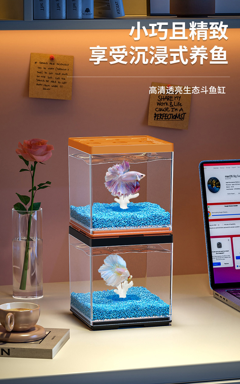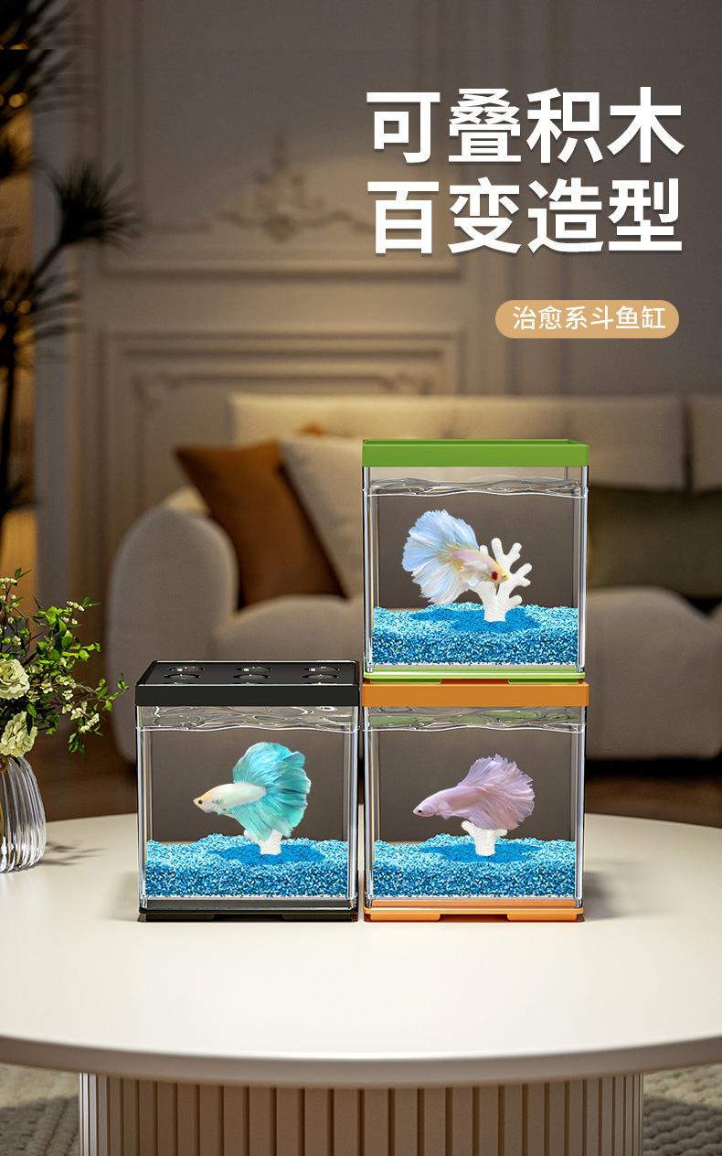 작은 데스크탑 betta 특수 수조 2025 새로운 조경 장식품 멀티 그리드 빌딩 블록 관상어 사무실 크리에이티브스토어 가기