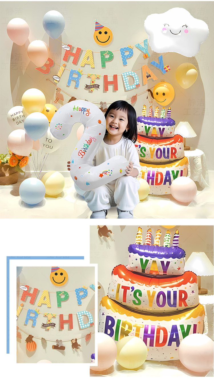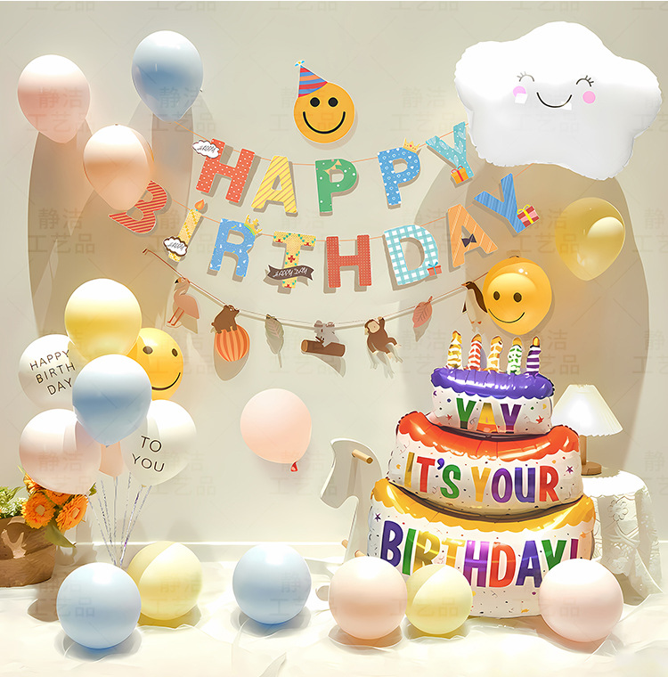 국경 간 인 스타일 어린이 생일 장면 장식 소년 소녀 풍선 가족 간단한 파티 의식 느낌스토어 가기