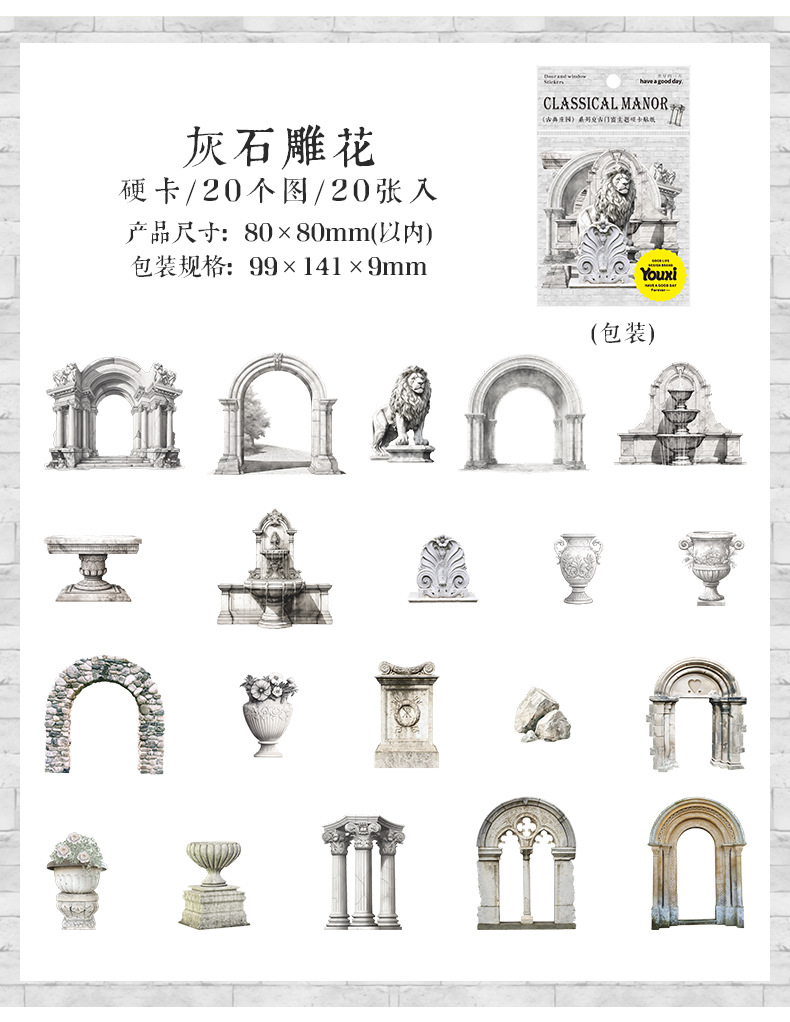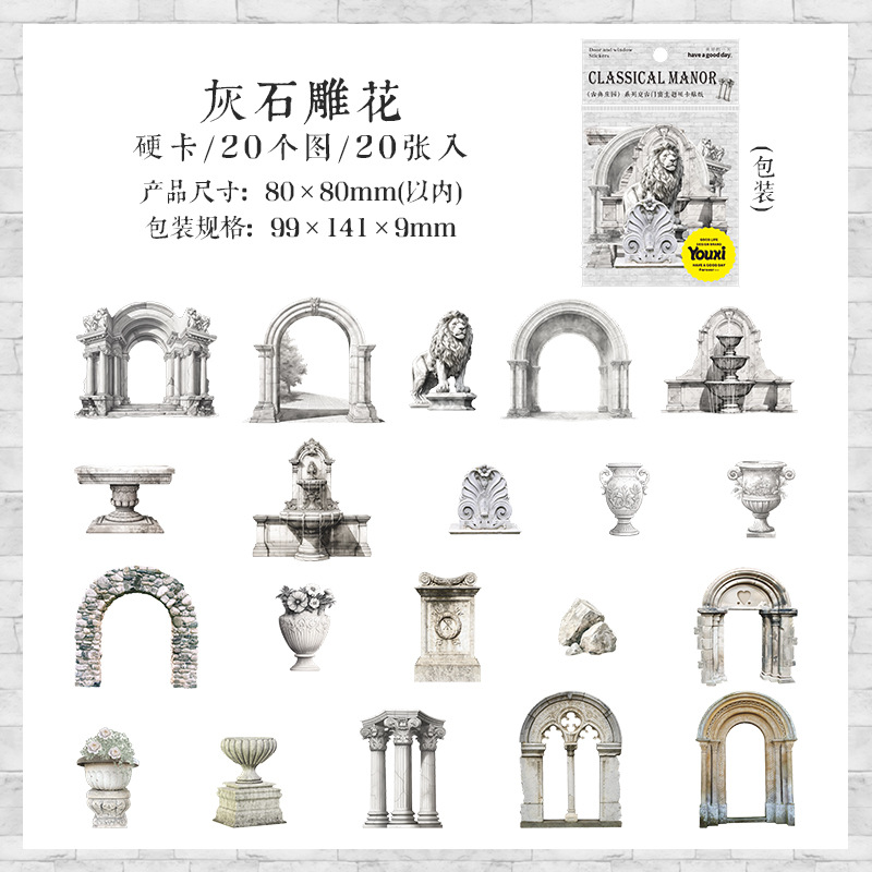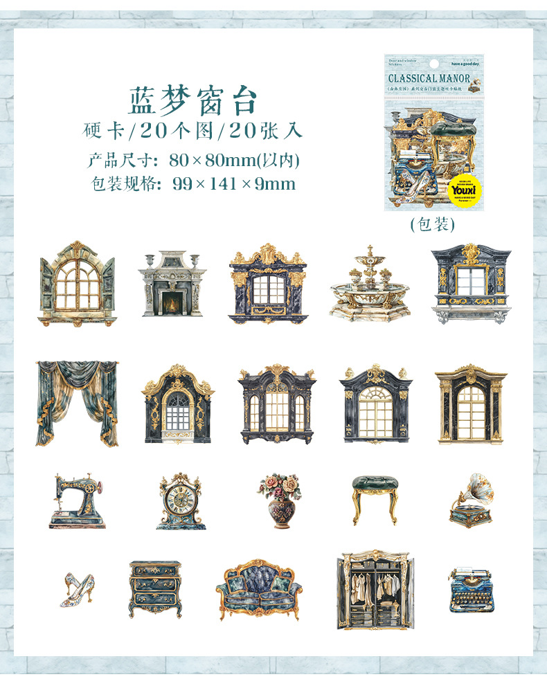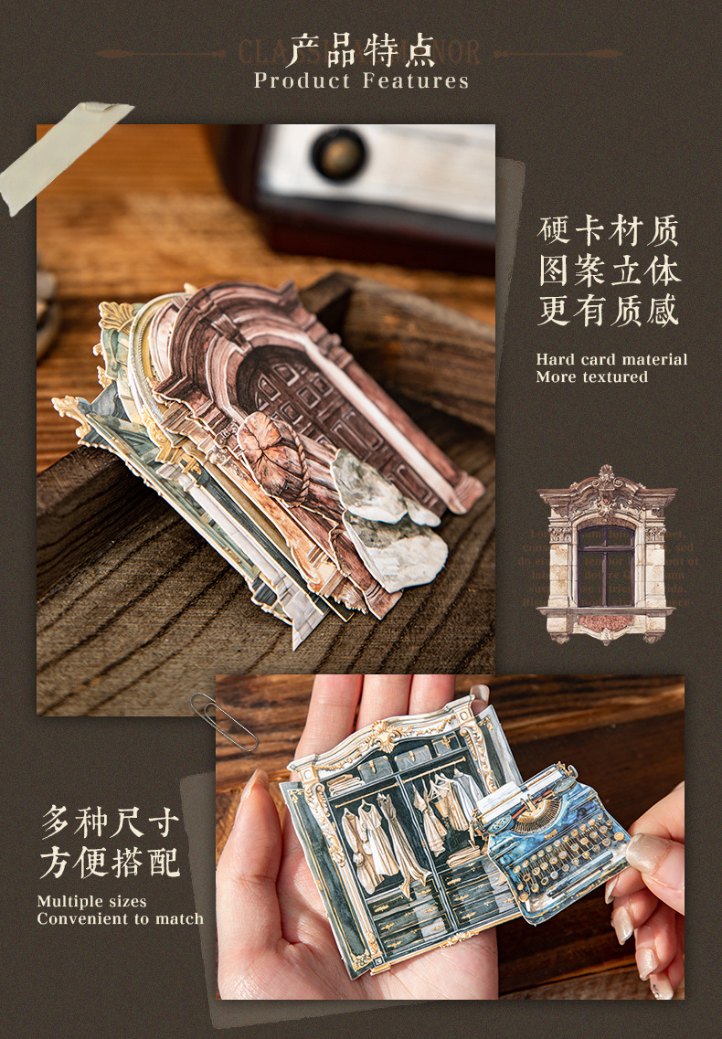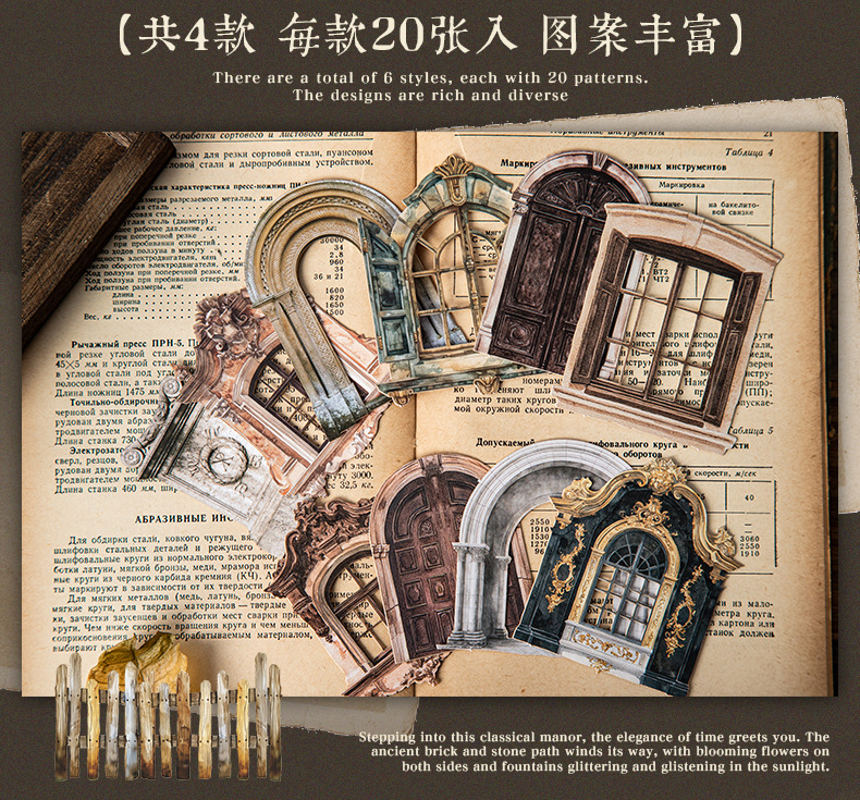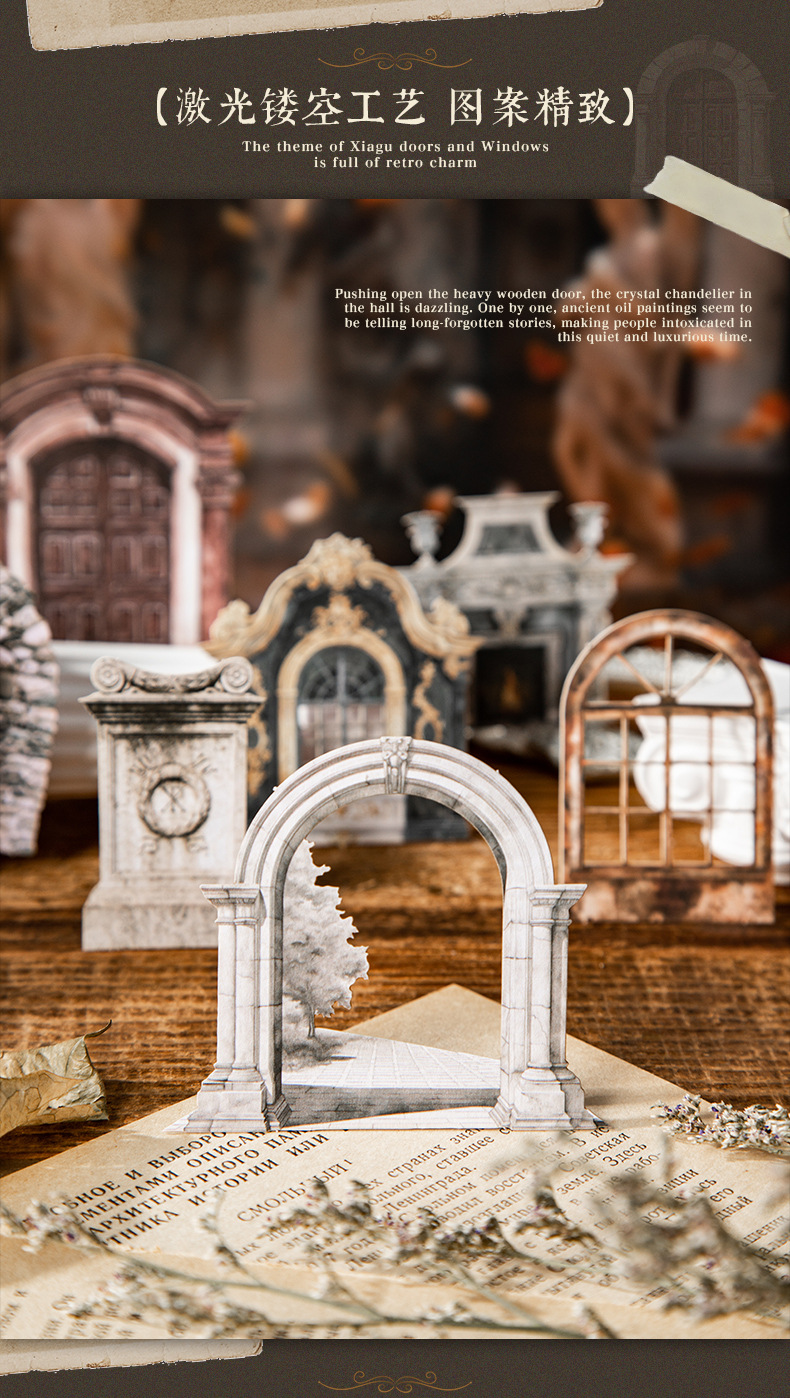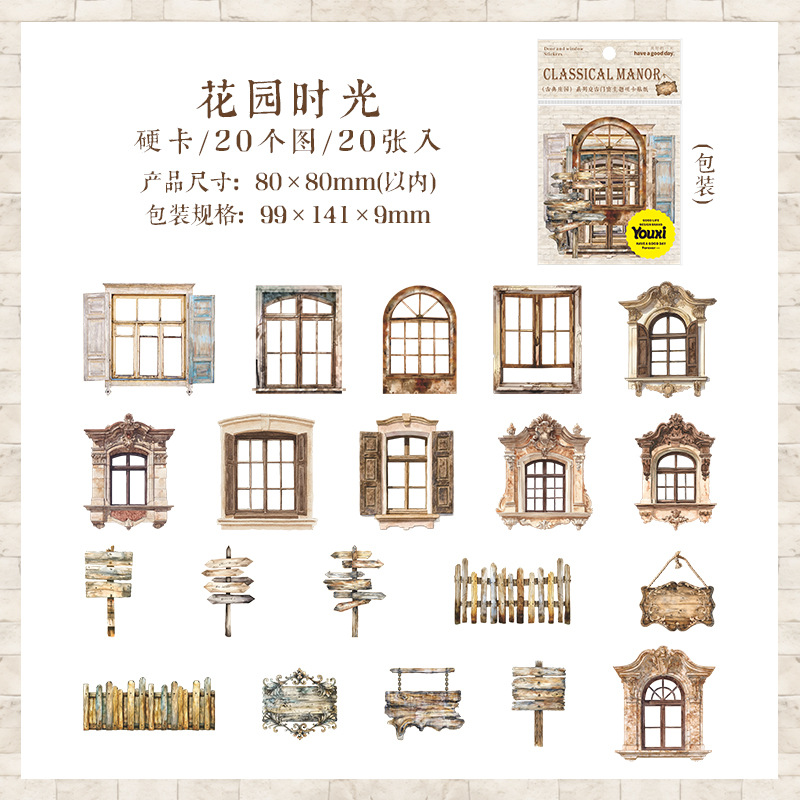 아름다운 날 복고풍 중공 하드 카드 스티커 가방 클래식 매너 시리즈 20 문과 창문 테마 소재스토어 가기