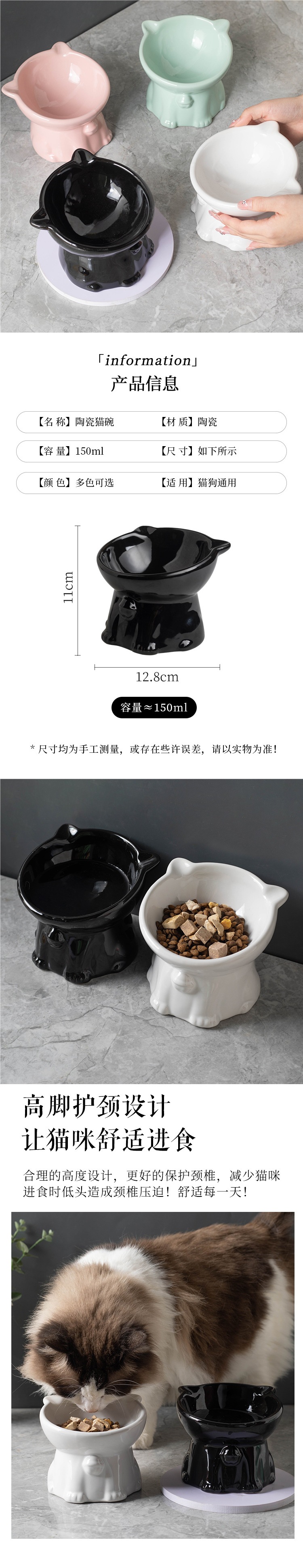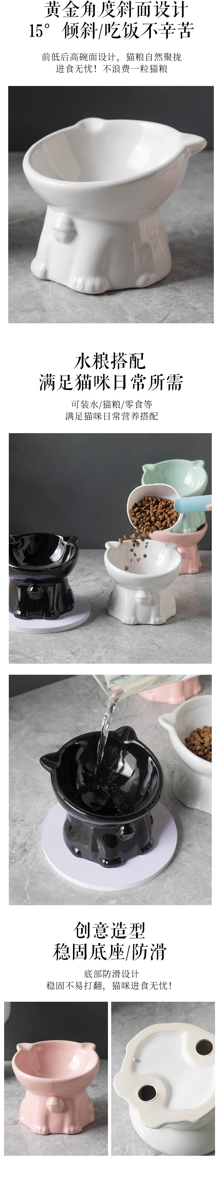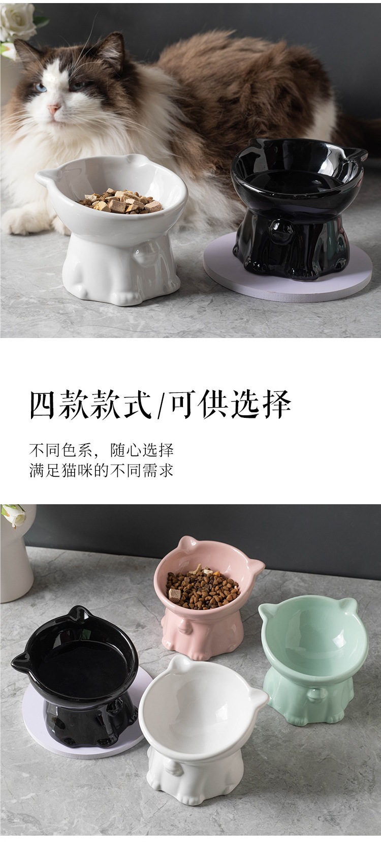 《세라믹 귀여운 고양이 그릇 검은색 마시는 물 높은 고양이 그릇 고양이 사료 그릇 개 그릇 뒤집히는 방지 고양이 사료 그릇 애완 동물 내구성스토어 가기