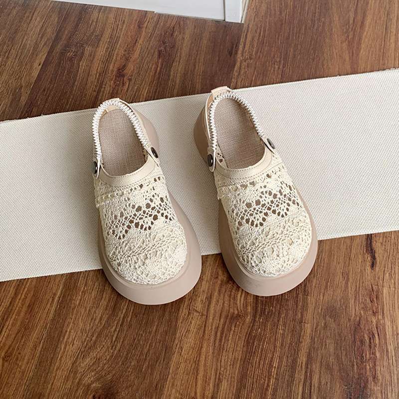 두꺼운 밑창, 편안하고 미끄럼 방지 발가락 여성 신발 2025 여름 새로운 중공 메쉬 겉옷 면 및 린넨 투웨어 슬리퍼스토어 가기