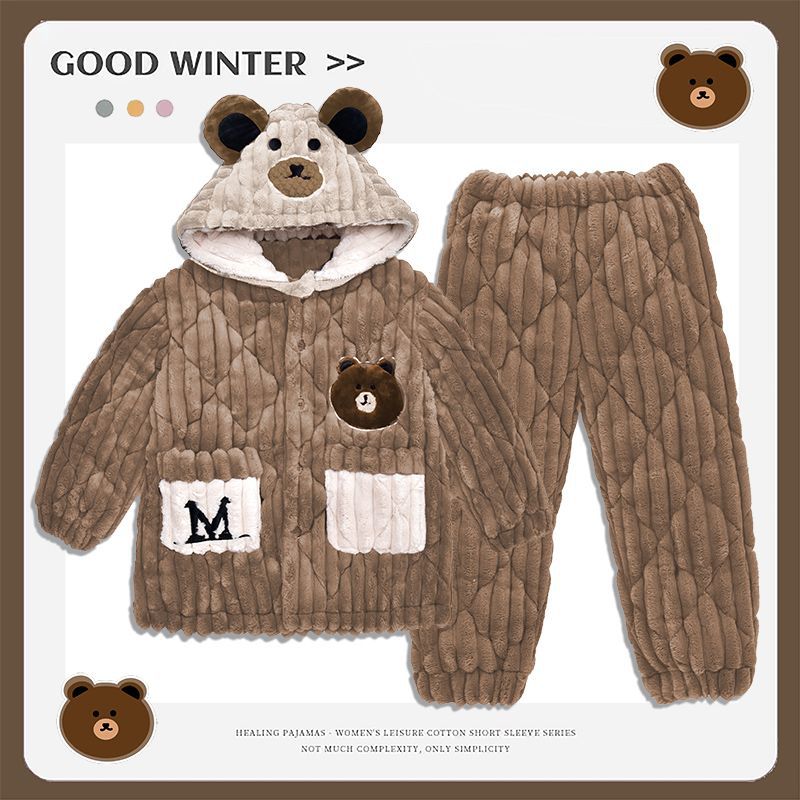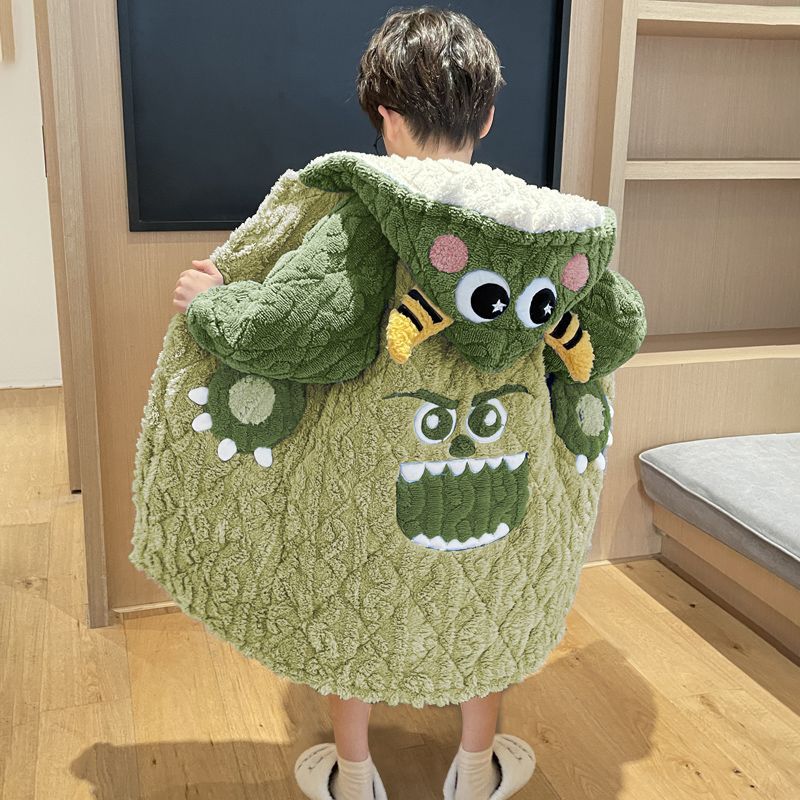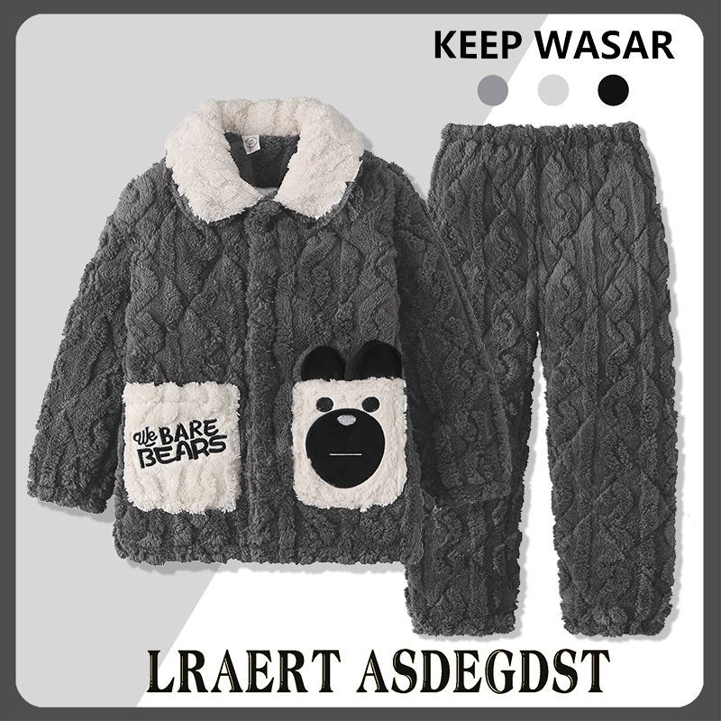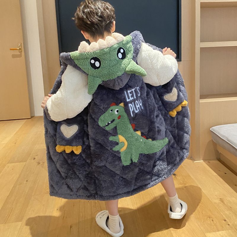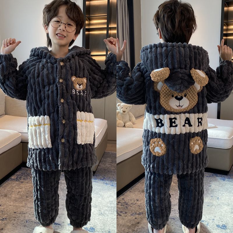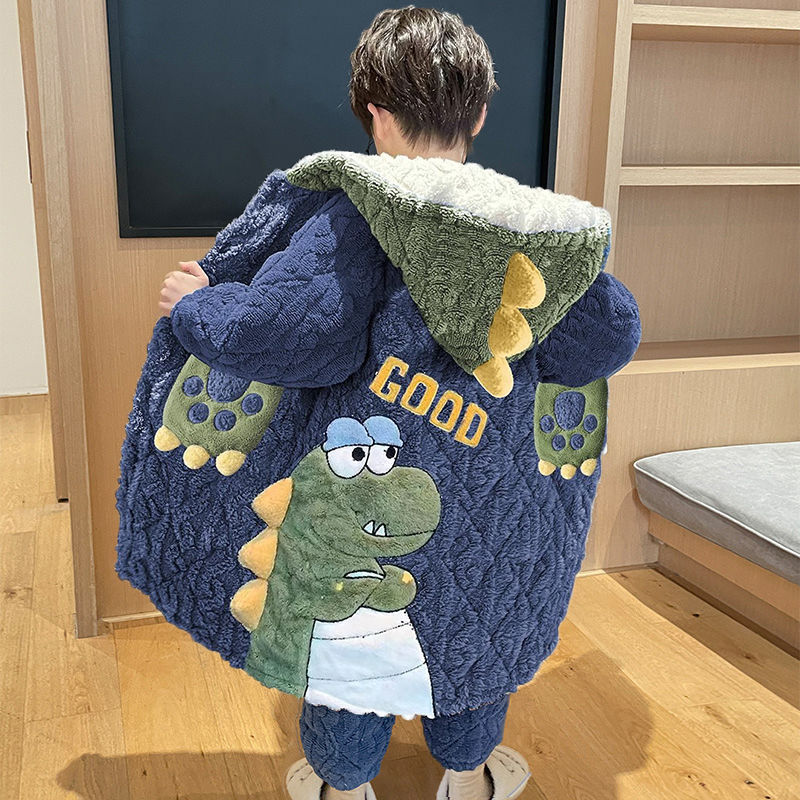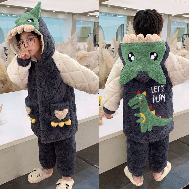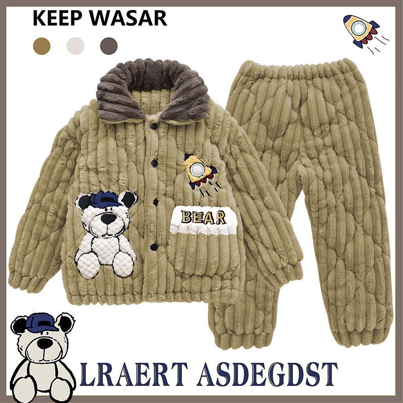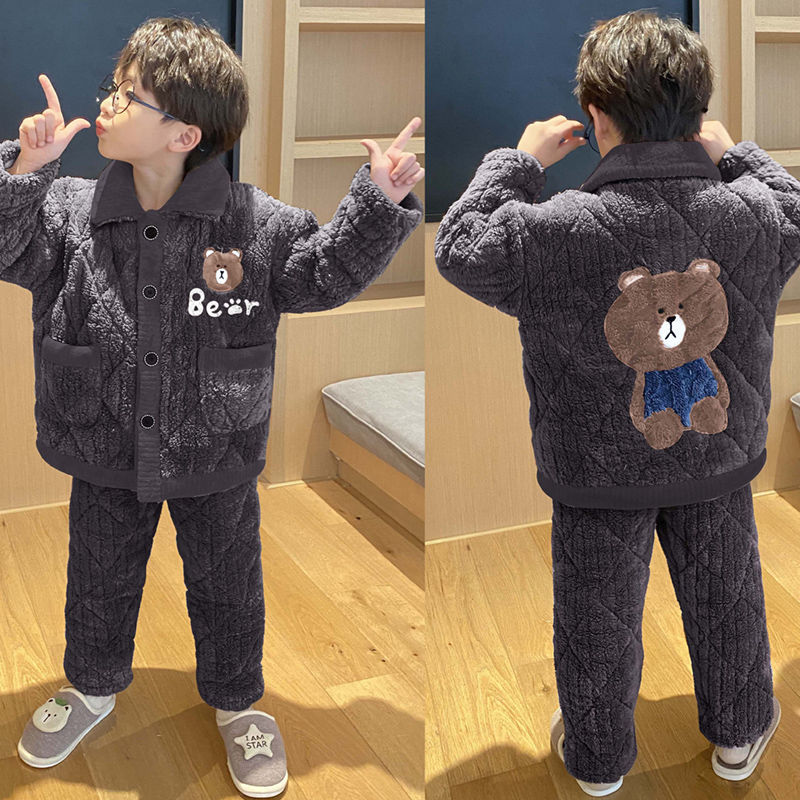 어린이 잠옷 소년 가을, 겨울 3 층 누비 가정 의류 두꺼운 2023 새로운 벨벳 잠옷 겨울