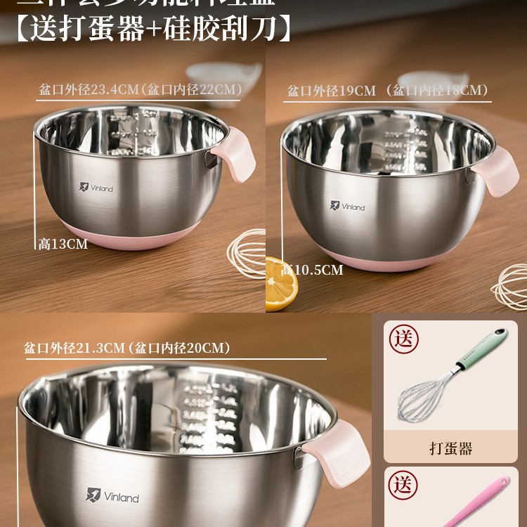 • [업그레이드된 두꺼운 304 스테인레스 스틸] 핑크색 미끄럼 방지 계란 비팅 대야 [대형] + 물 튀김 방지 커버