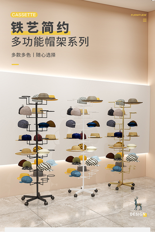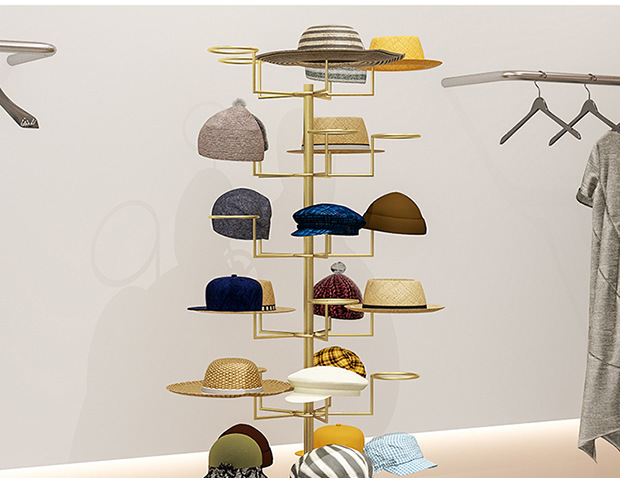 모자 랙 의류 매장 모자 디스플레이 랙 바닥-서 남성과 여성의 어린이 모성 및 유아 저장 매달린 다층 황금 옷걸이스토어 가기