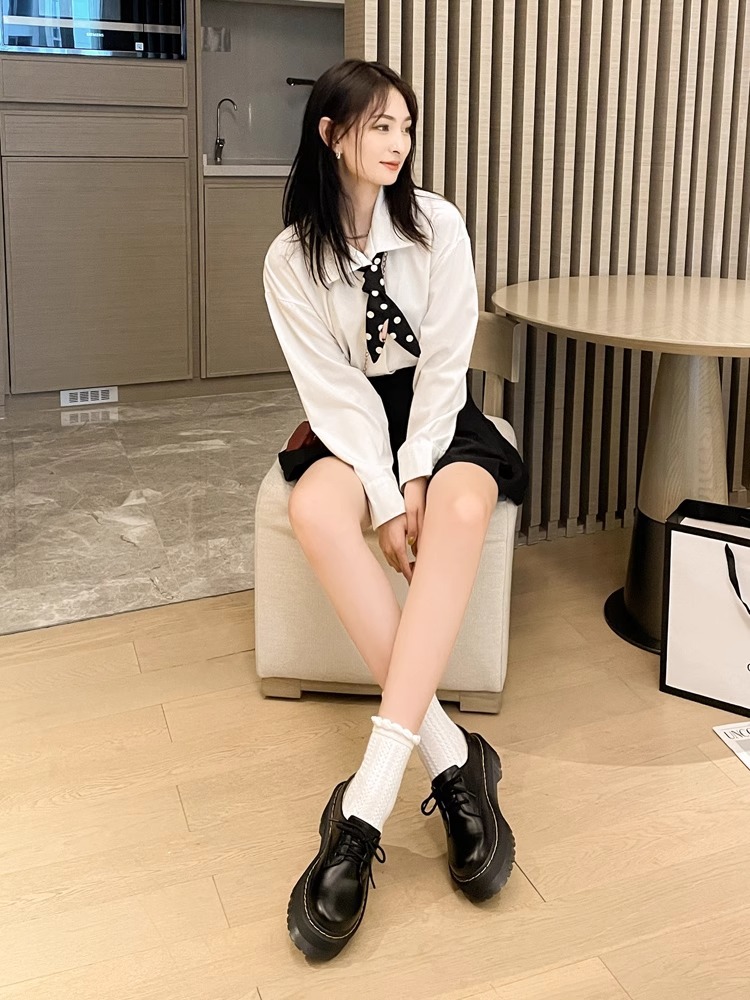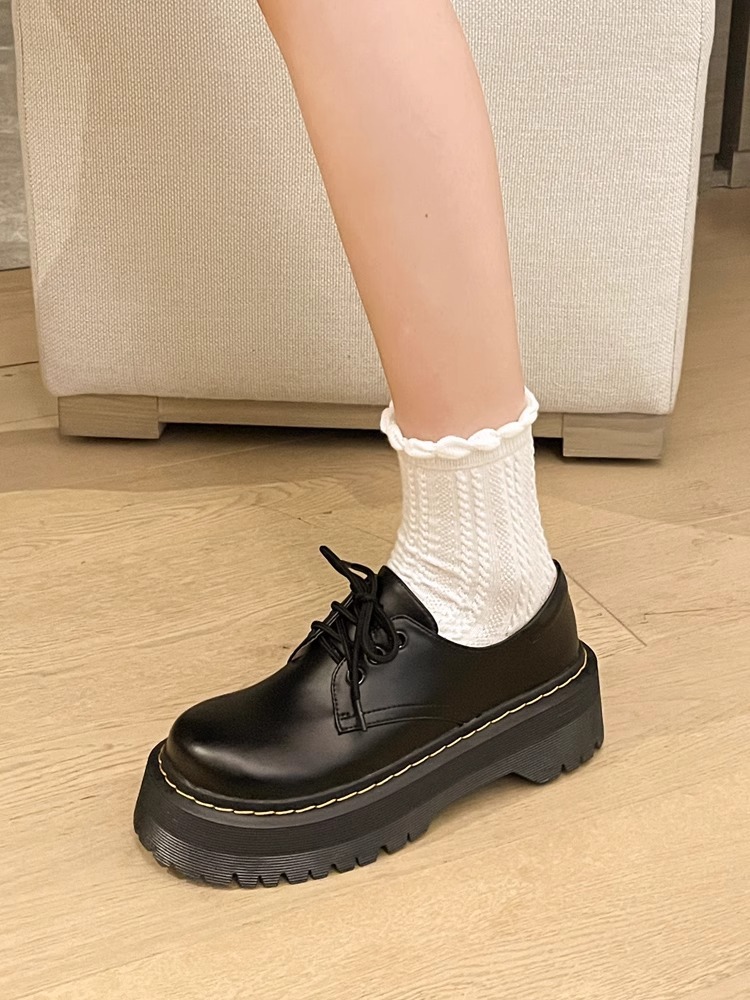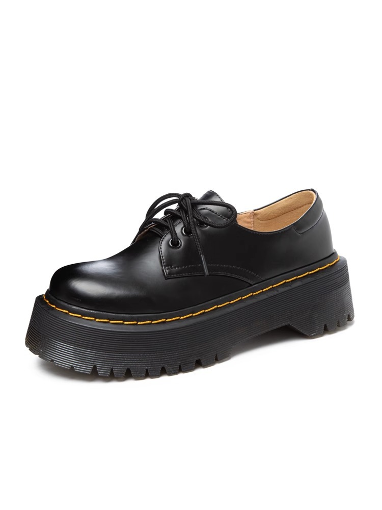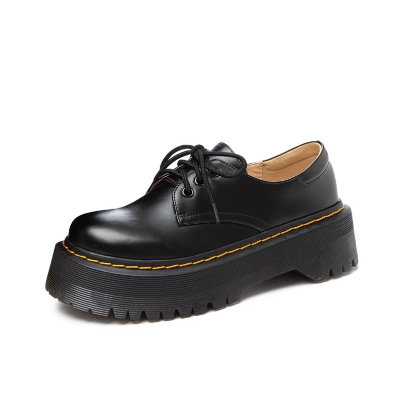 여성을위한 Yang Mi의 두꺼운 밑창 작은 가죽 신발 2025 새로운 가을 영국 스타일 검은 색 신발 정품 가죽 마틴 부츠 로우 탑