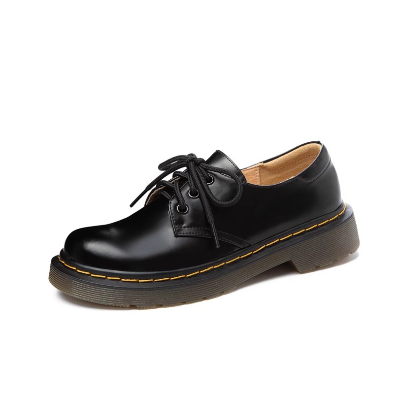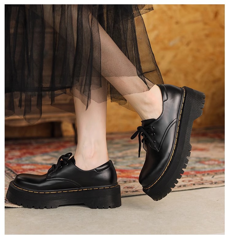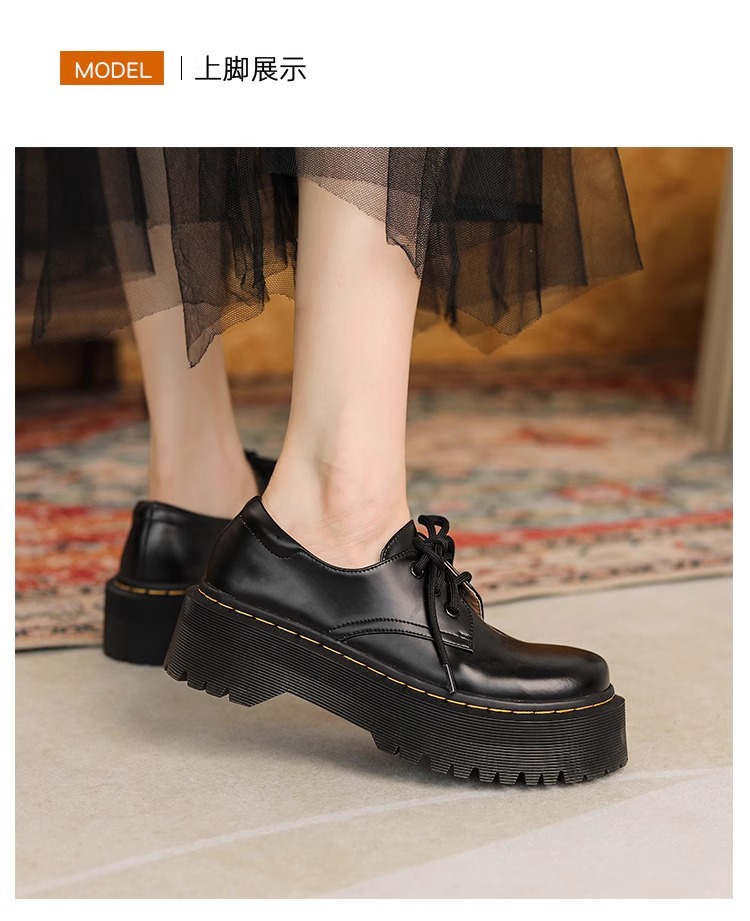 여성을위한 Yang Mi의 두꺼운 밑창 작은 가죽 신발 2025 새로운 가을 영국 스타일 검은 색 신발 정품 가죽 마틴 부츠 로우 탑스토어 가기
