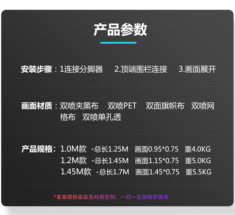 • 스크린 크기 100x75CM을 포함한 알루미늄 합금 크로스바