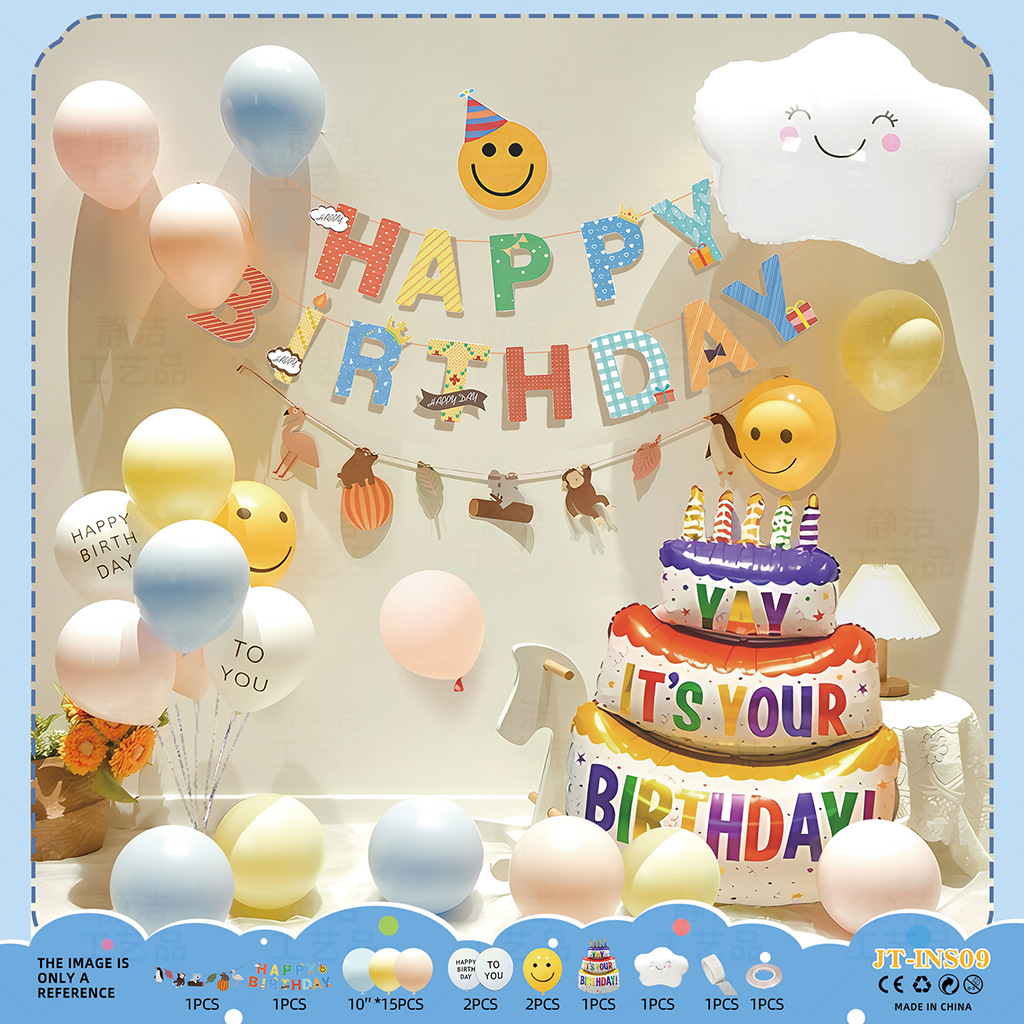 국경 간 ins 스타일 어린이 생일 장면 장식 소년과 소녀 풍선 가족 간단한 파티 의식스토어 가기