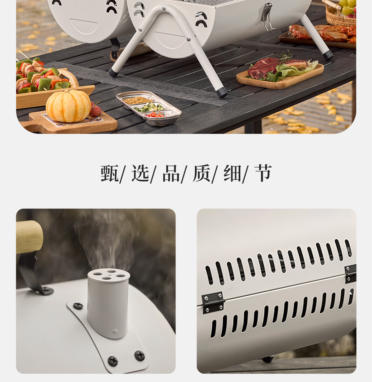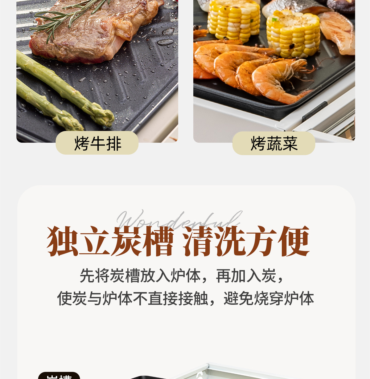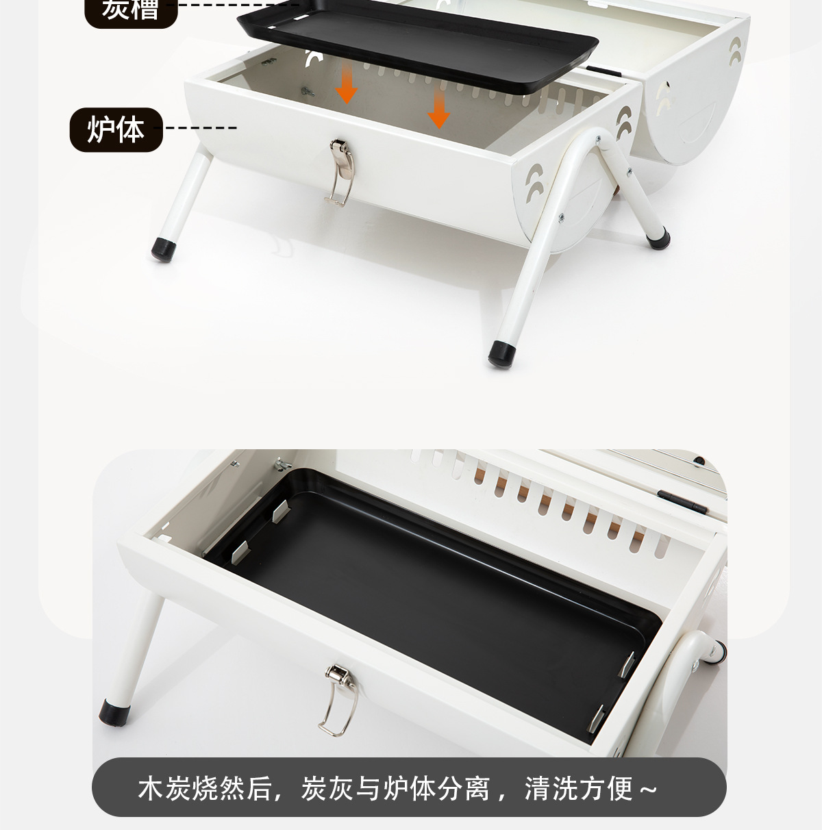 • 펄 화이트: 양면 바베큐 그릴 + 그릴 그릴*2 [이중 숯 여물통] 양면 그릴