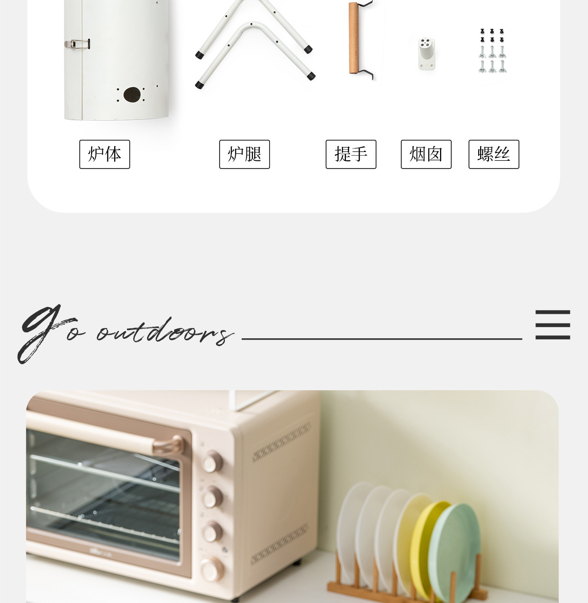 • 펄 화이트: 양면 바베큐 그릴+그릴 그리드*2+베이킹 팬+숯 5kg개