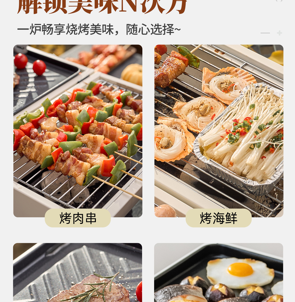 • 흑요석 블랙: 양면 바비큐 그릴 + 그릴망*2 + 베이킹 팬 [튀김과 그릴이 하나로]