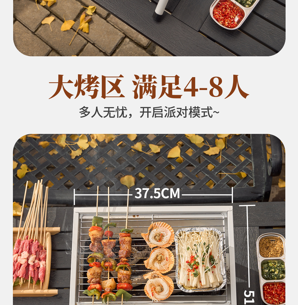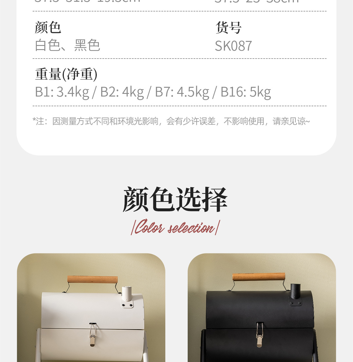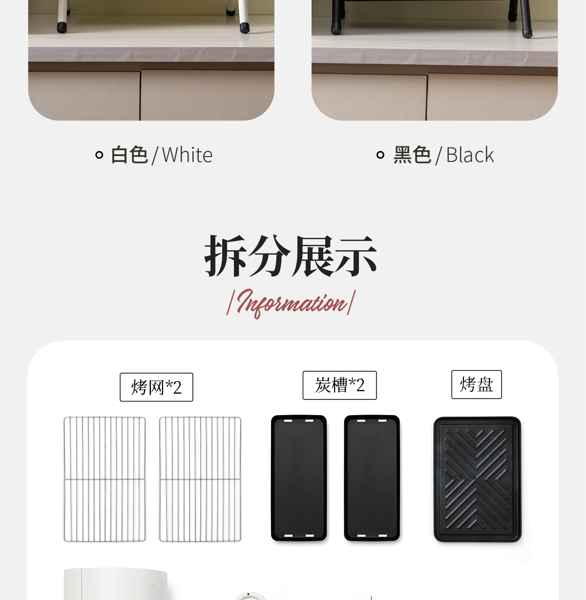 • 펄 화이트: 양면 바베큐 그릴+그릴 그리드*2+베이킹 팬+숯 2.5kg개