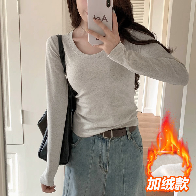 2025 년 여름 뉴 숄더 슬림 핏 슬리밍 U-칼라 코튼 티셔츠 여성 캐주얼 올 매치 화이트 라운드 넥 반팔 탑