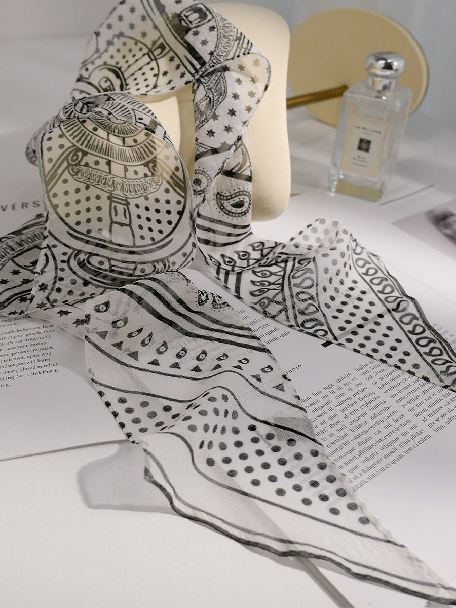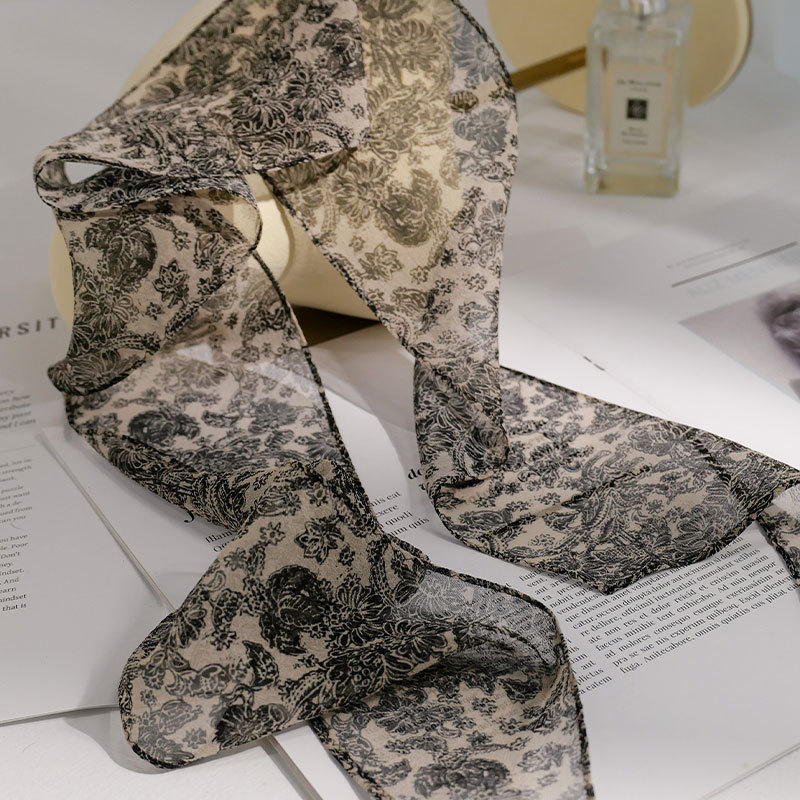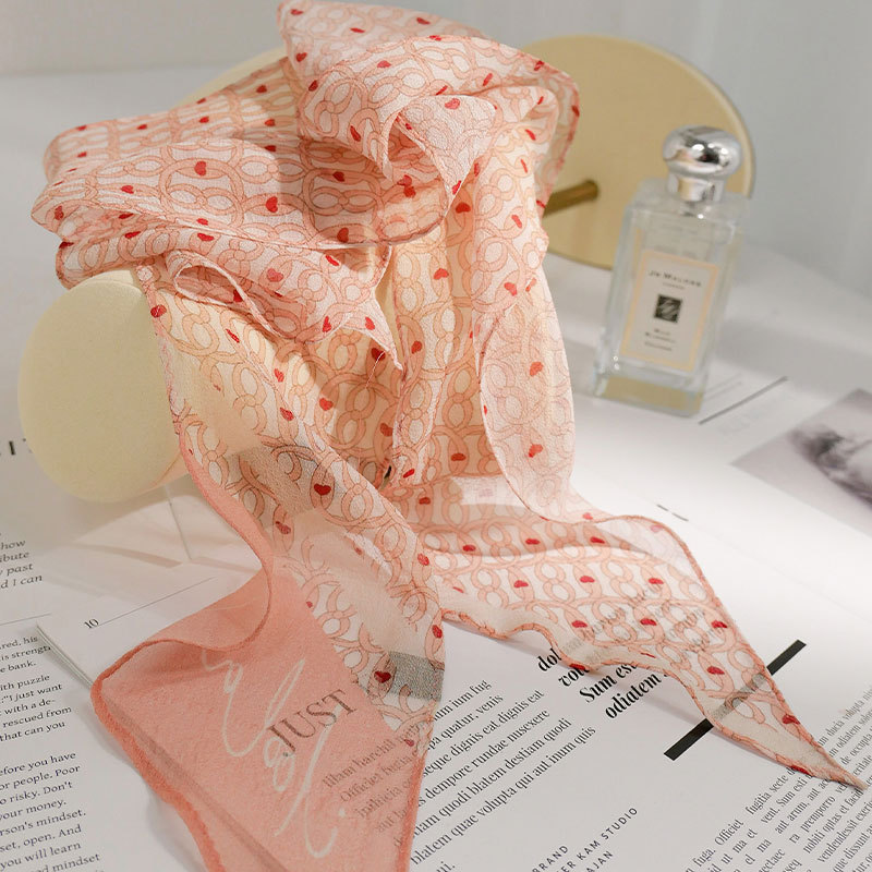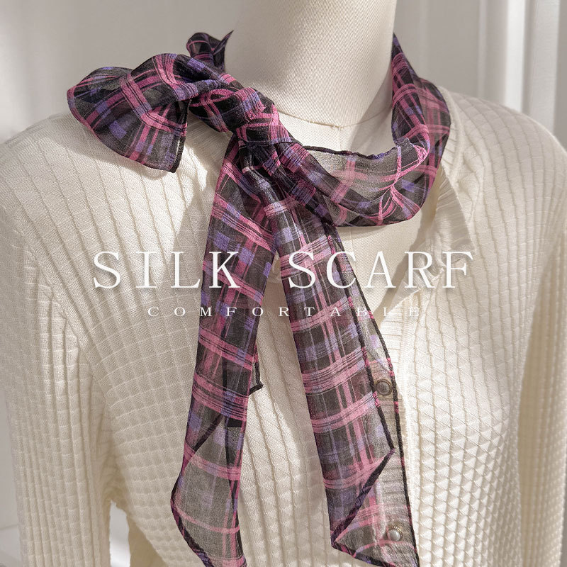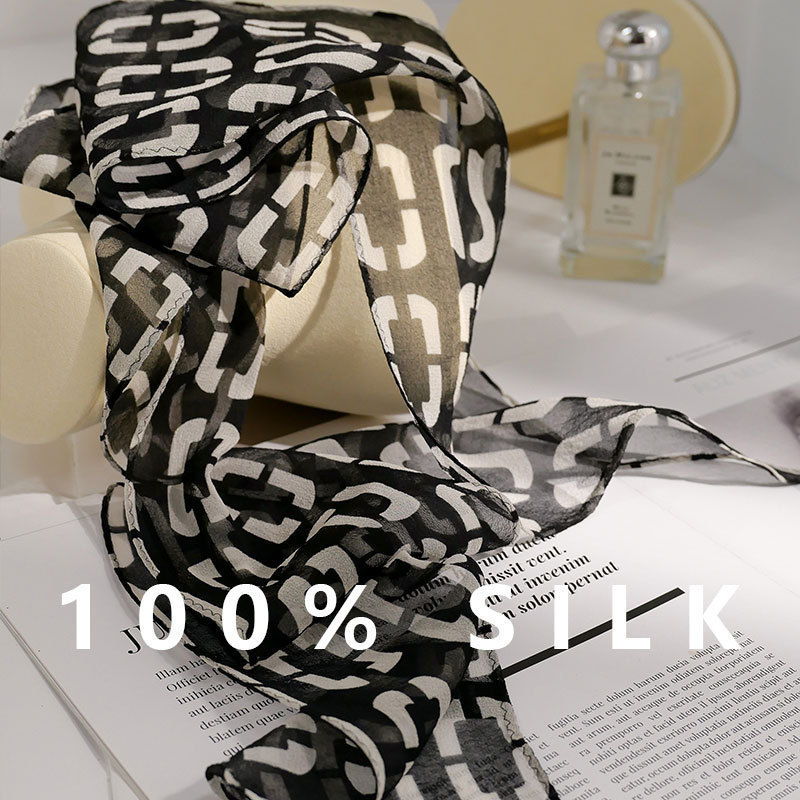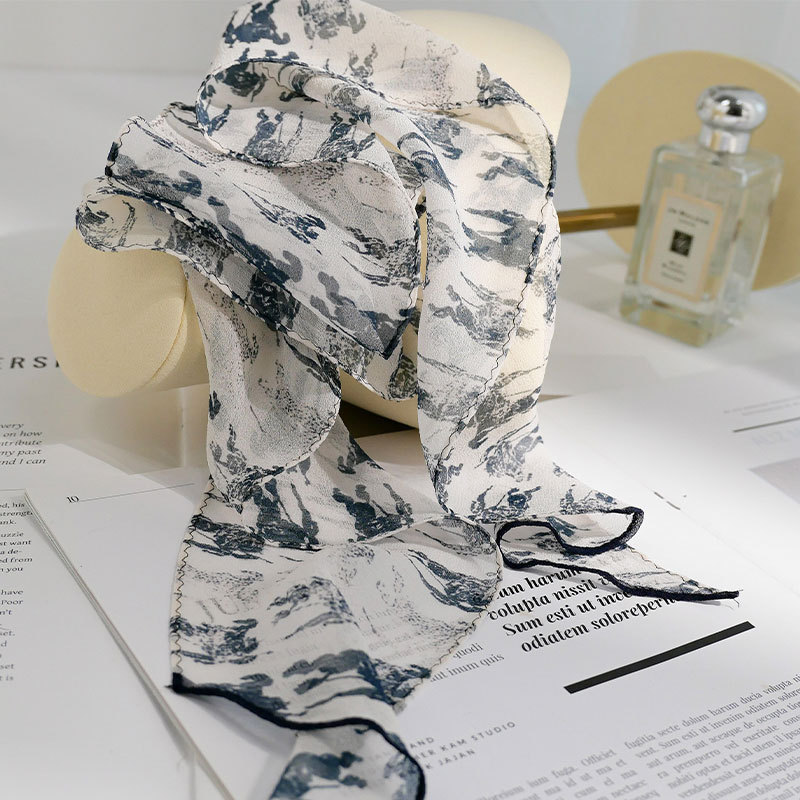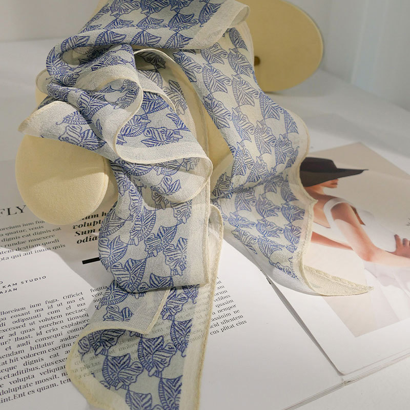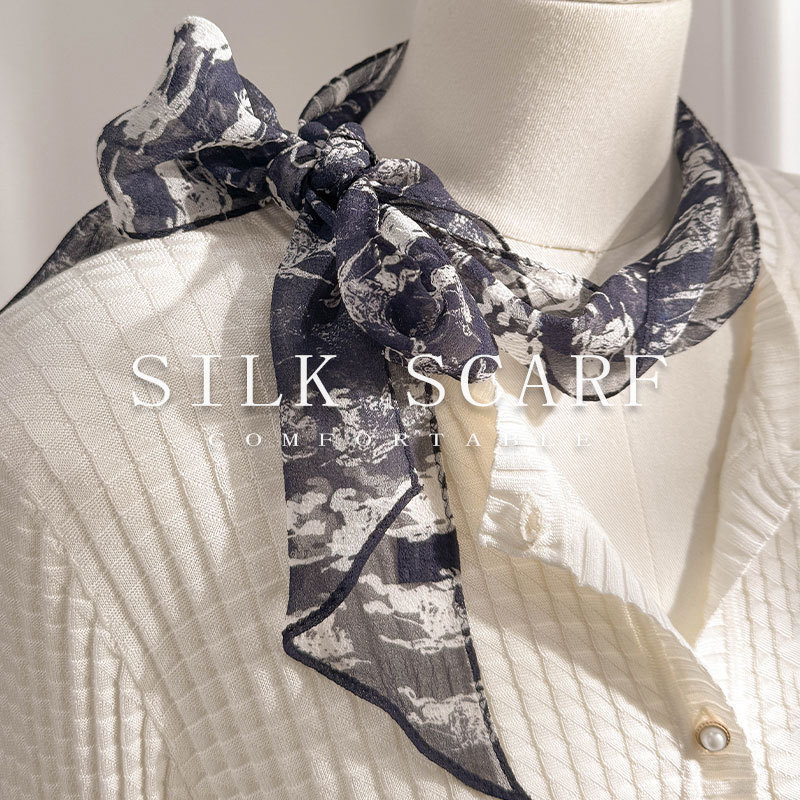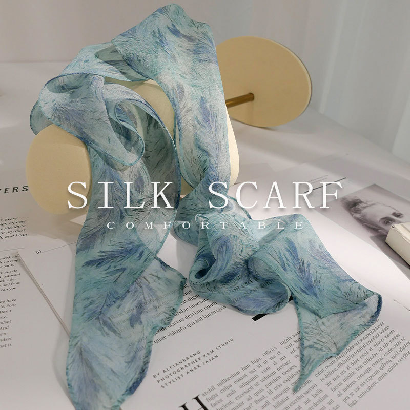블루 실크 스카프 고급 럭셔리 틈새 뽕나무 실크 롱 리본 여자 올 매치 액세서리 목 스카프
