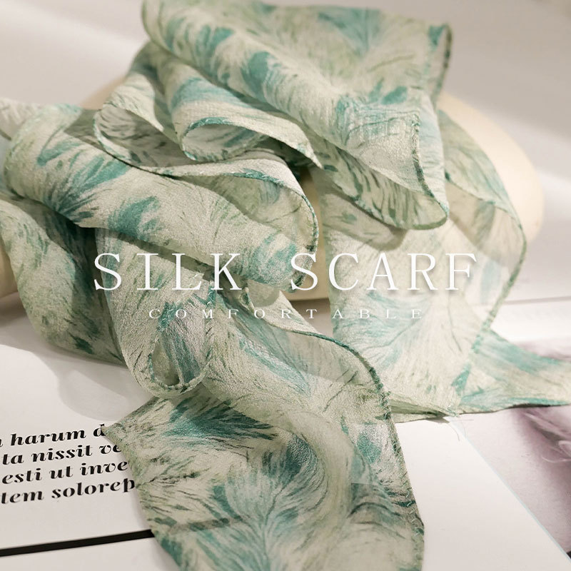 블루 실크 스카프 고급 럭셔리 틈새 뽕나무 실크 롱 리본 여자 올 매치 액세서리 목 스카프스토어 가기