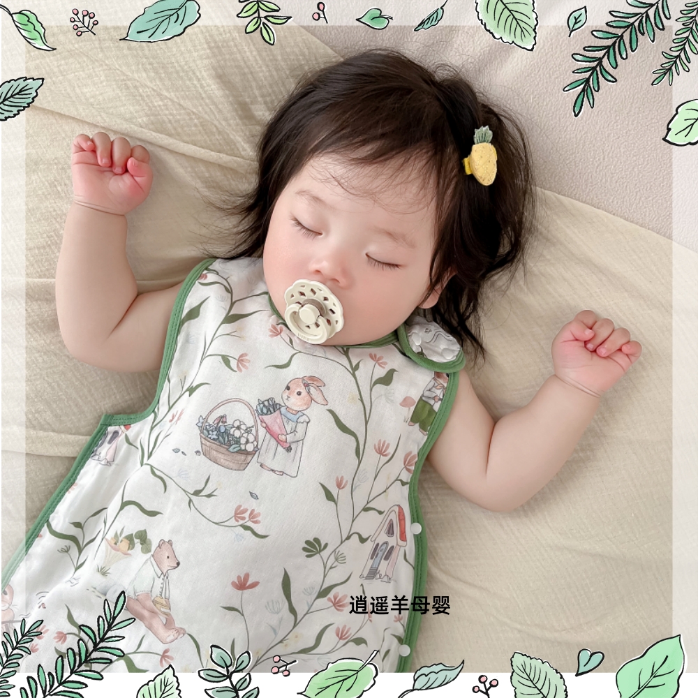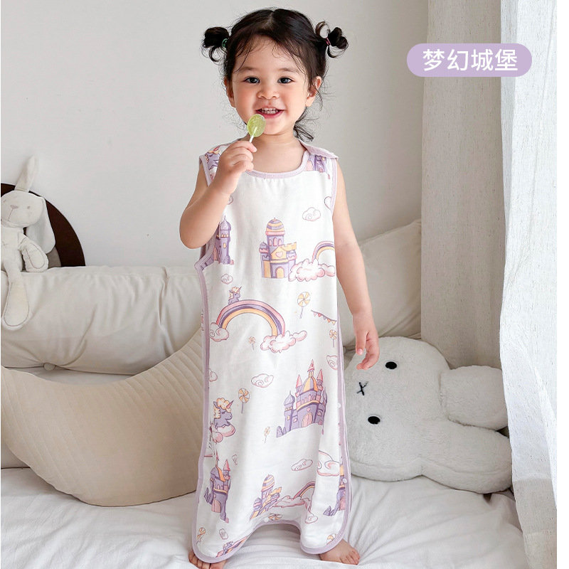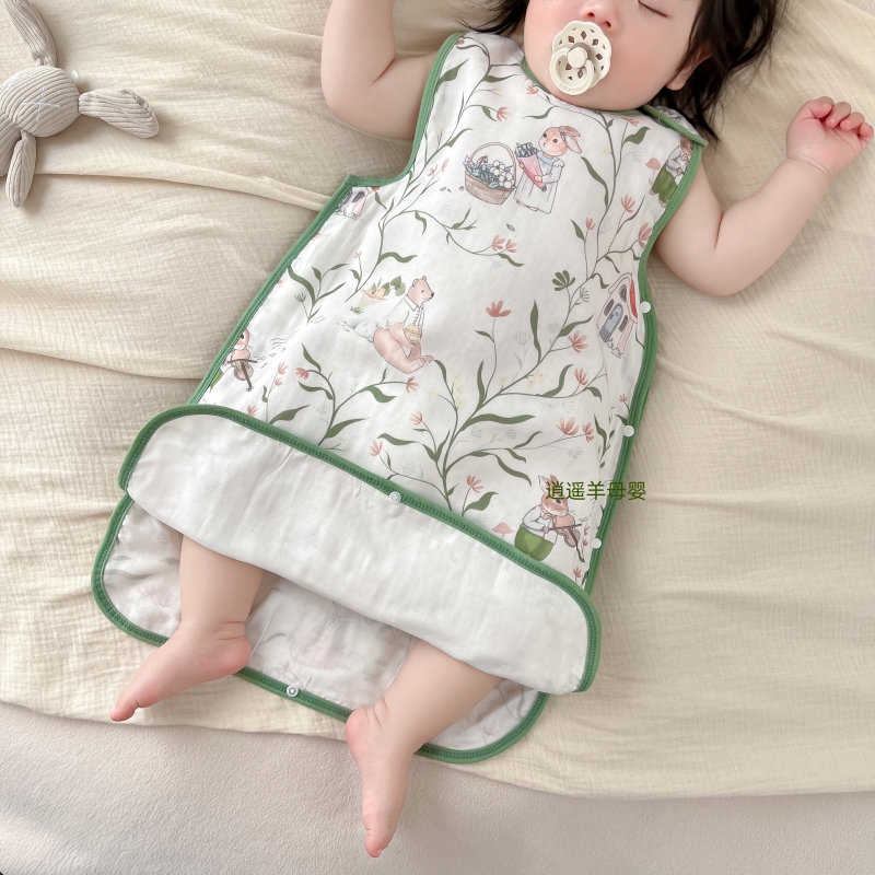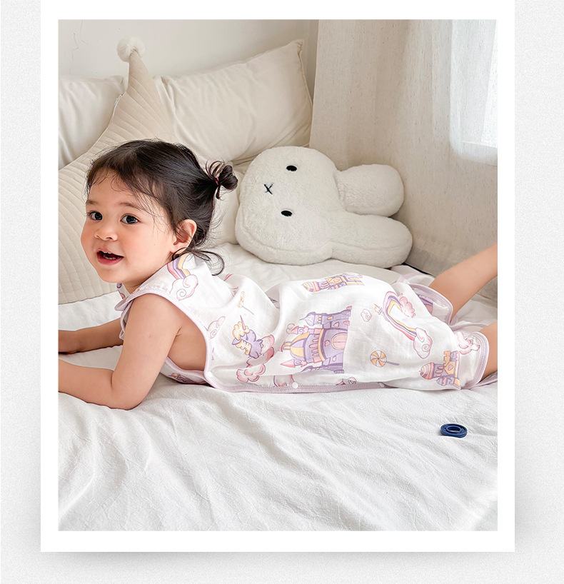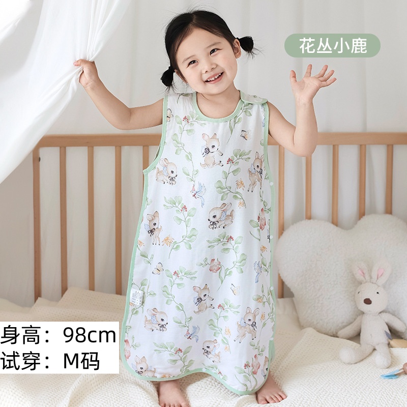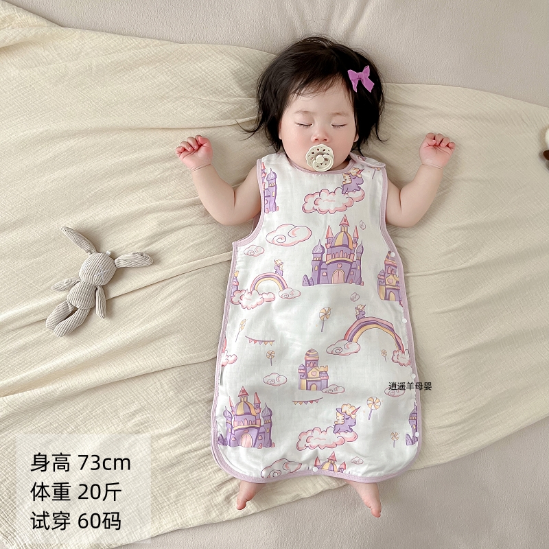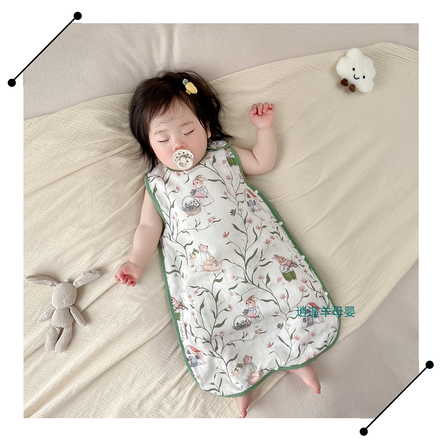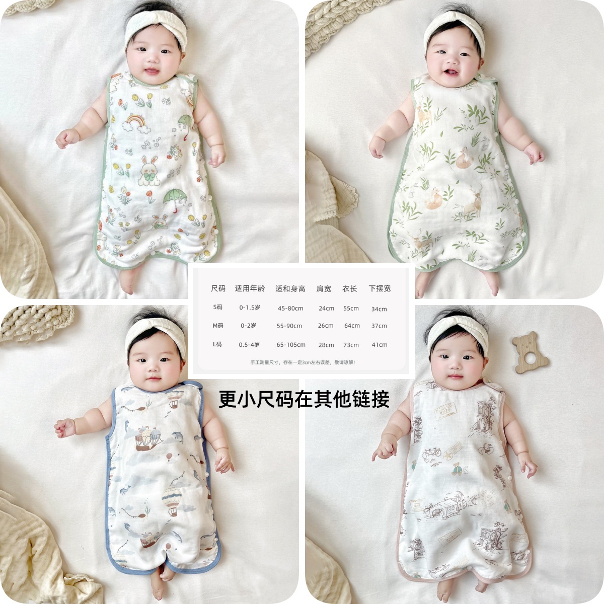 아기 조끼 침낭 대나무 면 거즈 민소매 앞 4 뒤 2 여름 얇은 에어컨 아기 다리 분할 발차기 방지 이불스토어 가기