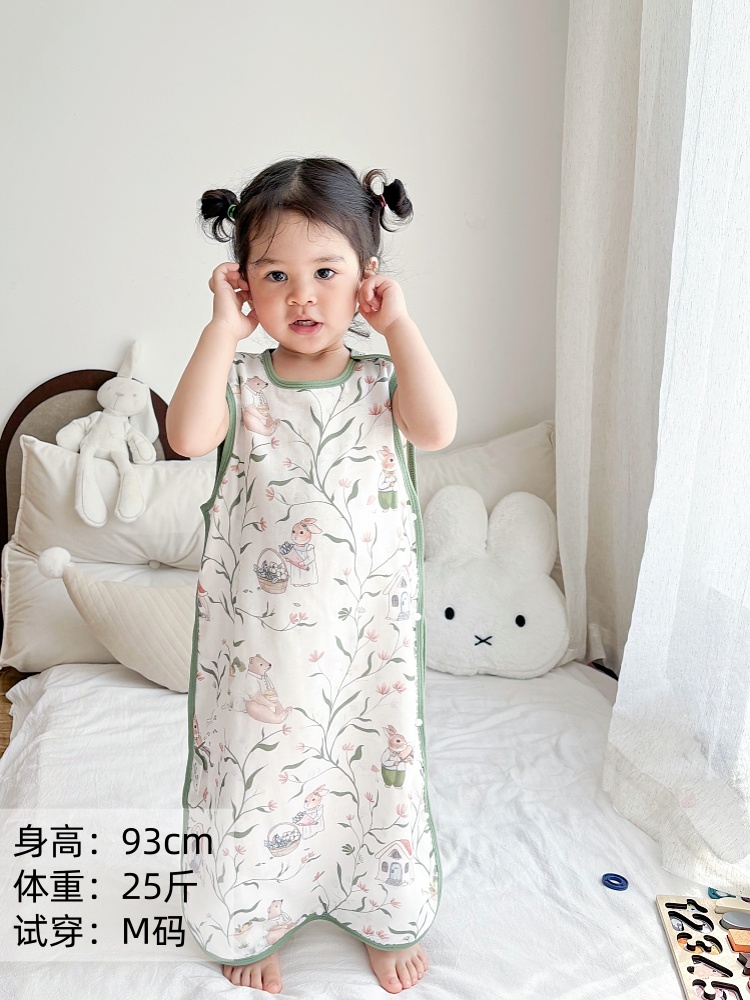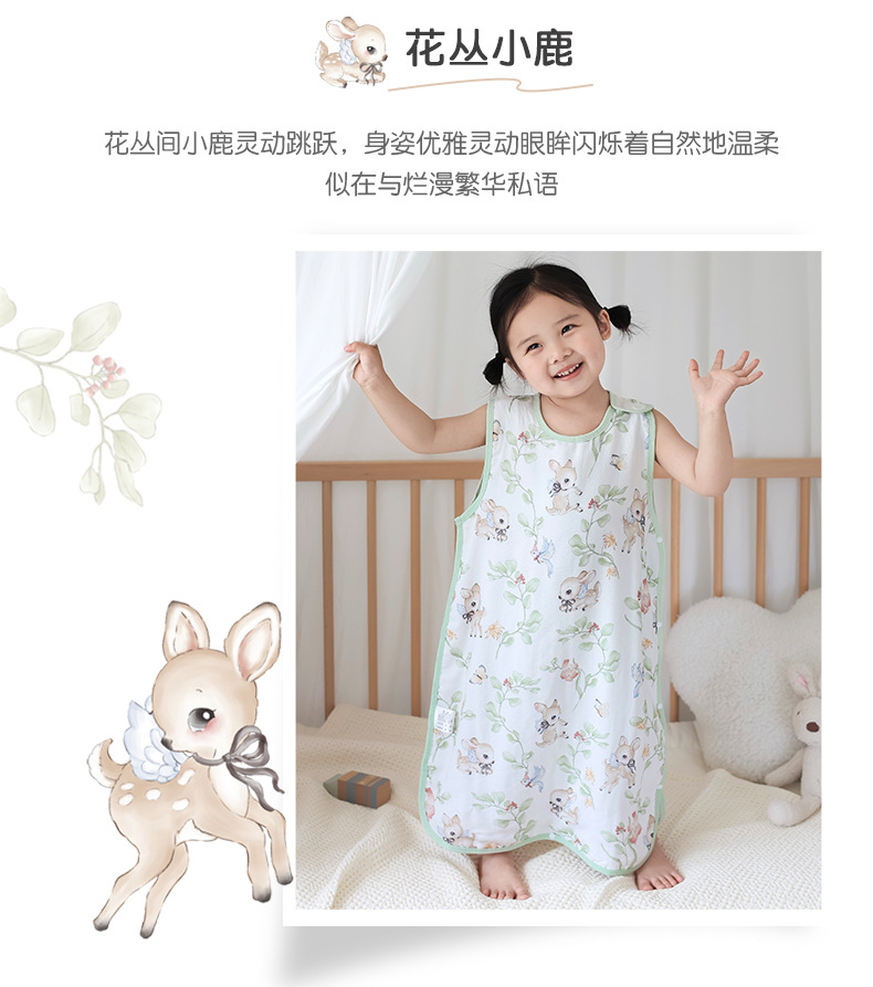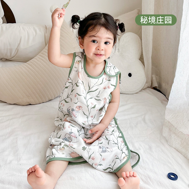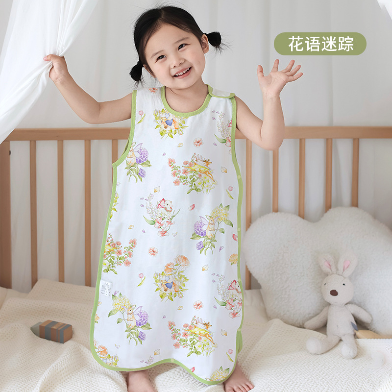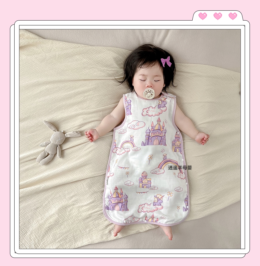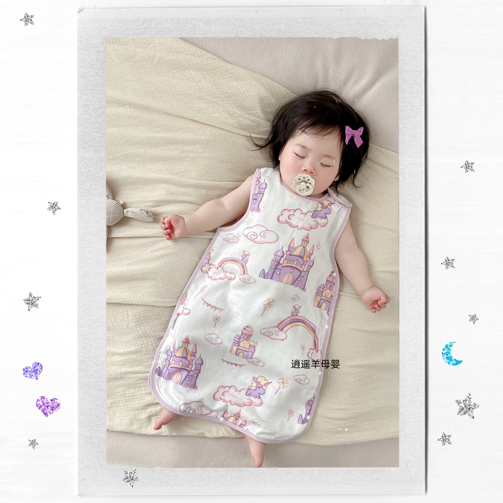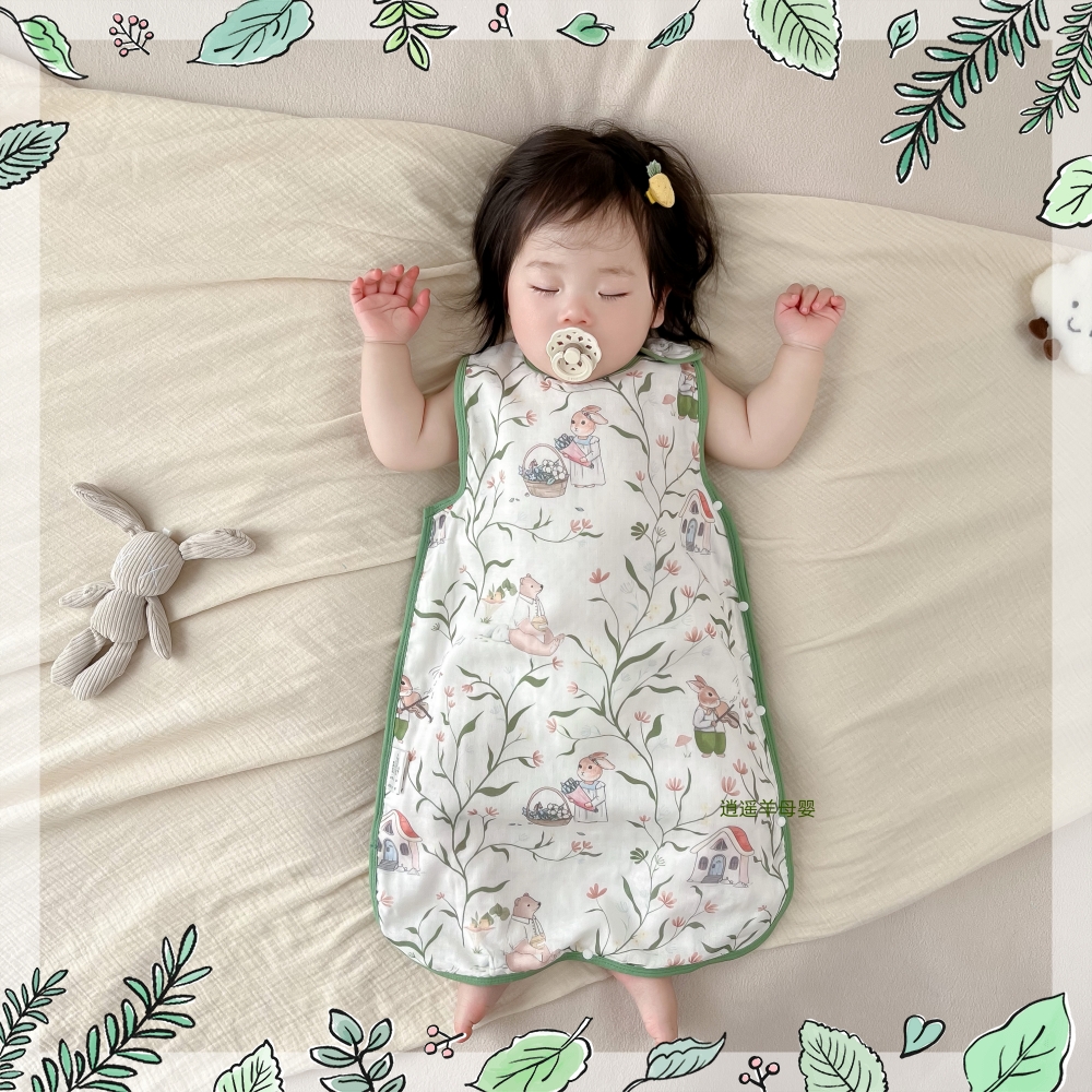 아기 조끼 침낭 대나무 면 거즈 민소매 앞 4 뒤 2 여름 얇은 에어컨 아기 다리 분할 발차기 방지 이불스토어 가기