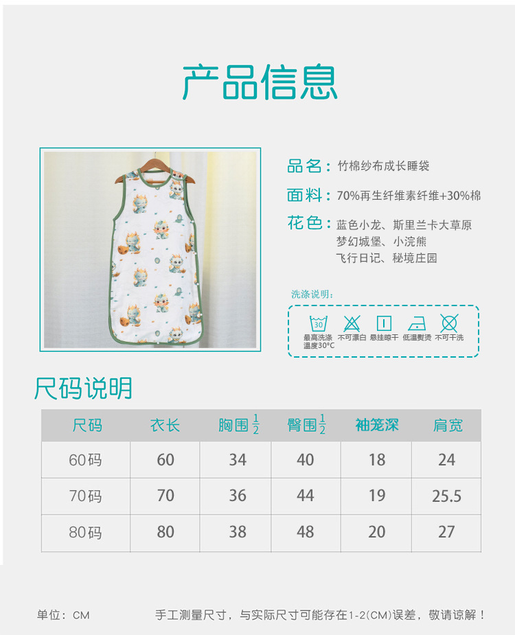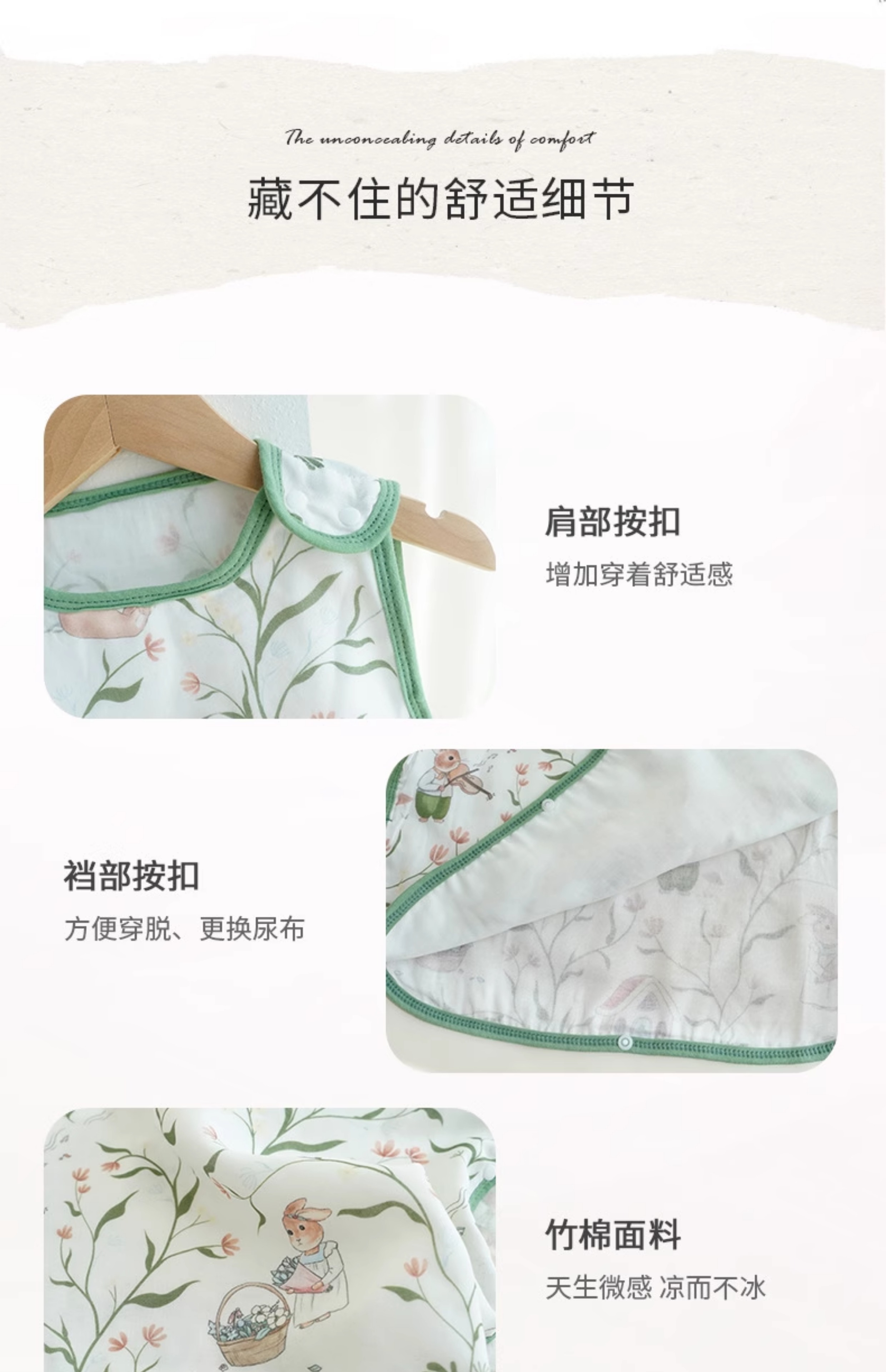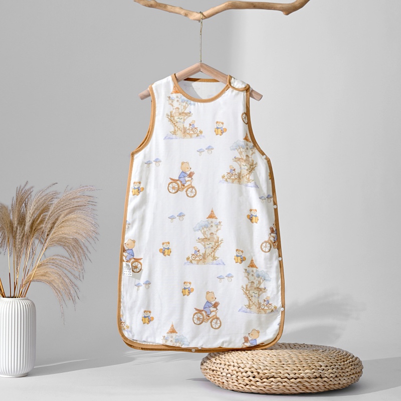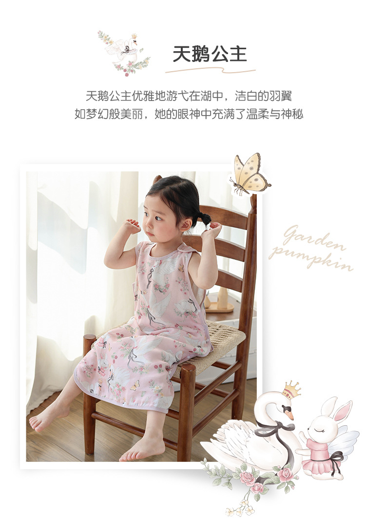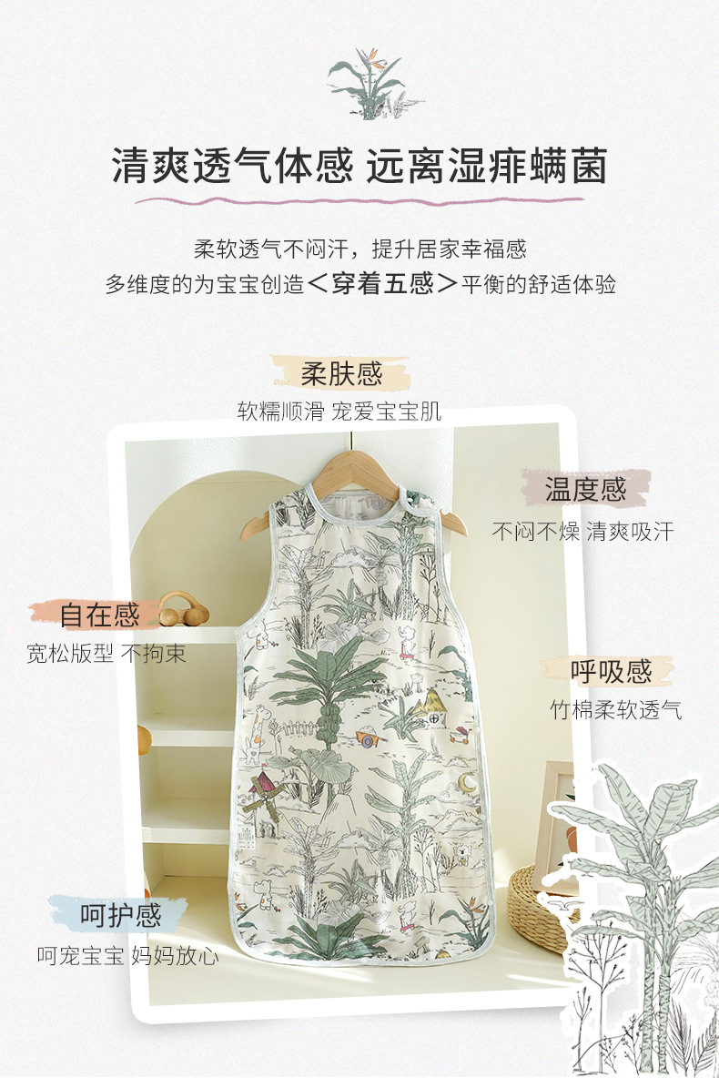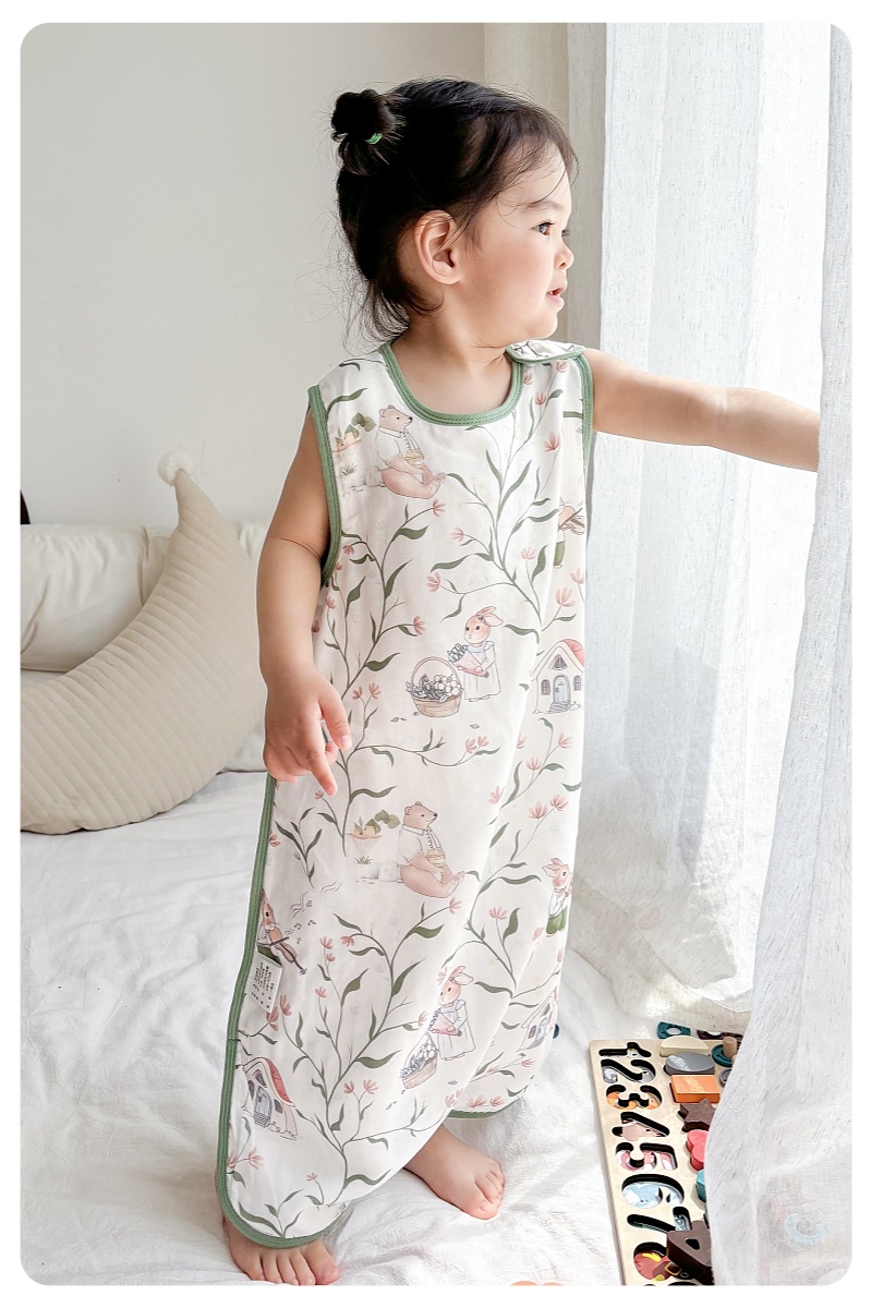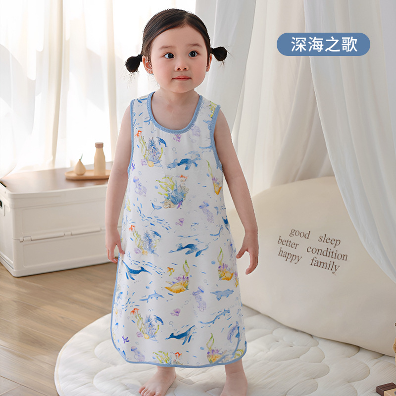 아기 조끼 침낭 대나무 면 거즈 민소매 앞 4 뒤 2 여름 얇은 에어컨 아기 다리 분할 발차기 방지 이불스토어 가기