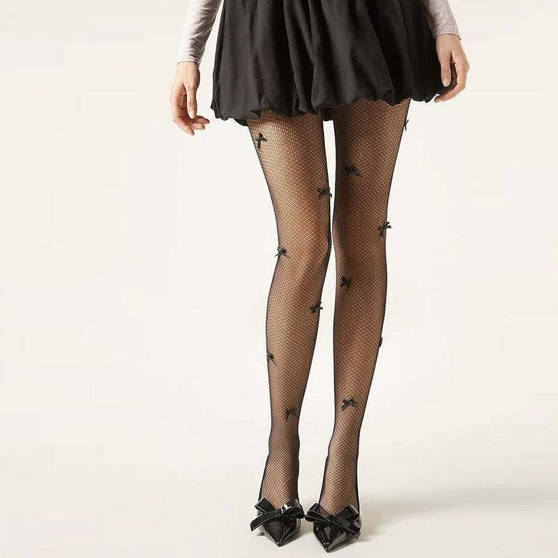 봄과 여름 발레 스타일 순수한 욕망 소녀의 수제 3 차원 다중 Bowknot Fishnet 스타킹 솔리드 컬러 실크 스타킹베이스 팬티 스타킹