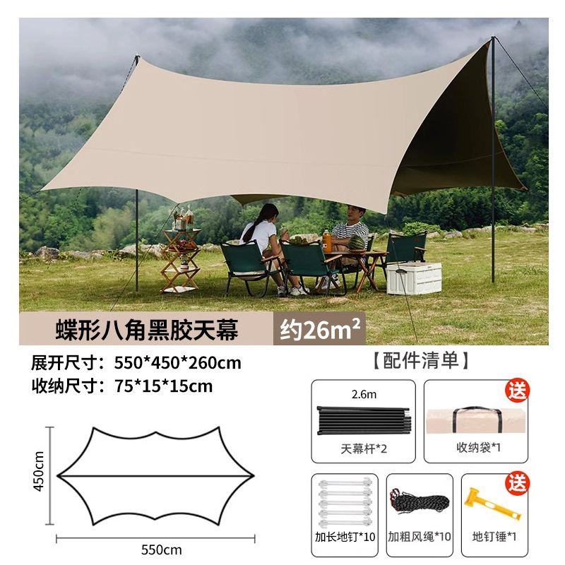 비닐 캐노피 제조업체 텐트 야외 대형 캠핑 장비 캠핑 피크닉 태양 보호 팔각형 나비 모양의 천막