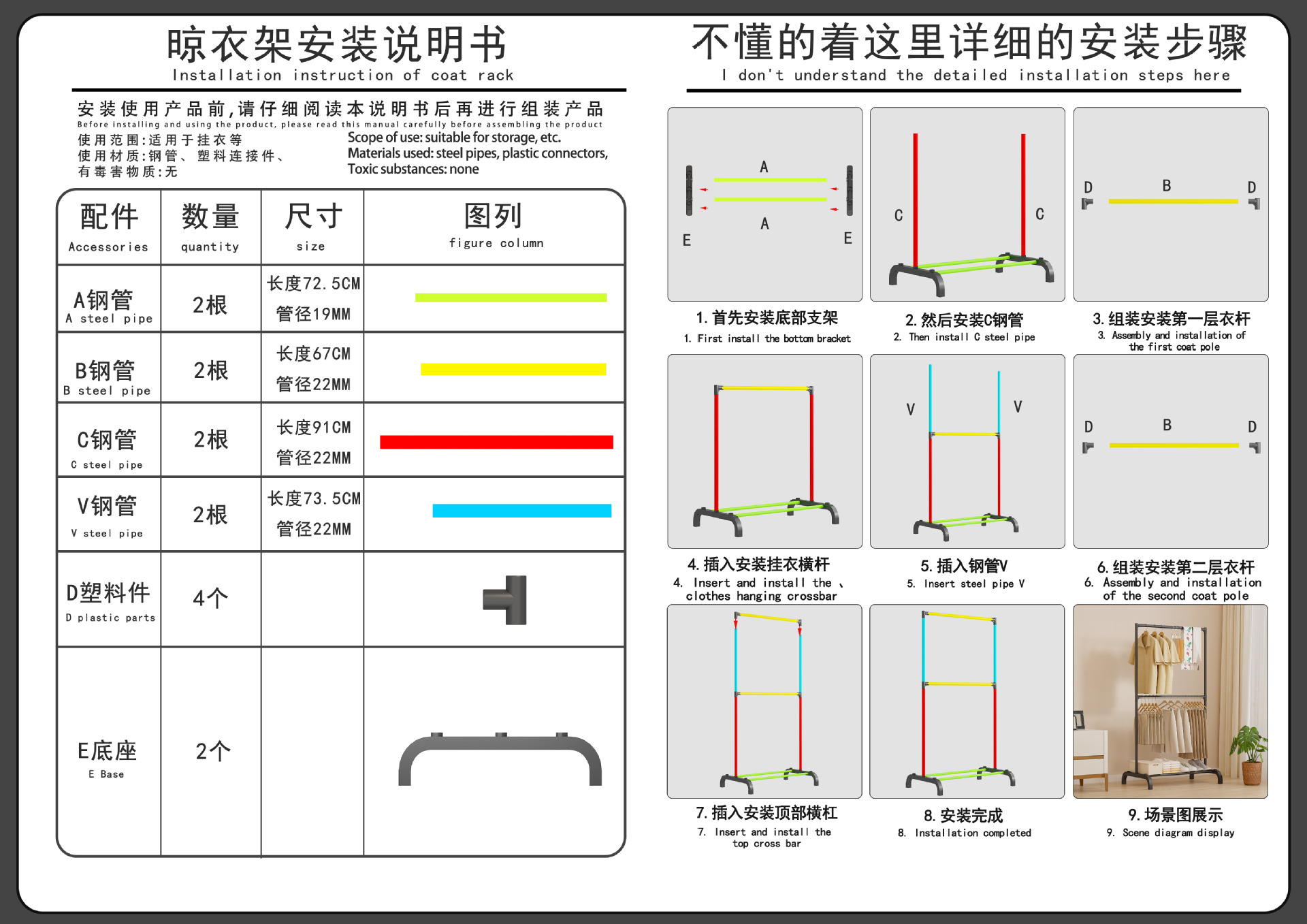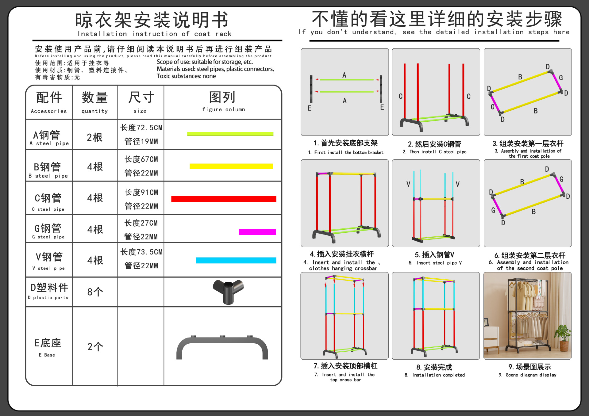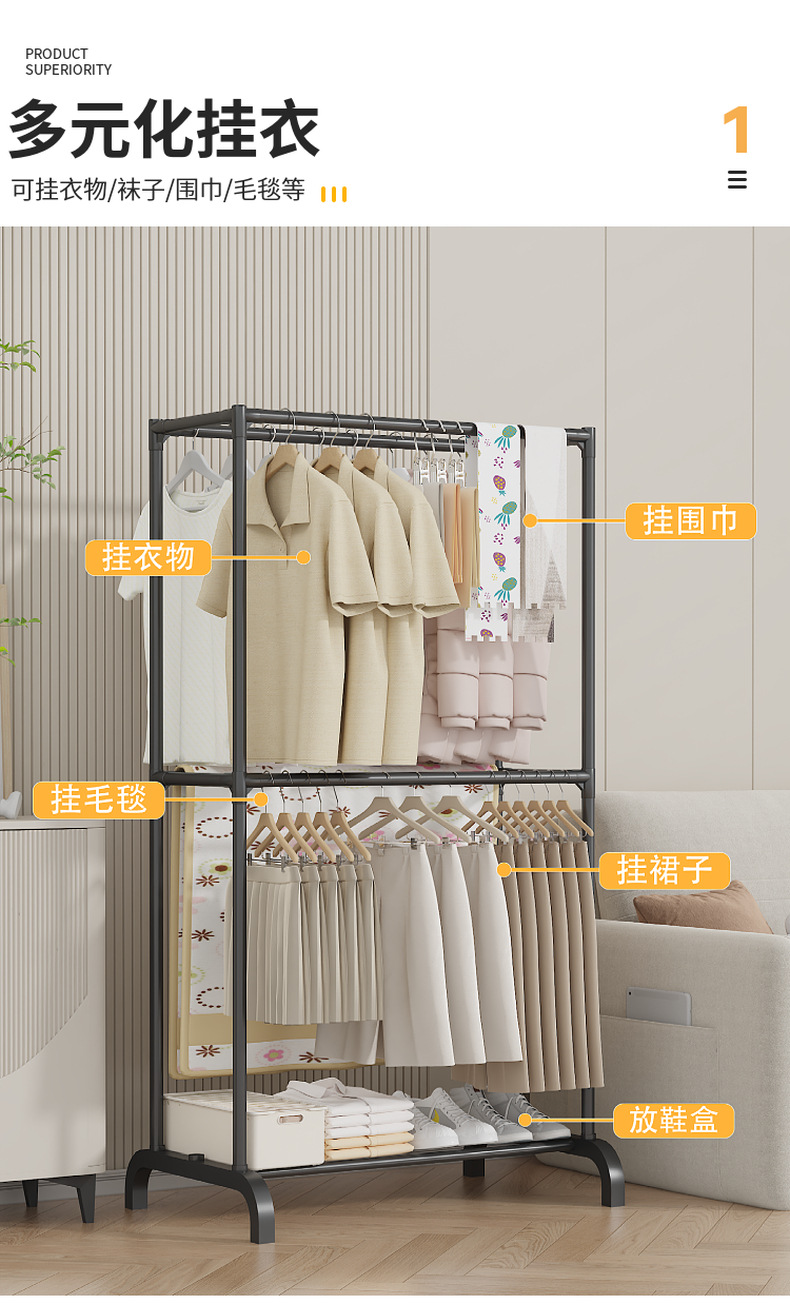 홈 실내 간단한 옷 랙 룸 다기능 바닥 장착 코트 랙 6808