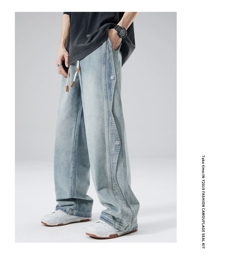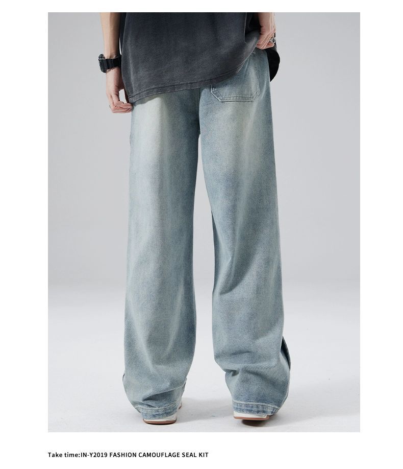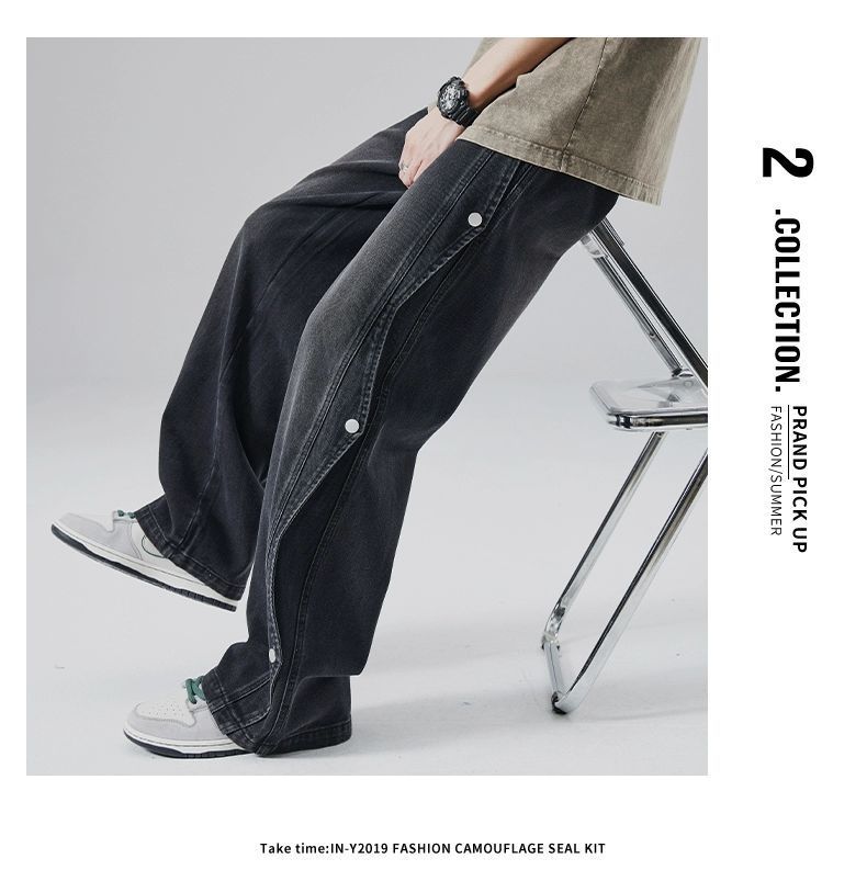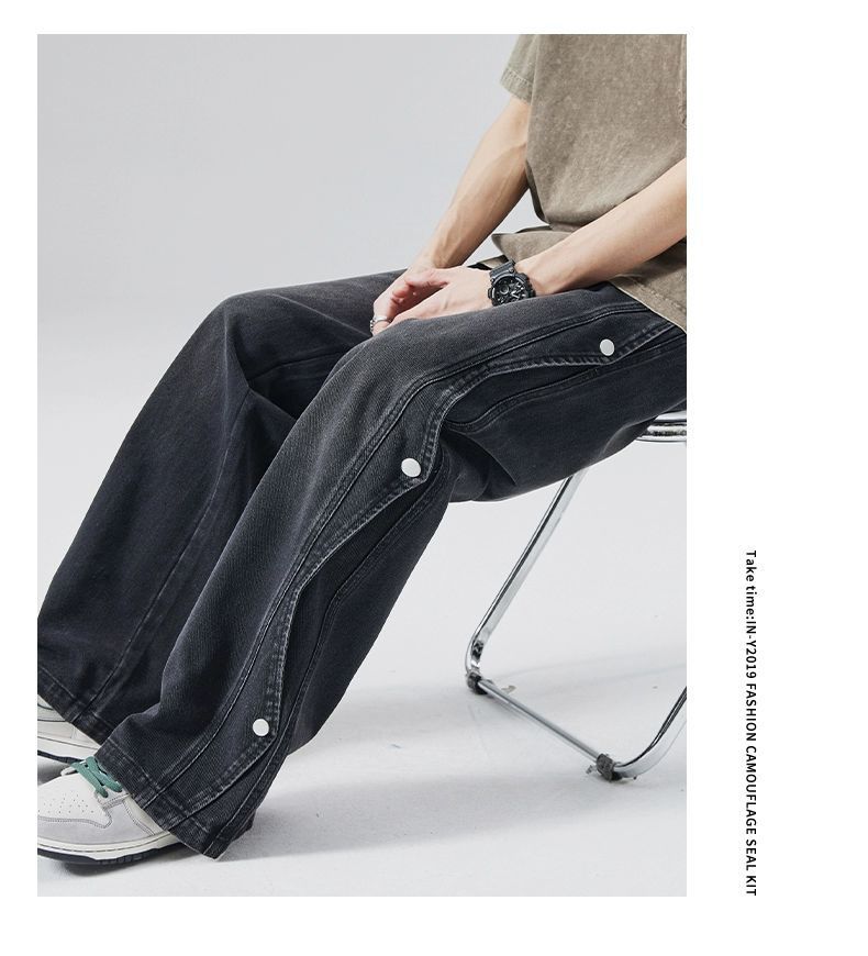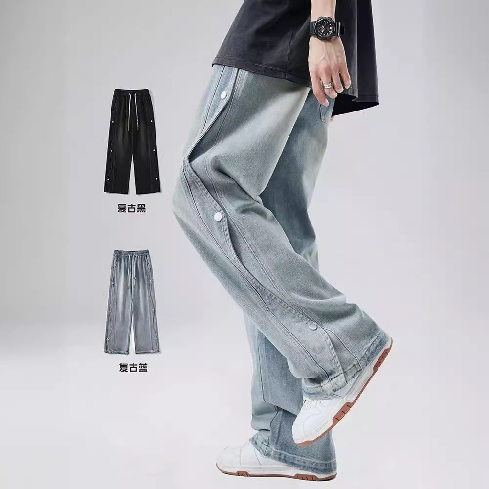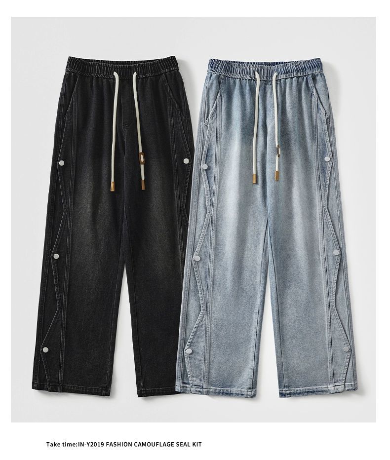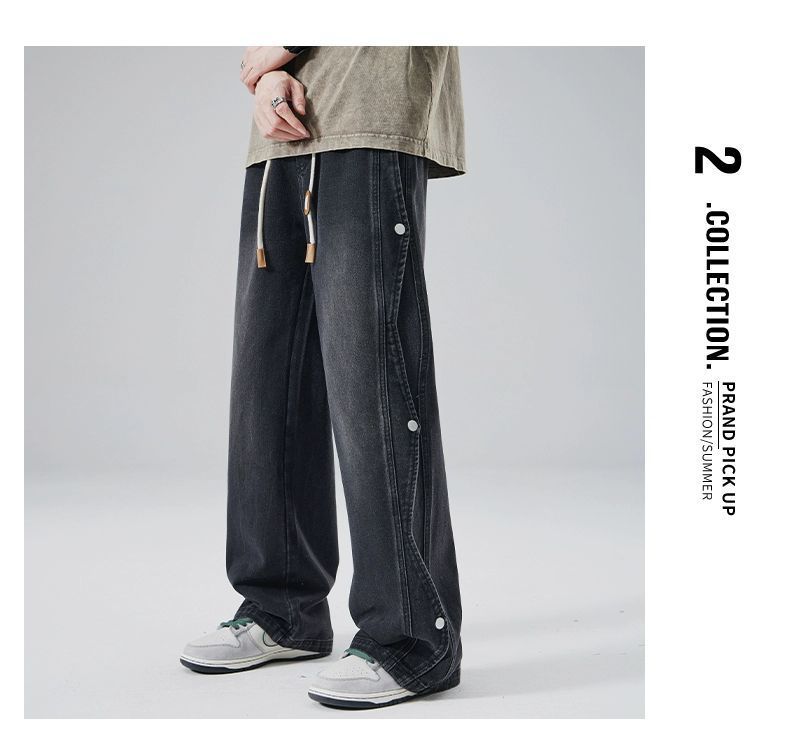남성용 청바지 2025 새로운 미국 트렌디 디자인 다용도 캐주얼 스트레이트 팬츠 여름 와이드 레그 롱 팬츠스토어 가기