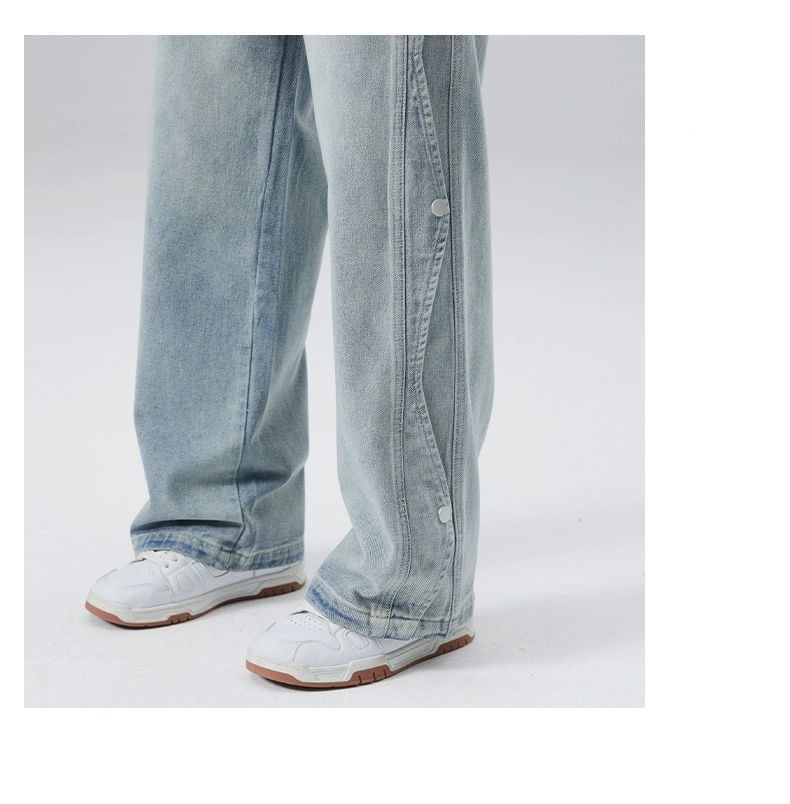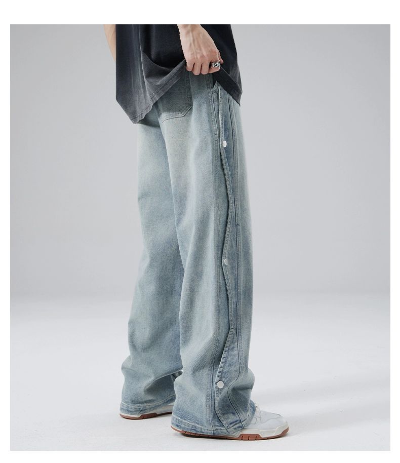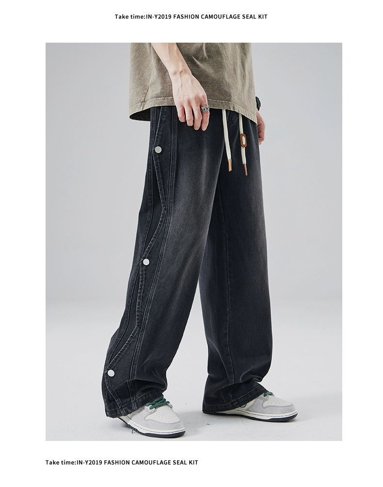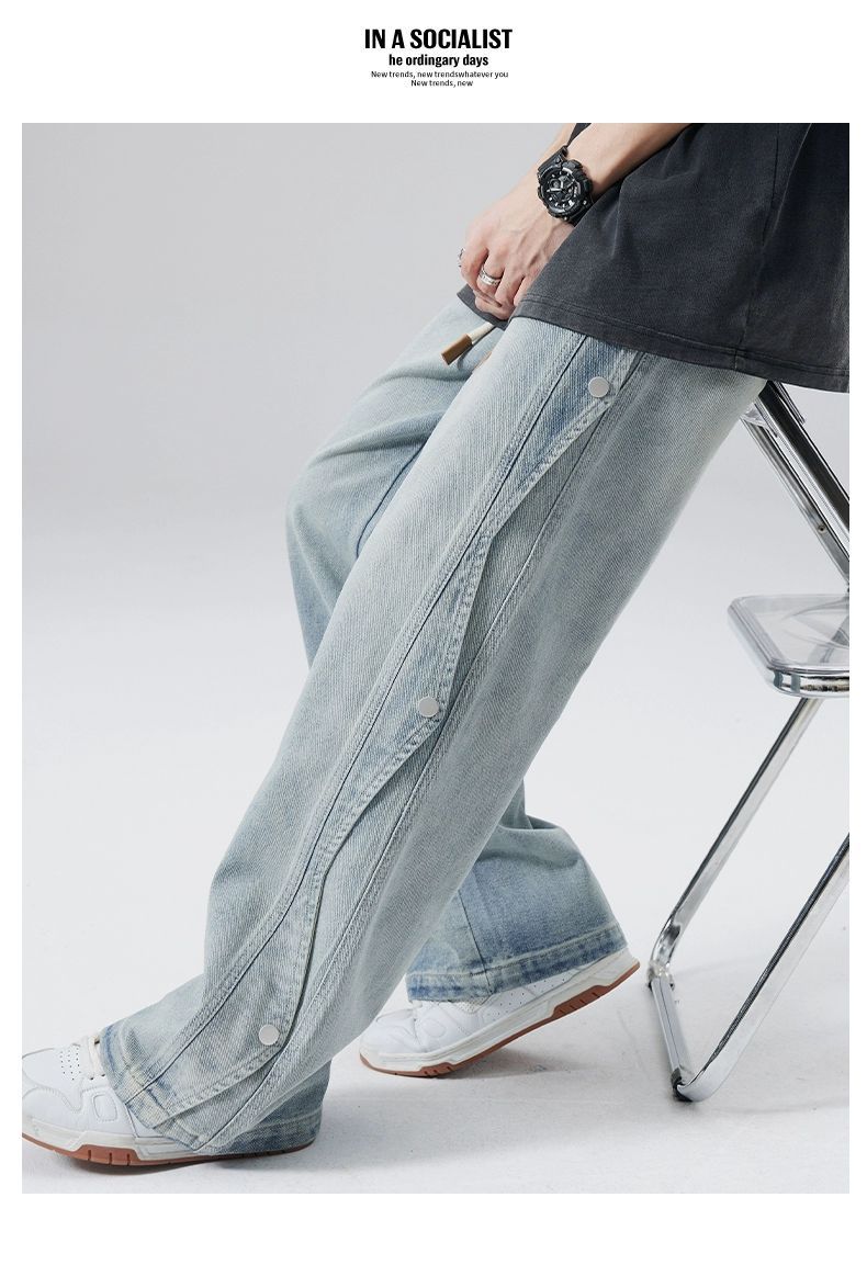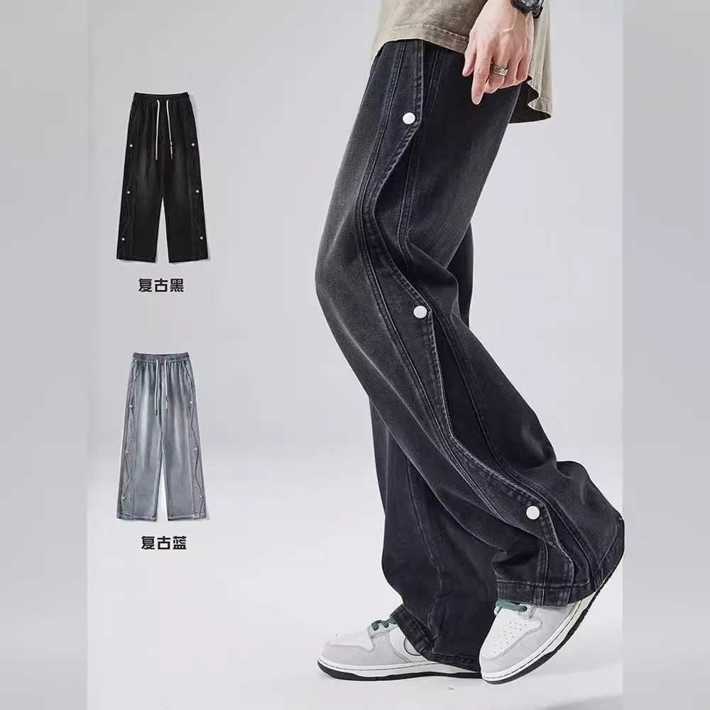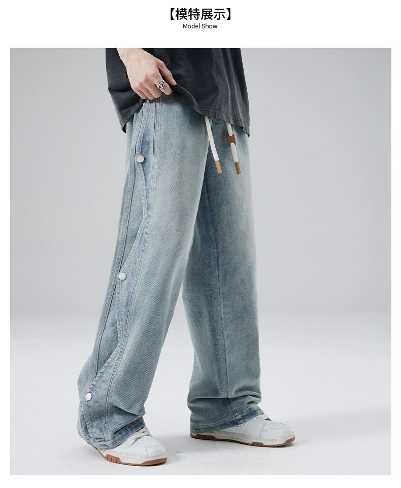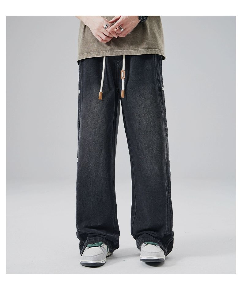남성용 청바지 2025 새로운 미국 트렌디 디자인 다용도 캐주얼 스트레이트 팬츠 여름 와이드 레그 롱 팬츠스토어 가기