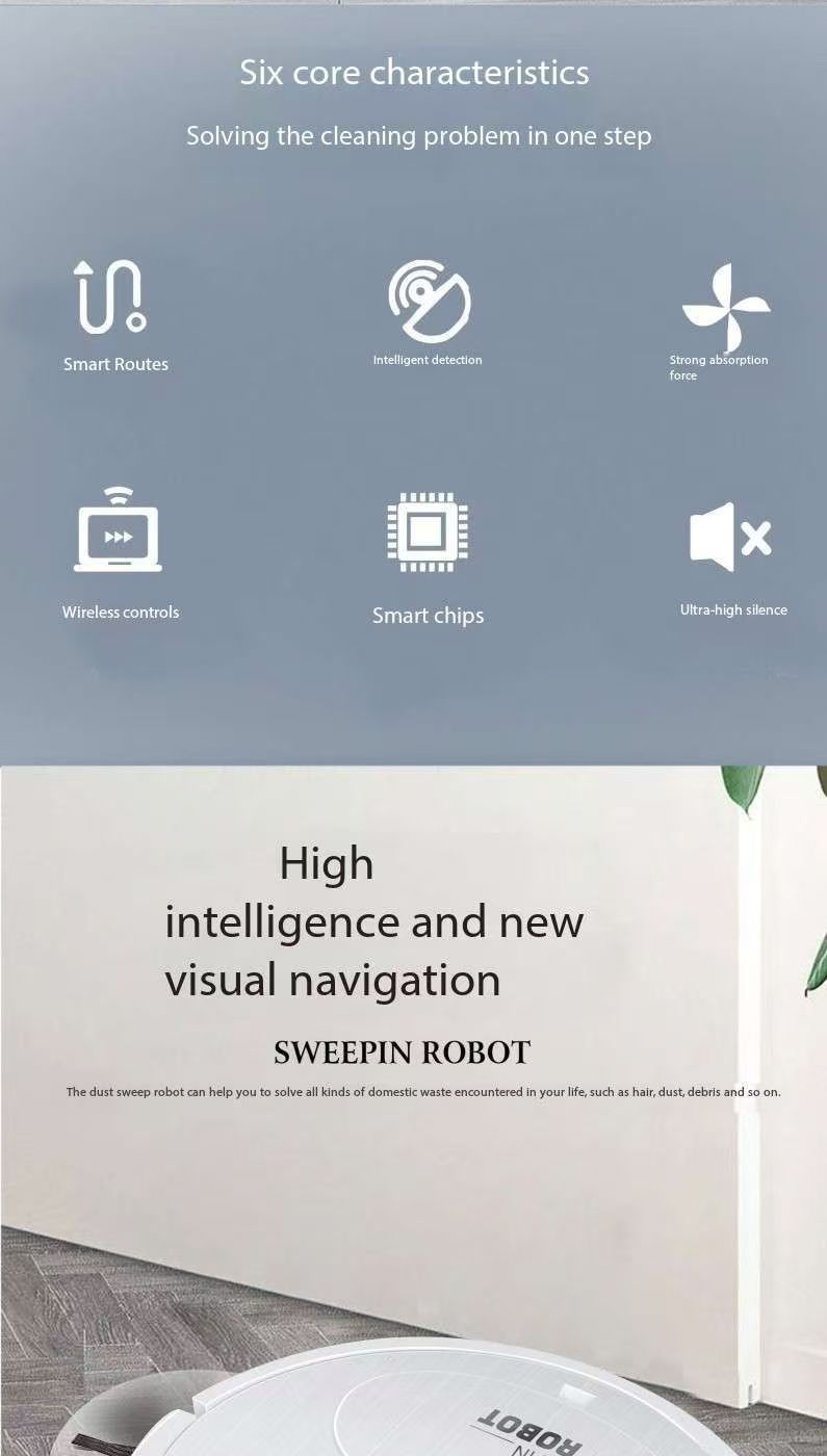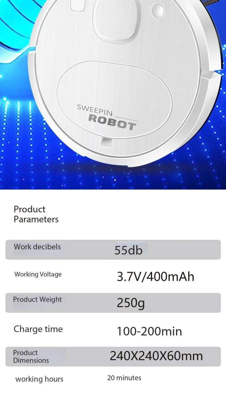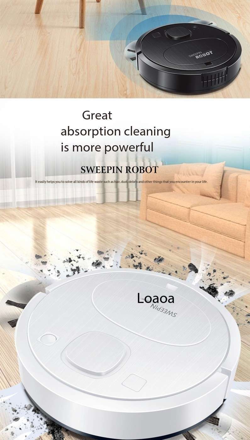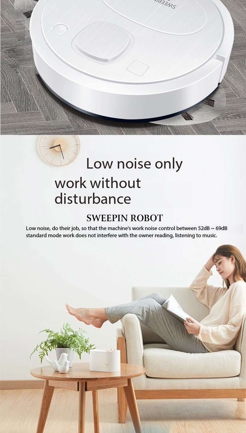 스마트 3-in-1 로봇 청소기, 진공청소기, 물걸레 기능 탑재, 저소음 가정용, 게으른 사람들을 위한 청소기