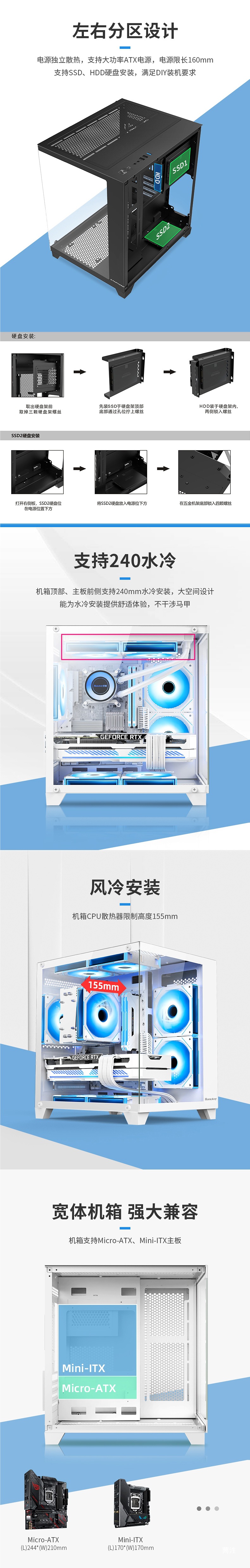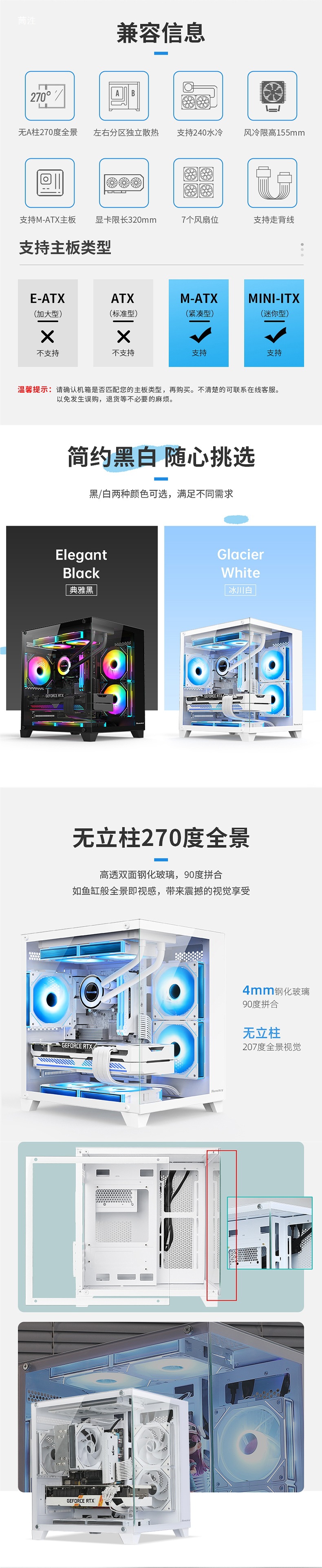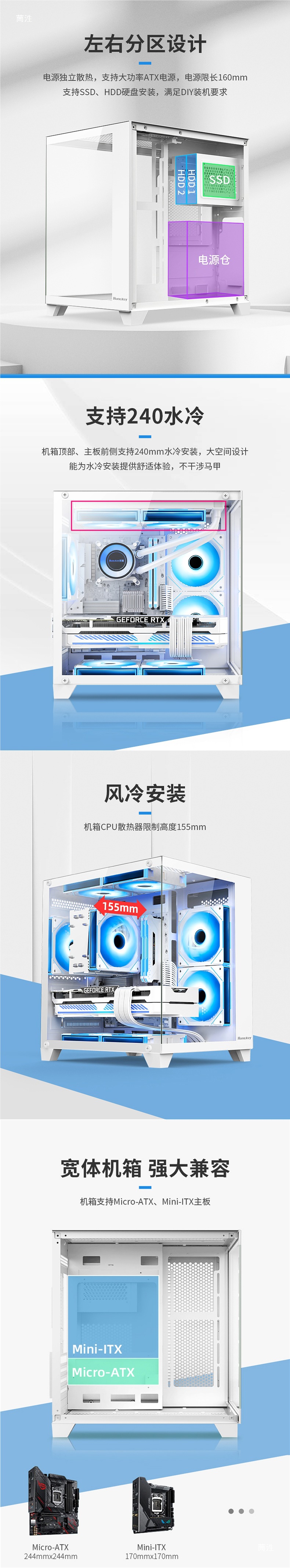 20 첫사랑 바다 전망 룸 컴퓨터 케이스 데스크탑 호스트 m-atx 흰색 측면 투명 게임 케이스 920스토어 가기