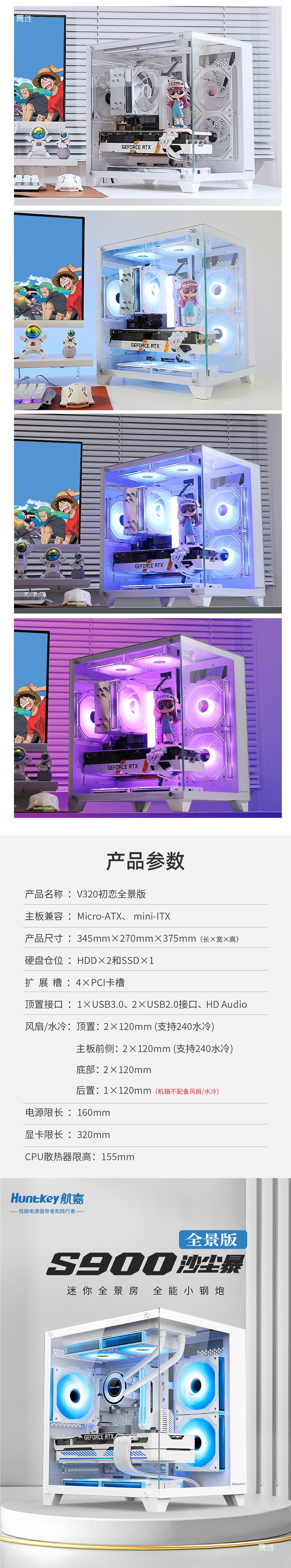 20 첫사랑 바다 전망 룸 컴퓨터 케이스 데스크탑 호스트 m-atx 흰색 측면 투명 게임 케이스 920