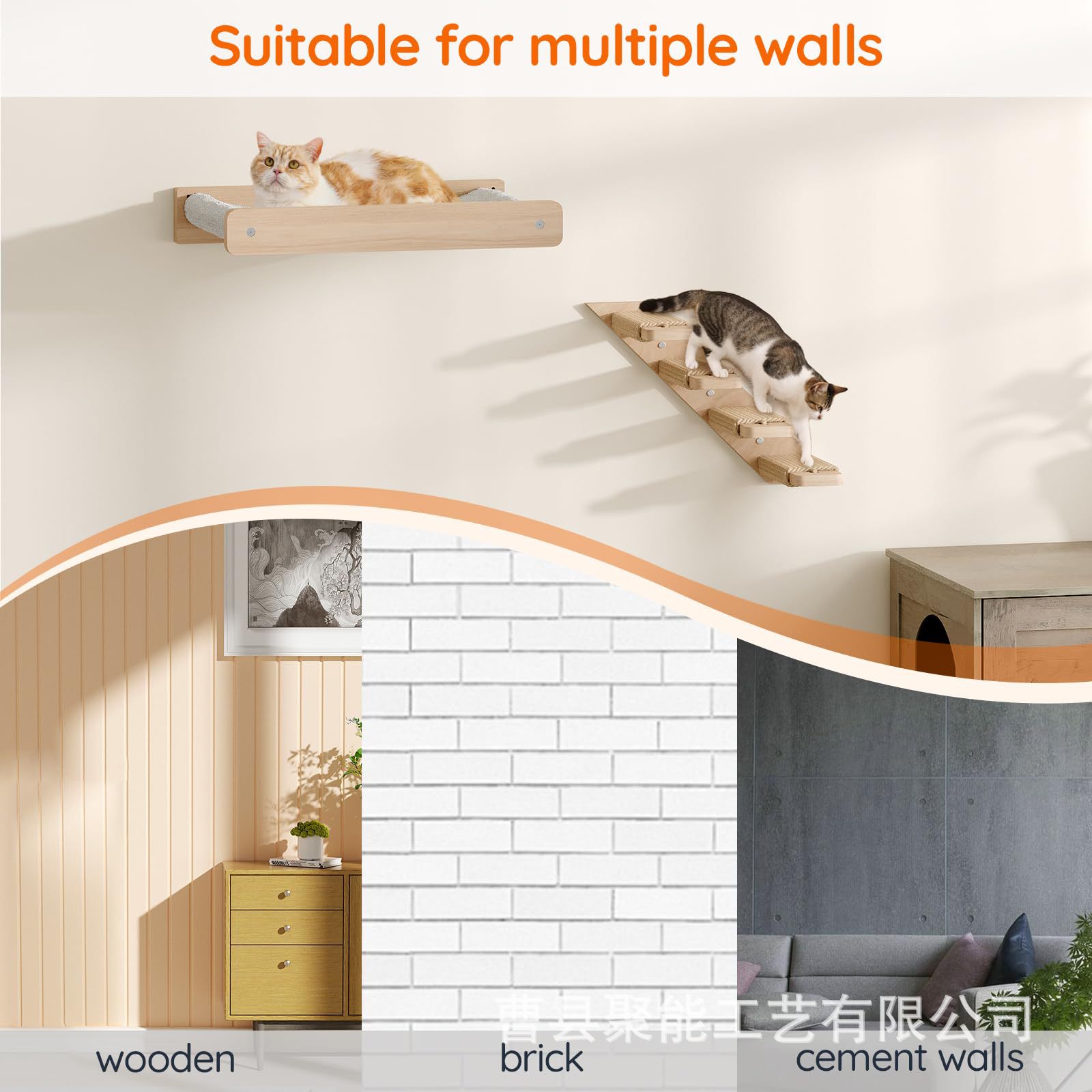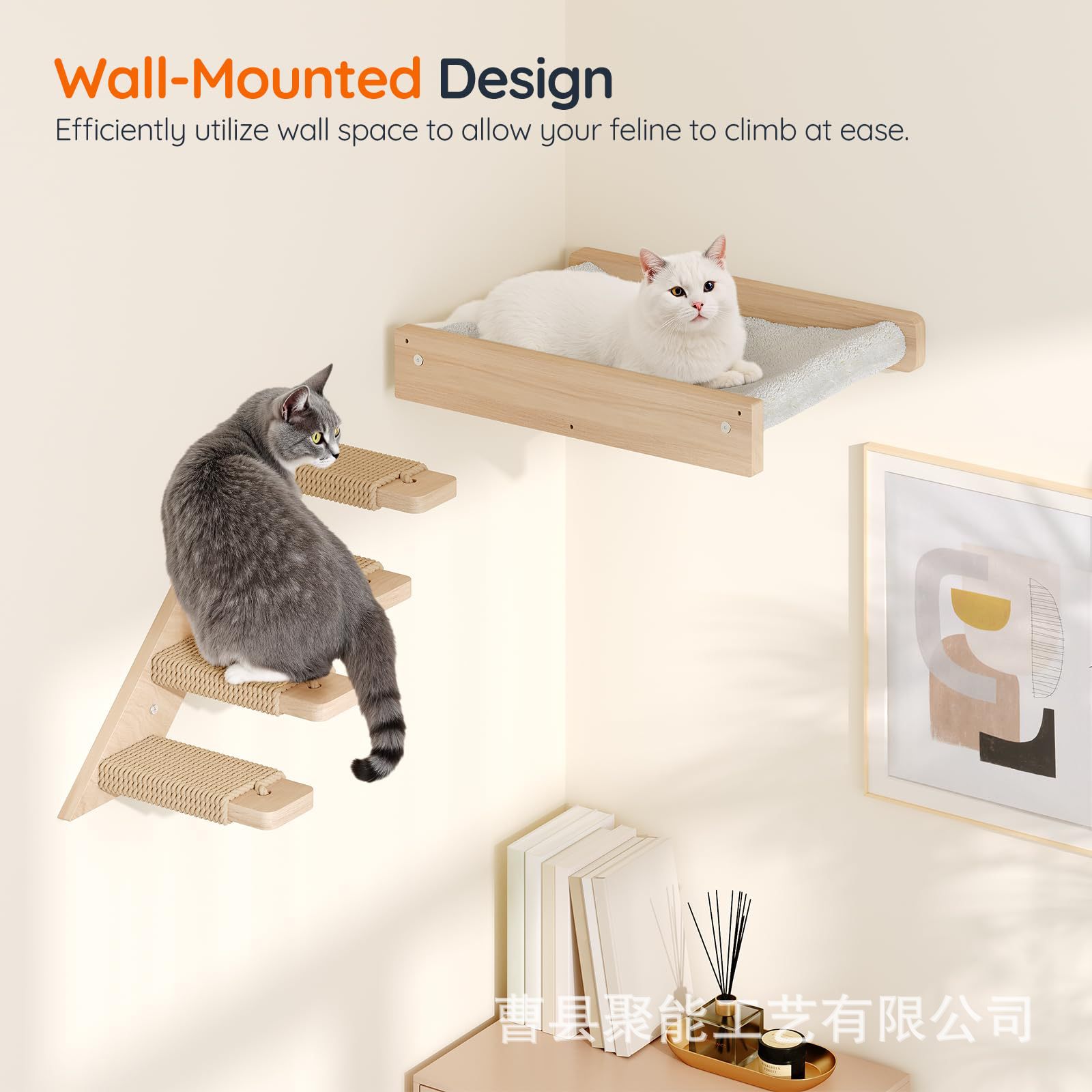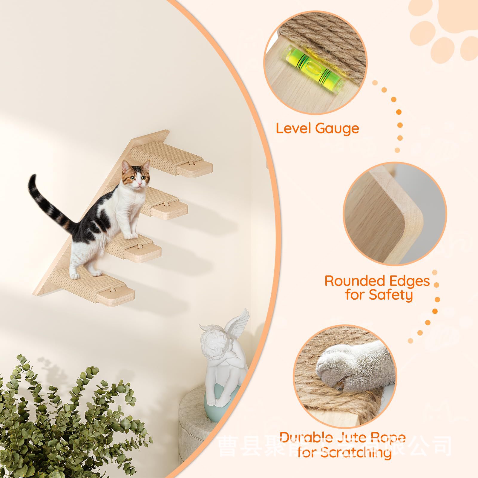 나무 애완 동물 고양이 클라이밍 프레임 벽걸이 형 고양이 클라이밍 다층 클라이밍 고양이 계단 사다리 사이잘 로프 고양이 스크래치 보드