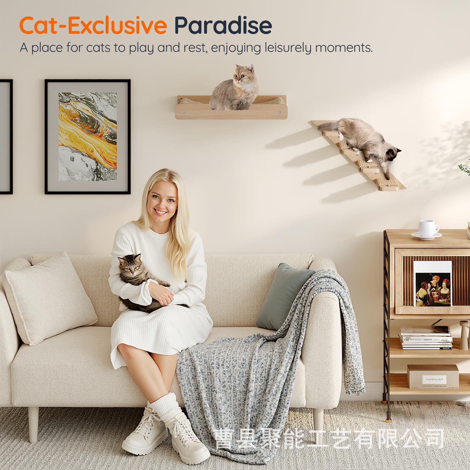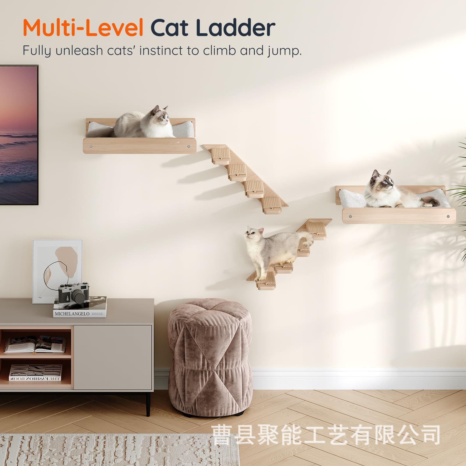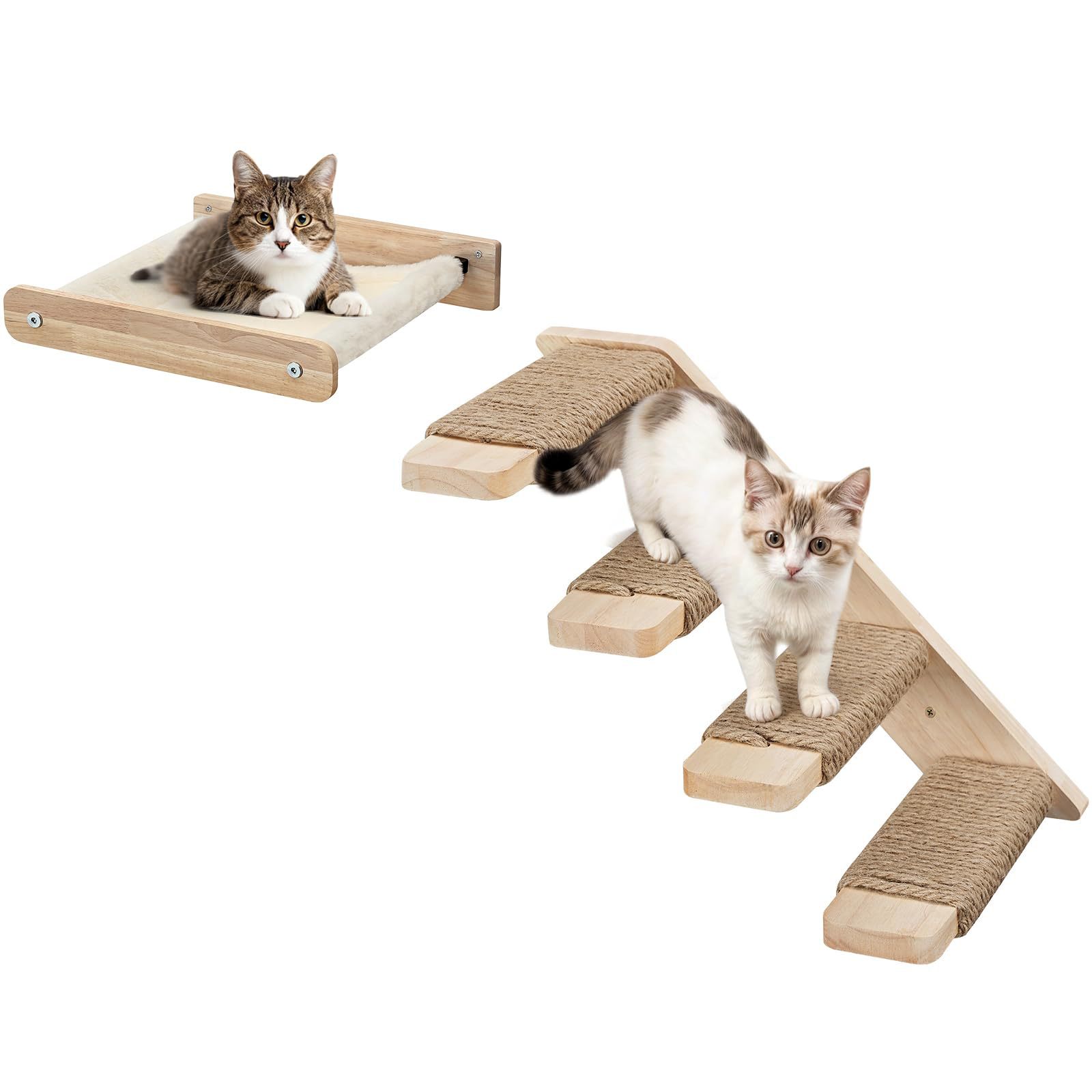 나무 애완 동물 고양이 클라이밍 프레임 벽걸이 형 고양이 클라이밍 다층 클라이밍 고양이 계단 사다리 사이잘 로프 고양이 스크래치 보드