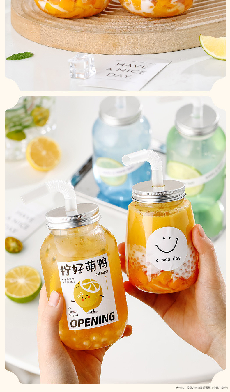 컵 밀짚 버드나무 밀크티 컵 병 뚜껑이 있는 일회용 투명 상업용 컵 뚱뚱한 인터넷 연예인 음료 애완 동물