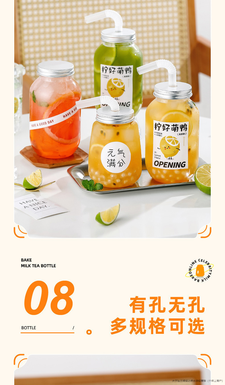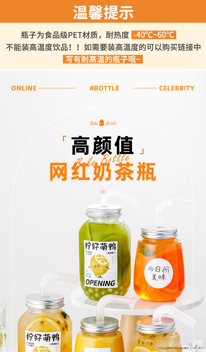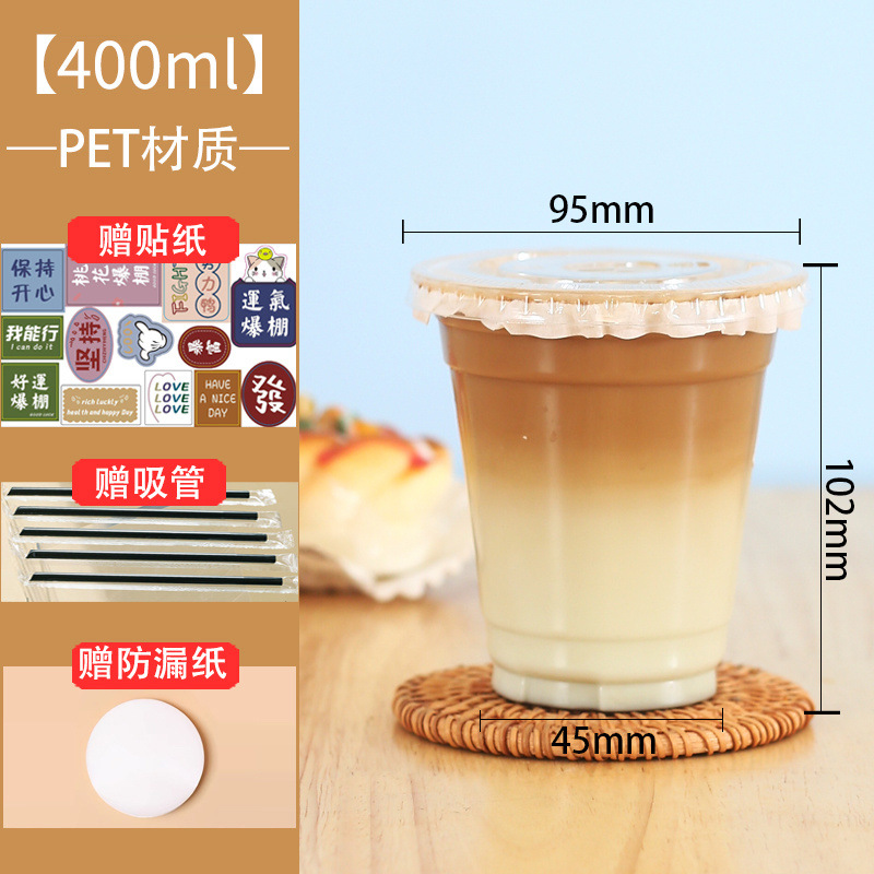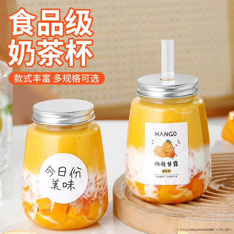 컵 밀짚 버드나무 밀크티 컵 병 뚜껑이 있는 일회용 투명 상업용 컵 뚱뚱한 인터넷 연예인 음료 애완 동물스토어 가기