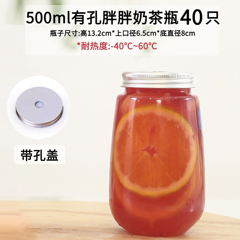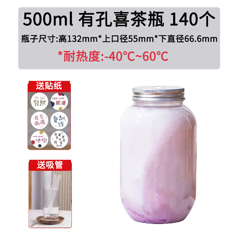 • 구멍이 있는 500ml 둥근 지방병, 캡 48개 + 스티커 + 두꺼운 튜브