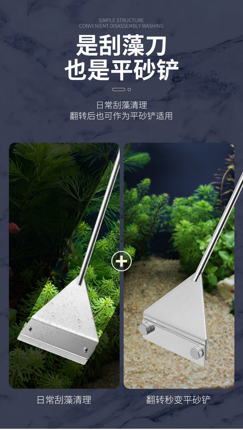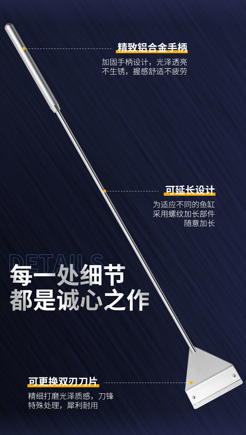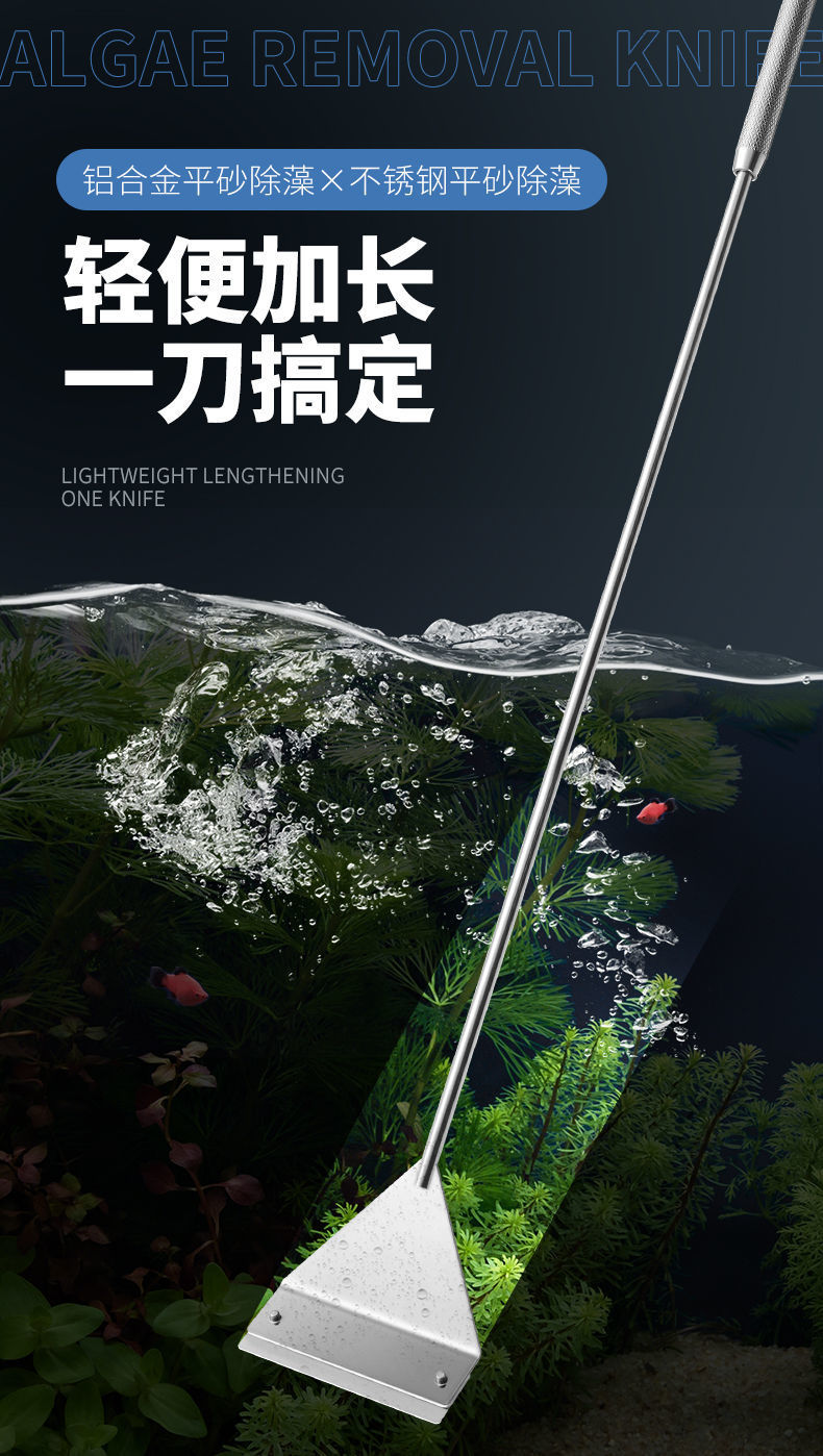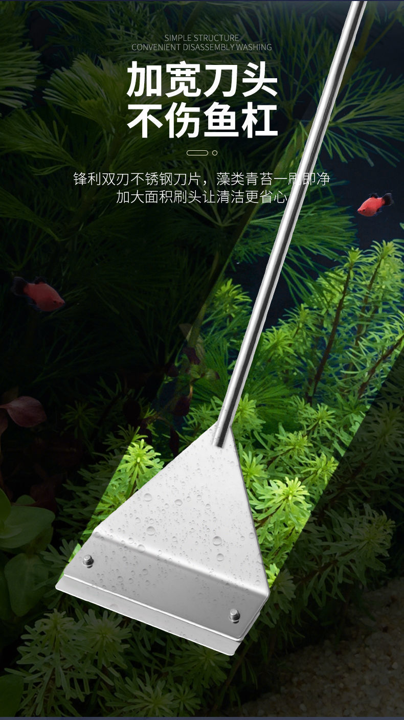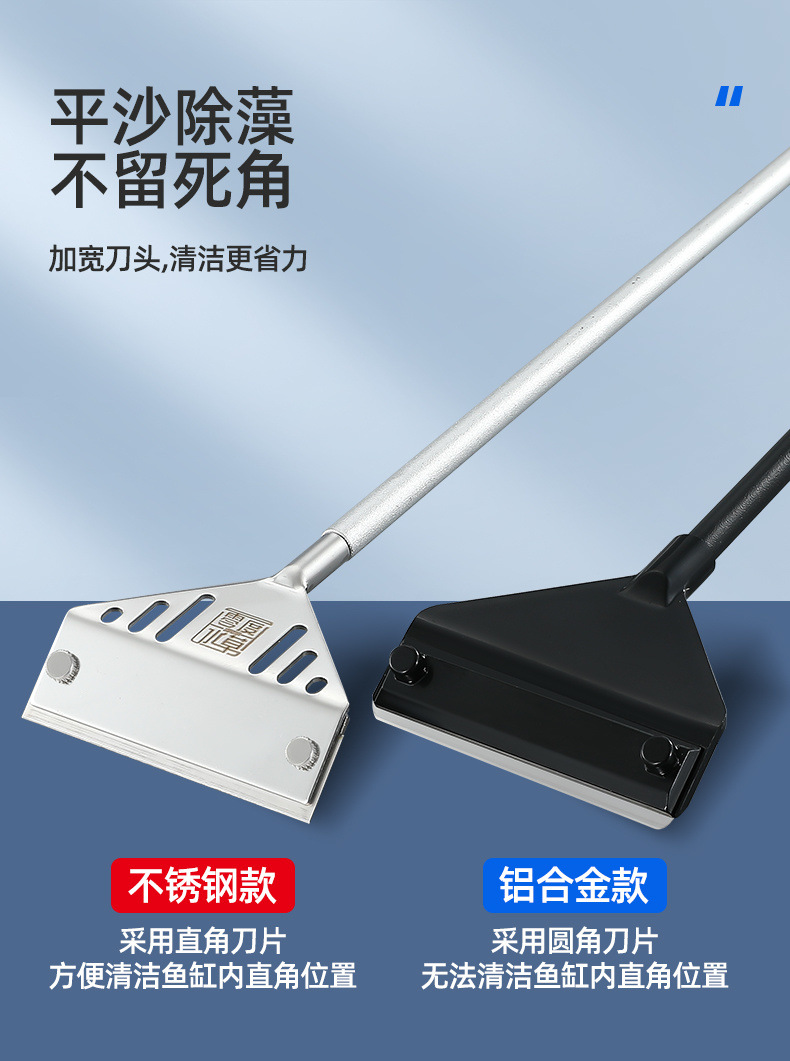 물고기 탱크 청소 도구, 대형 긴 손잡이 알루미늄 합금 조류 스크레이퍼, 작은 죽지 않는 조류 제거 스크레이퍼스토어 가기