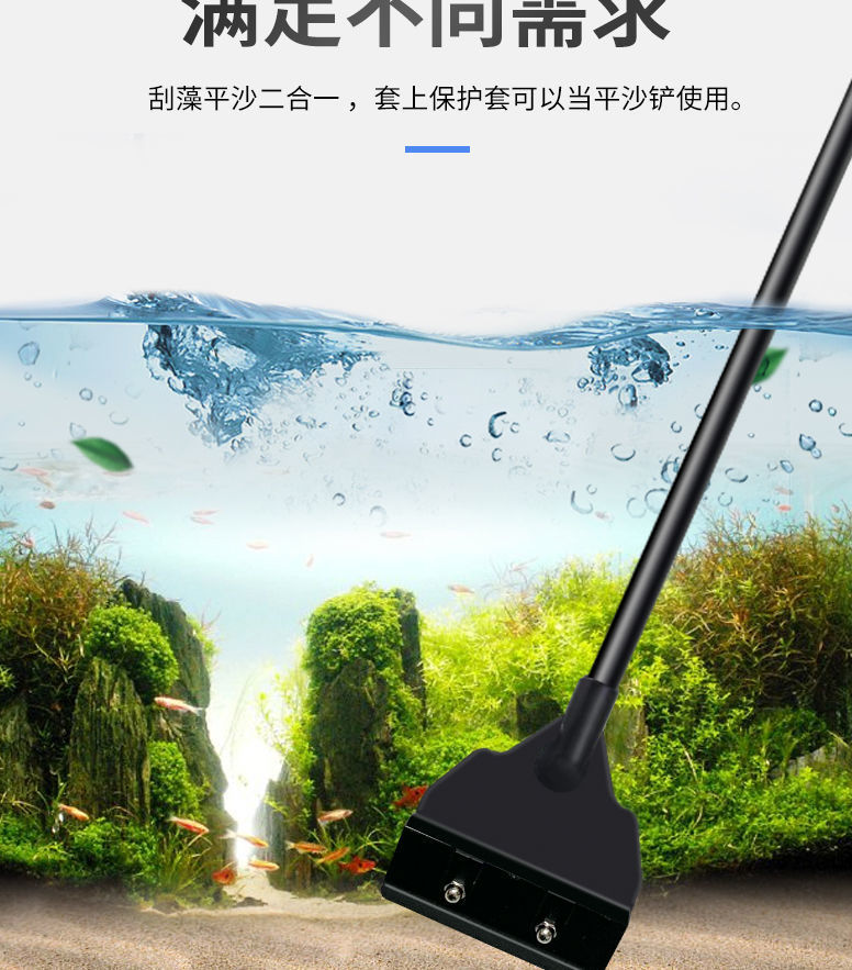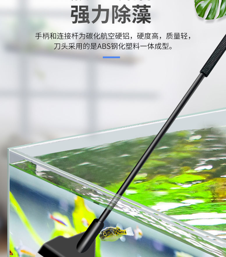 물고기 탱크 청소 도구, 대형 긴 손잡이 알루미늄 합금 조류 스크레이퍼, 작은 죽지 않는 조류 제거 스크레이퍼