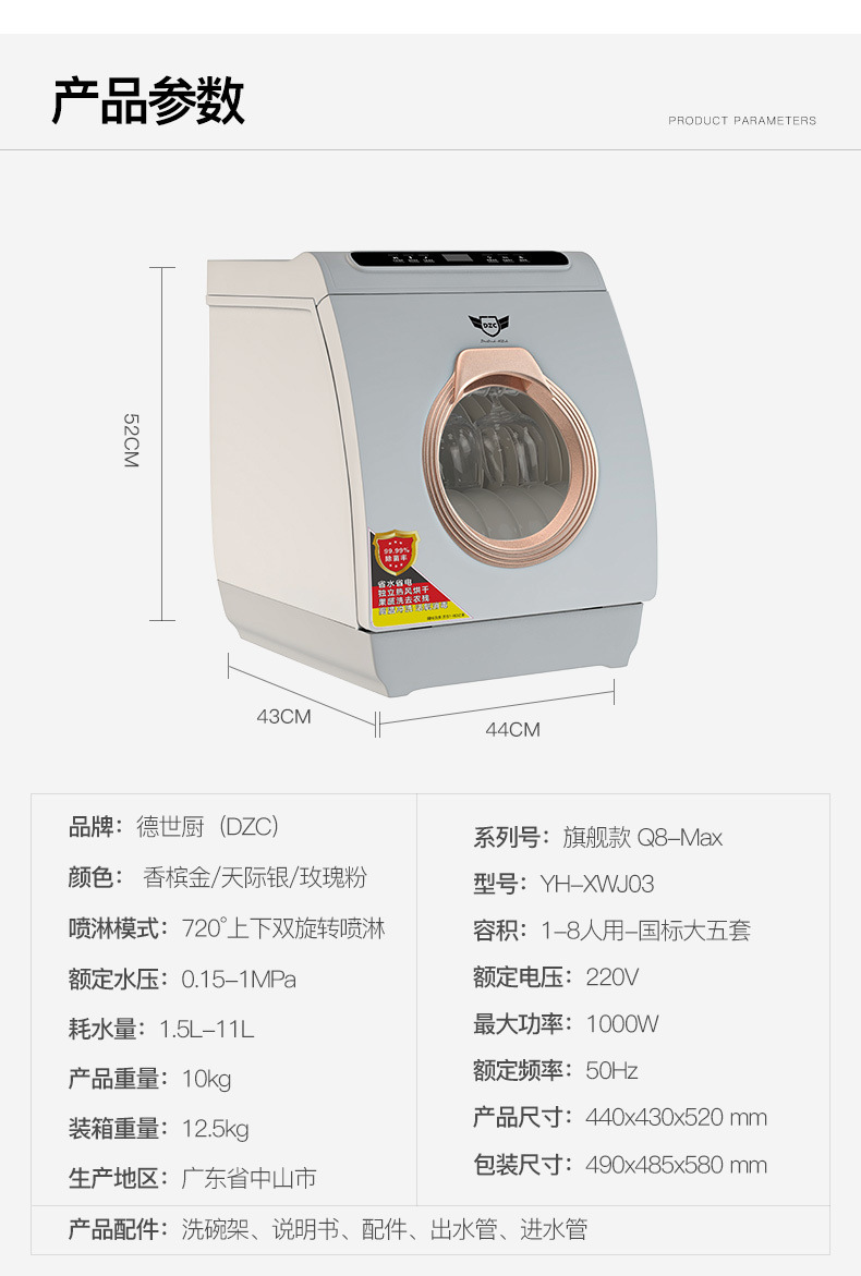 Deshikuchu 2025 식기 세척기 Q8Max 완전 자동 홈 스마트 데스크탑 임베디드 8인 세트 대용량
